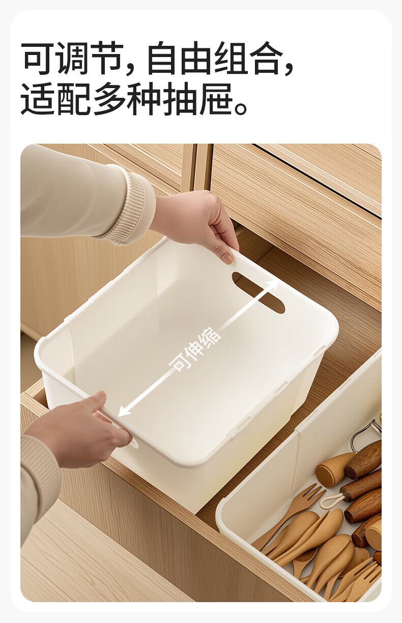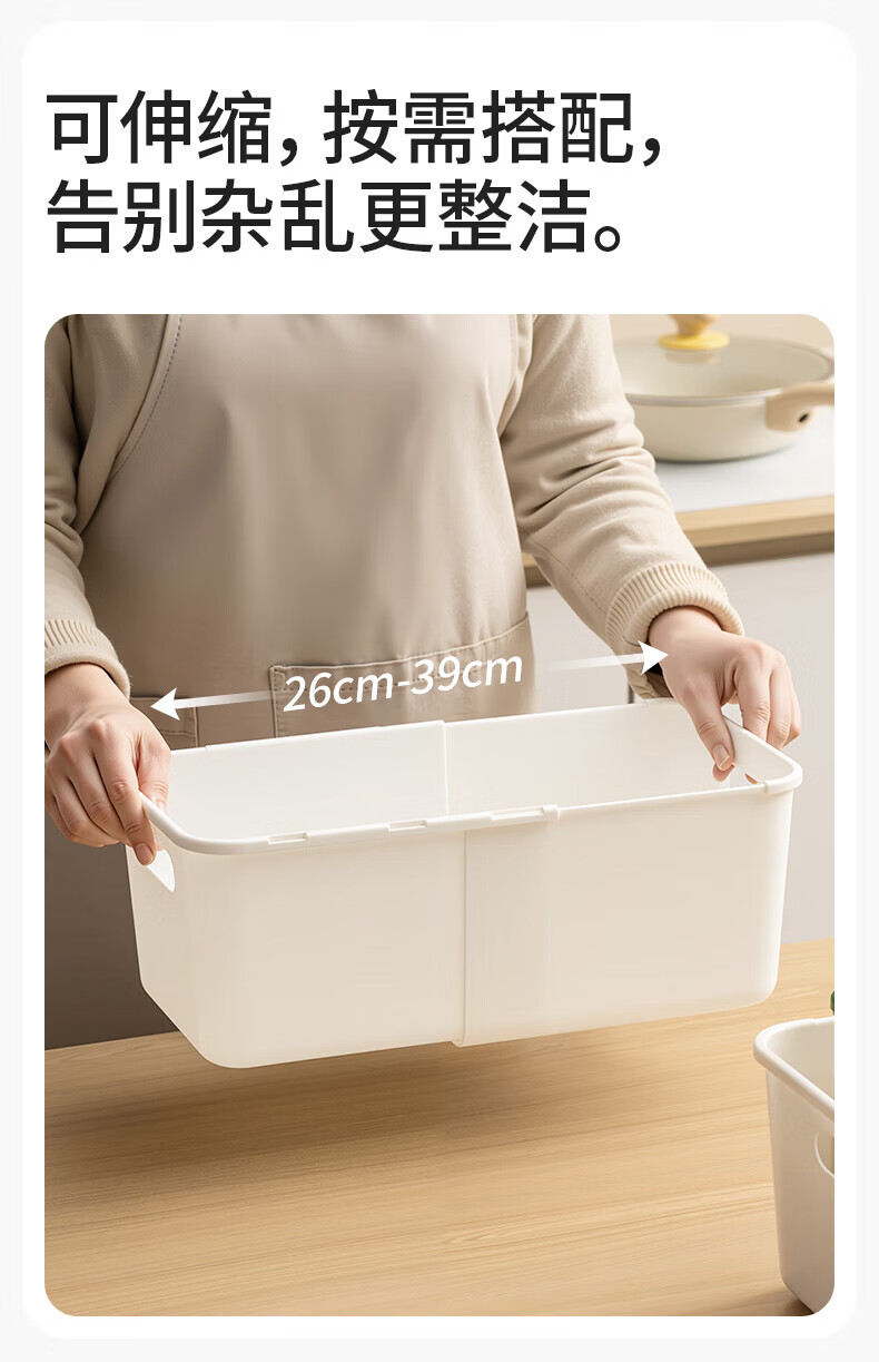 禧天龙可伸缩橱柜收纳盒多功能整理盒学生宿舍零食储物收纳箱大容量 大号 1个装 橱柜伸缩收纳盒
