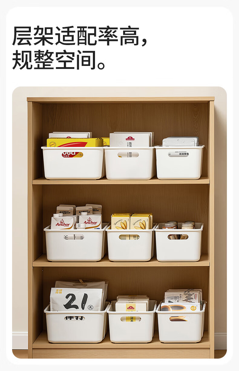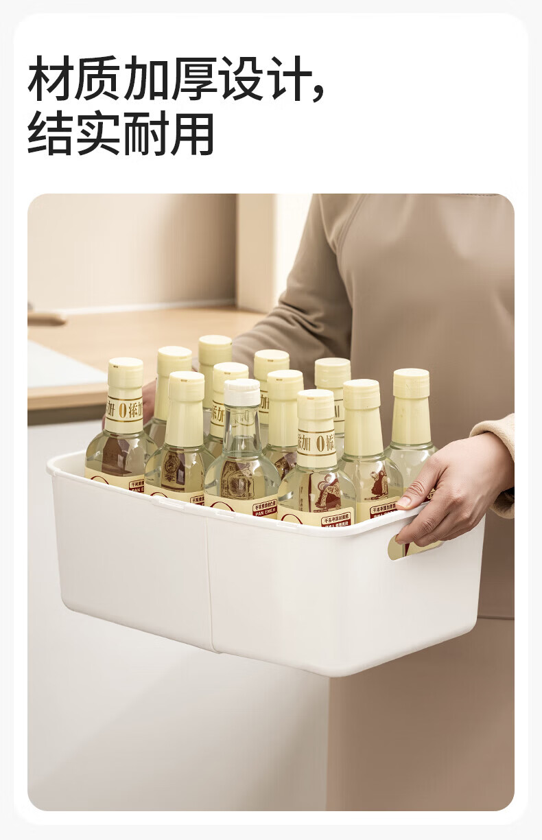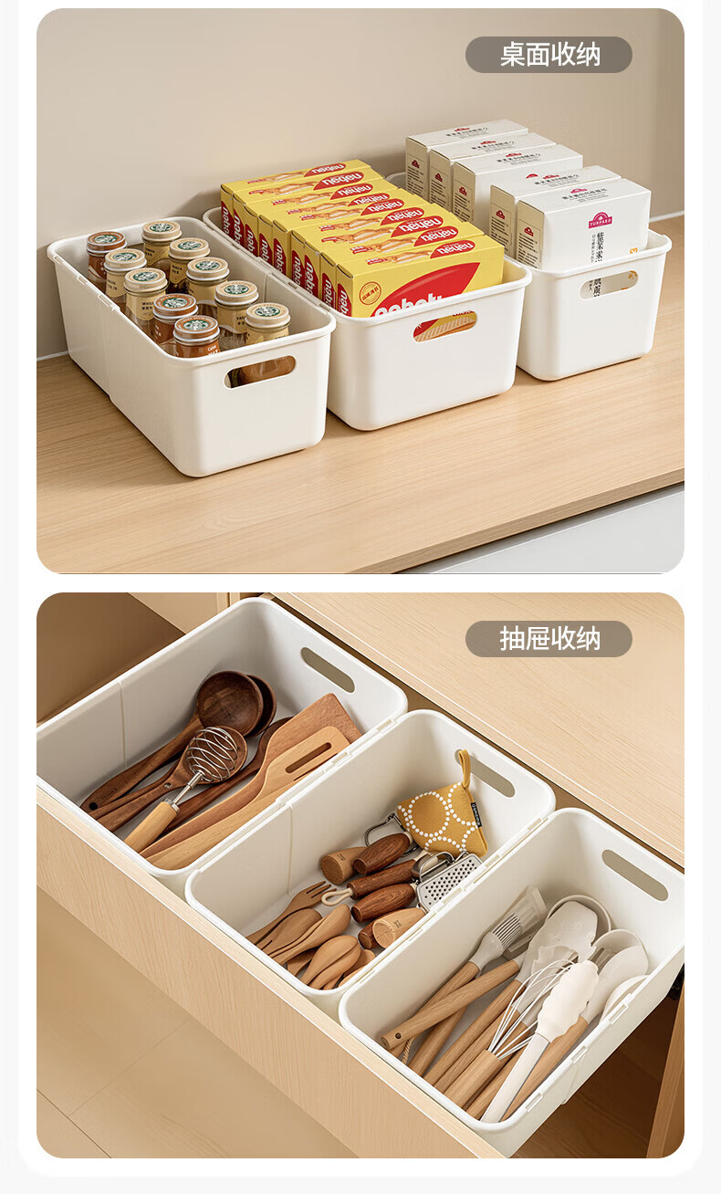 吱凡日本深柜厨房收纳盒长方形零食橱柜杂物整理盒桌面直角储物收纳筐 【中号】2个装【特厚】