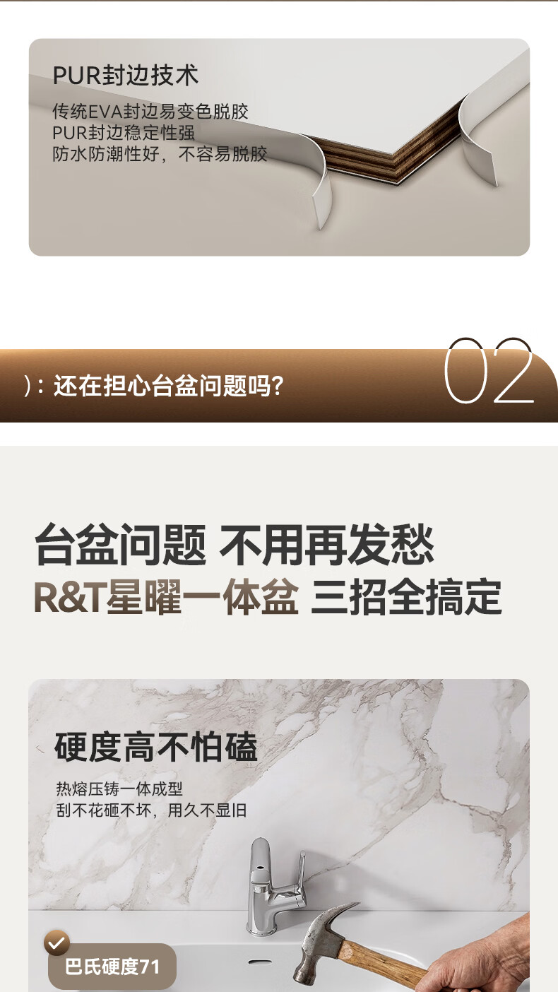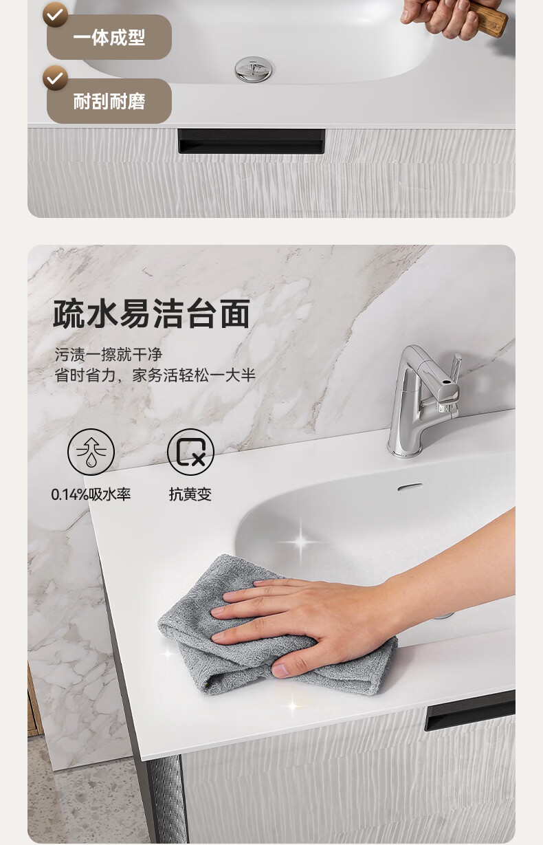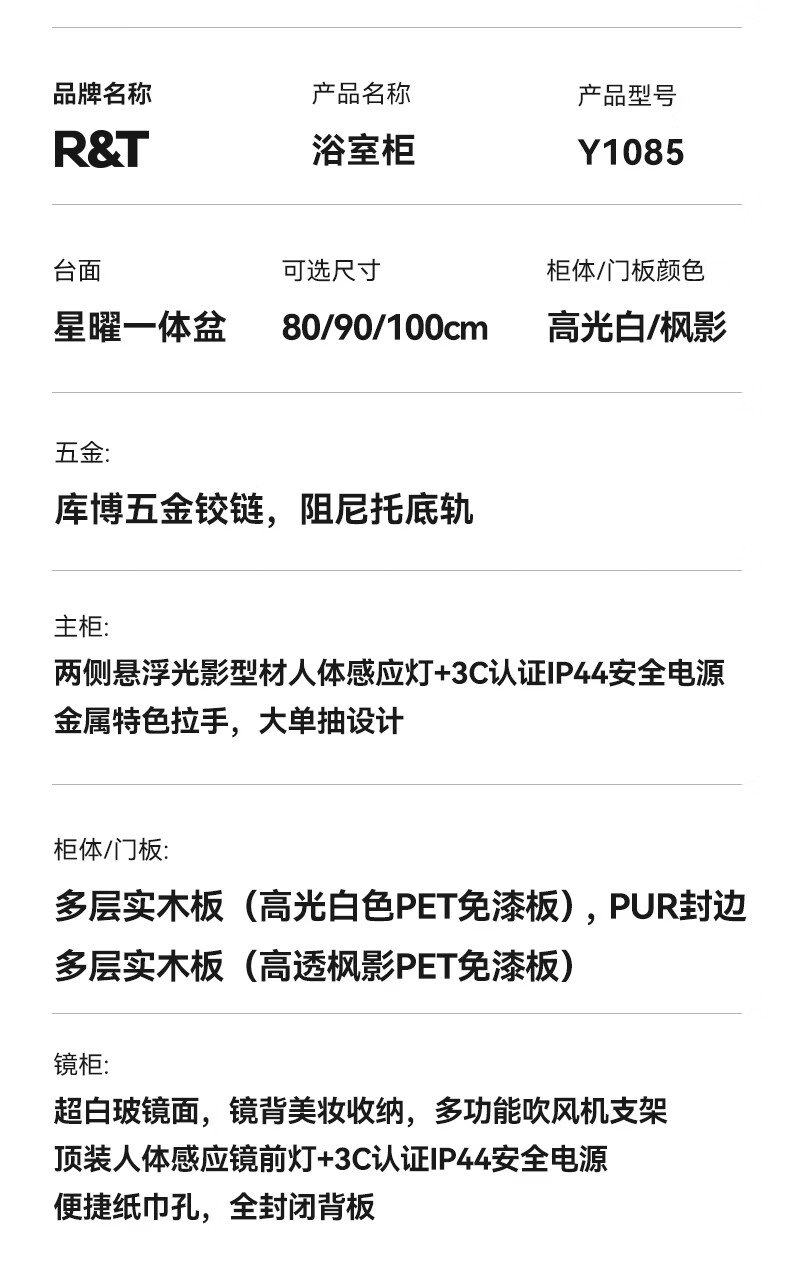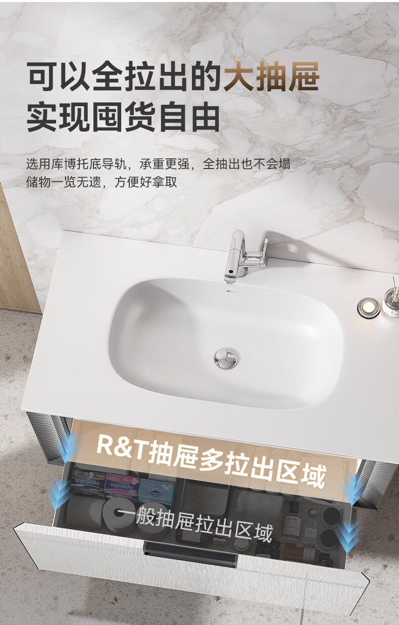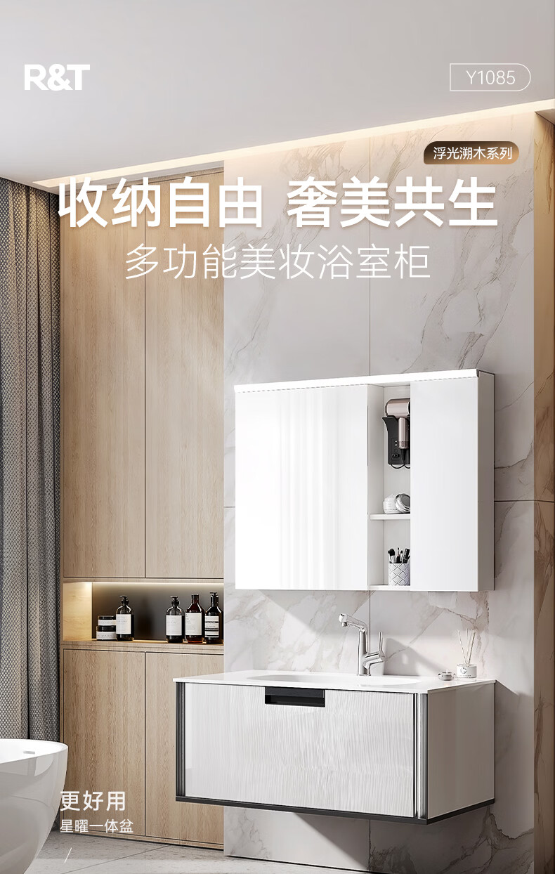 瑞尔特(R&T)浴室柜组合星曜一体盆ENF级环保卫生间洗脸洗漱台盆柜免费送装 ENF级环保多层实木-Y1085 80cm