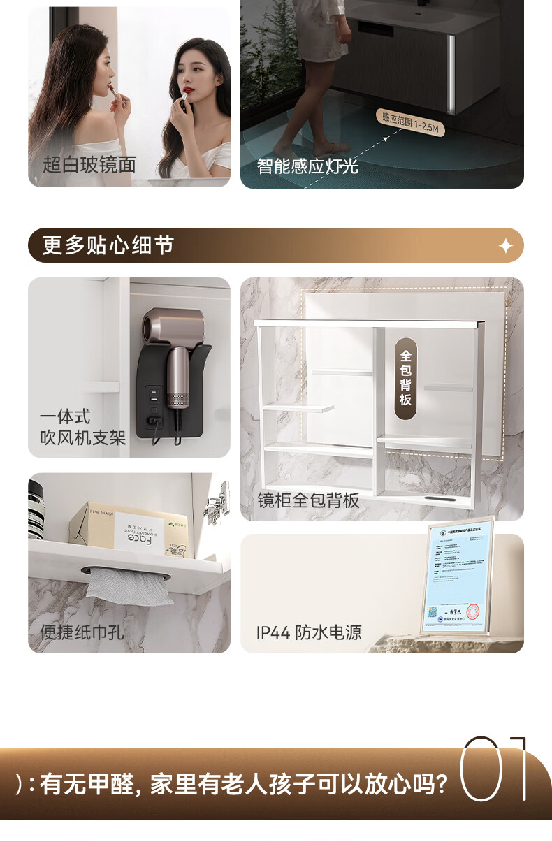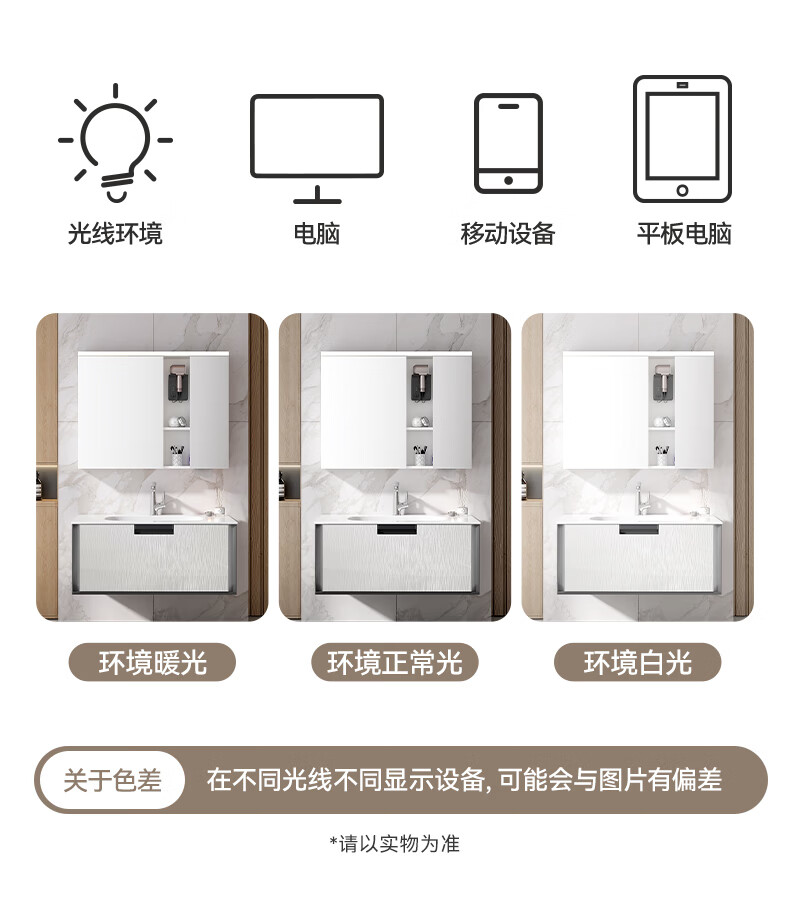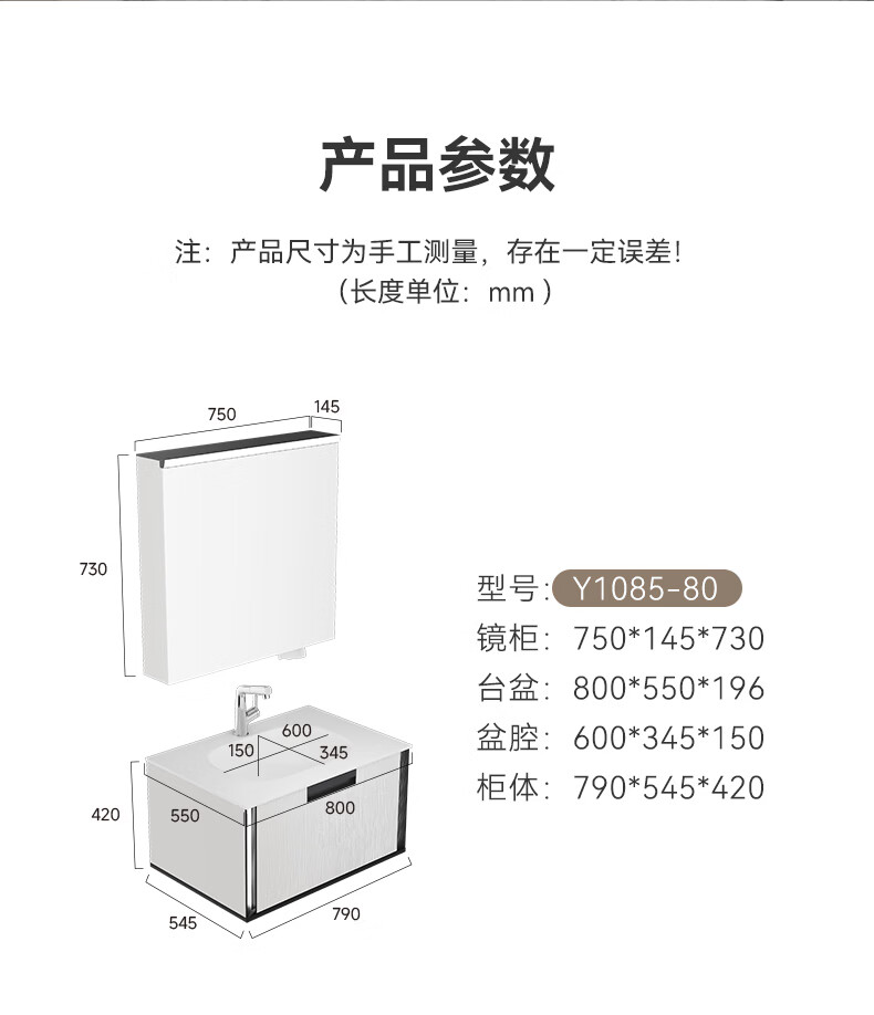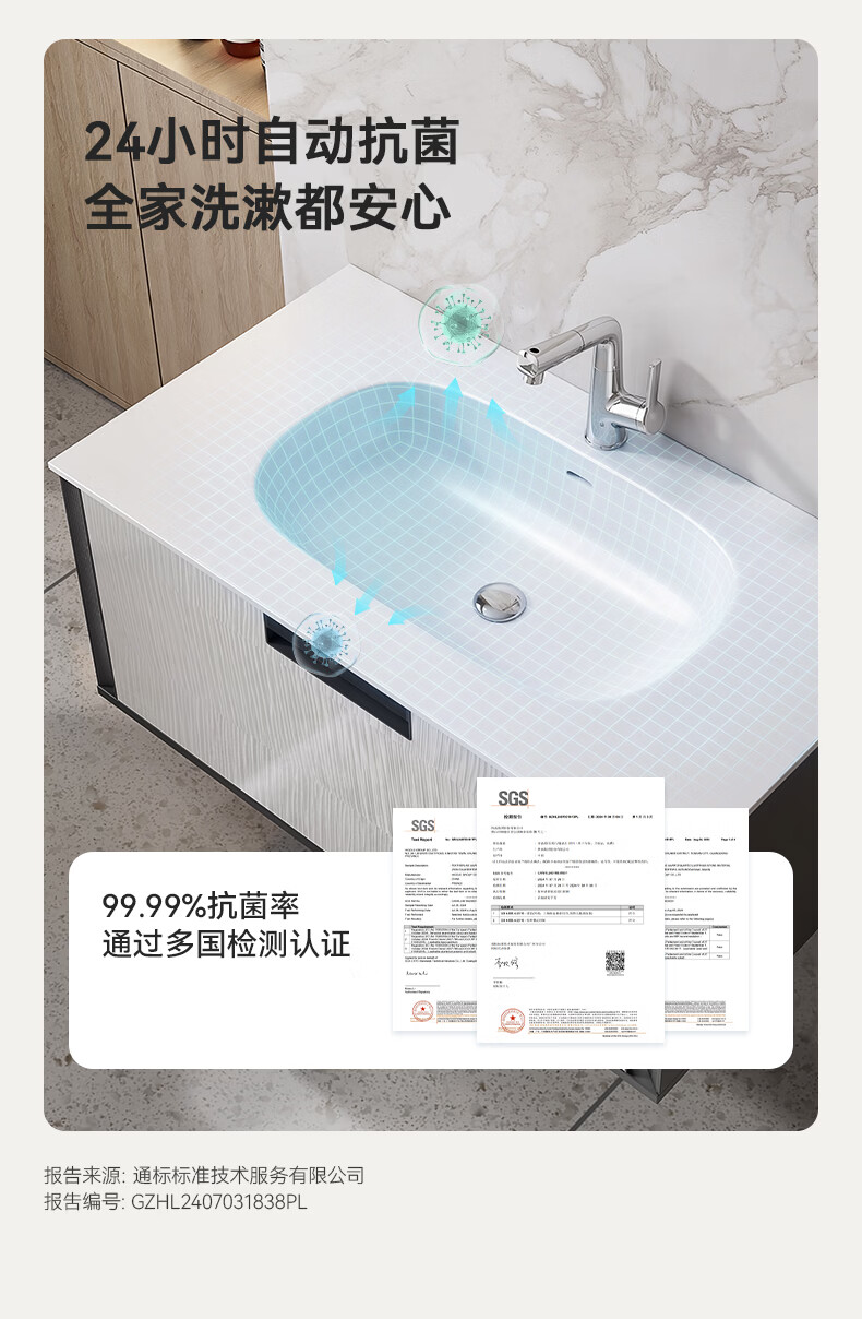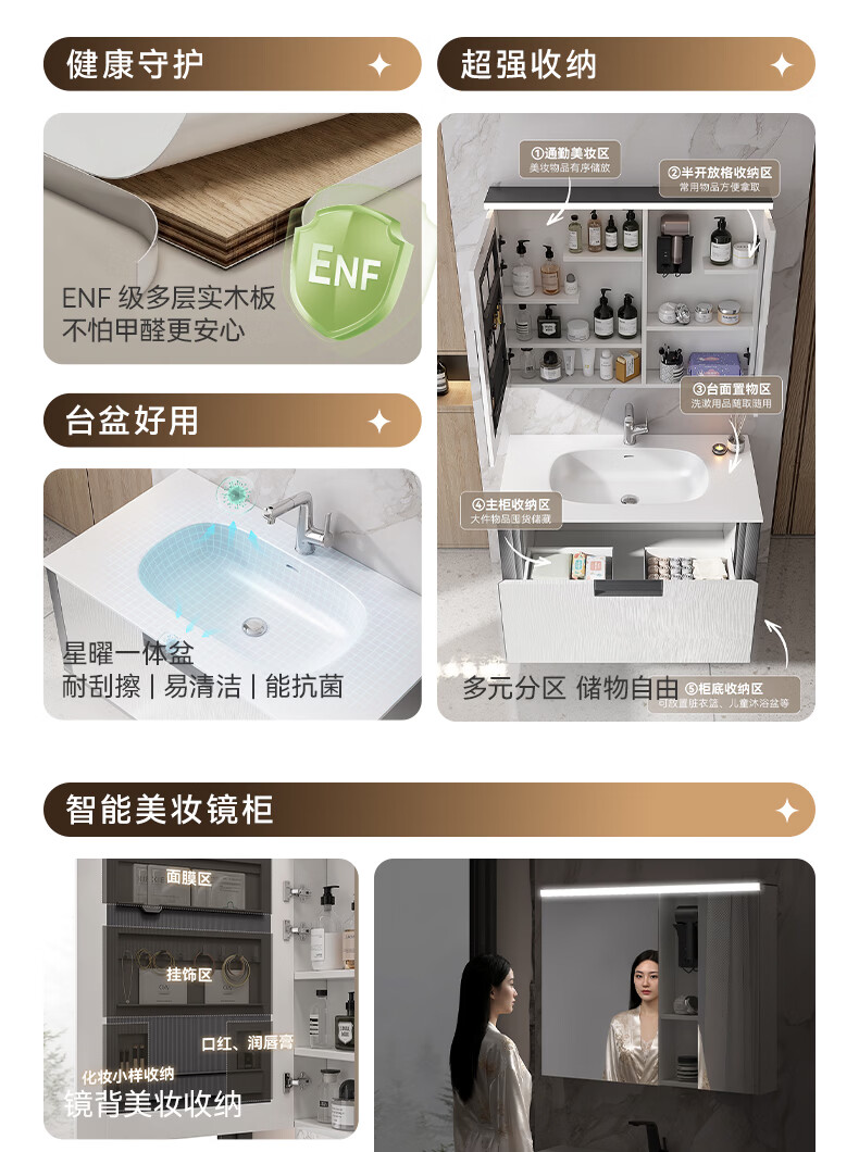 瑞尔特(R&T)浴室柜组合星曜一体盆ENF级环保卫生间洗脸洗漱台盆柜免费送装 ENF级环保多层实木-Y1085 80cm