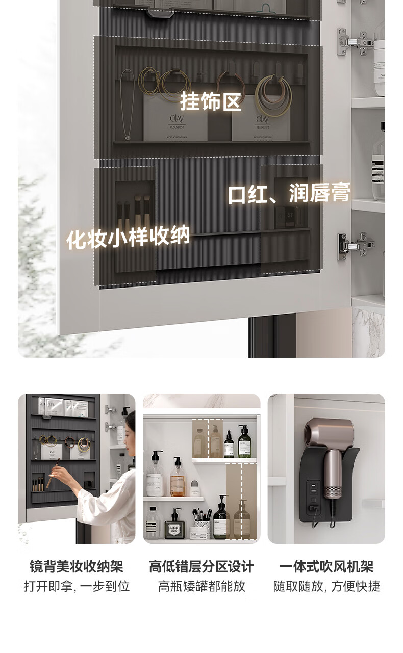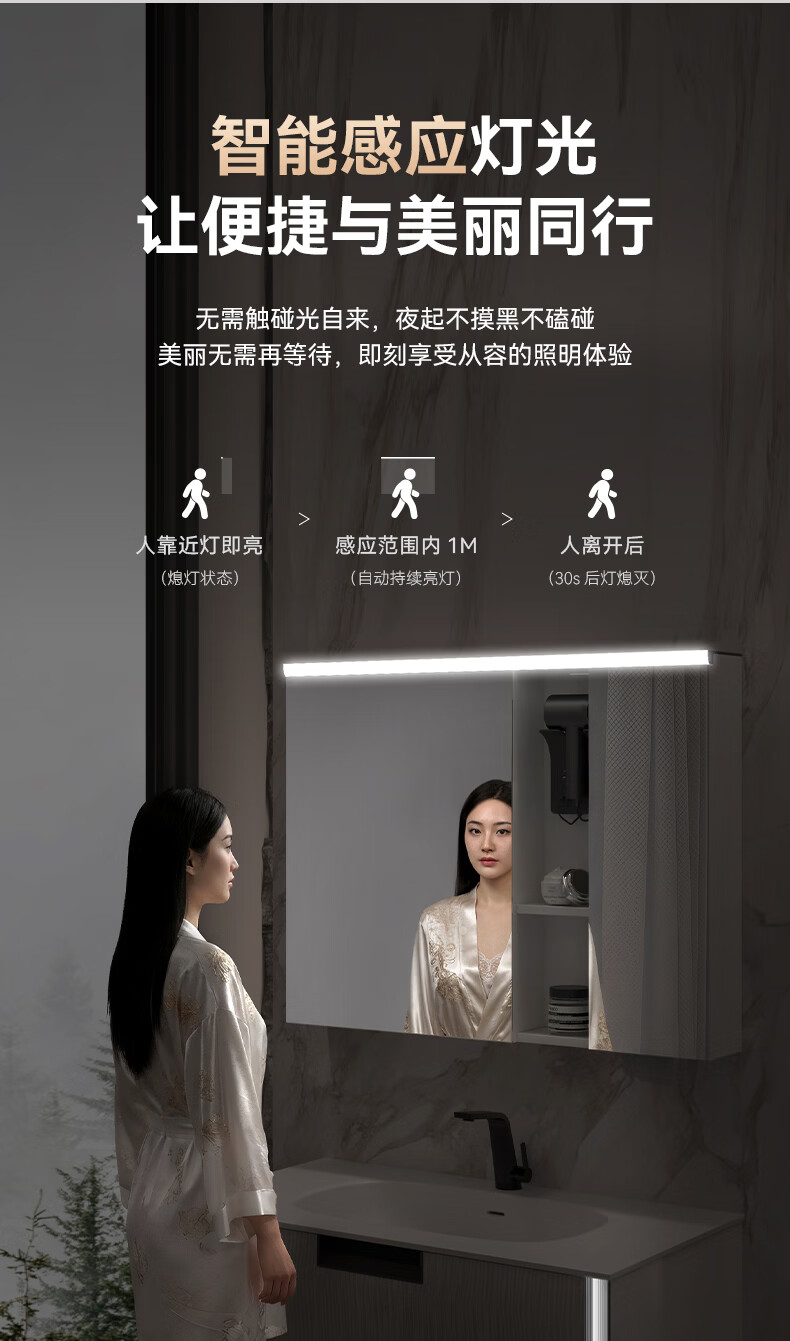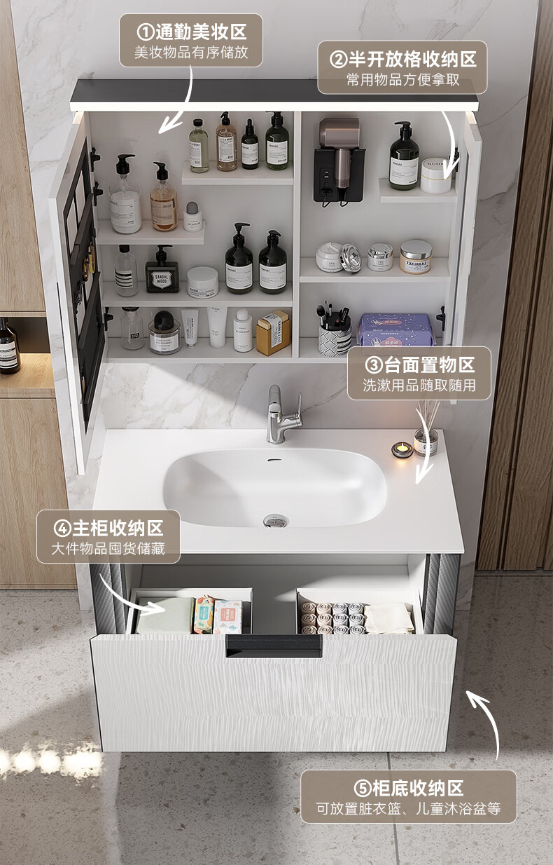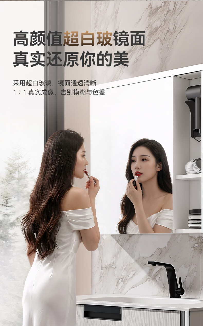 惠达(HUIDA)浴室柜 陶瓷一体盆抗菌洗脸盆柜组合188 奶油象牙白55cm【智能镜柜】