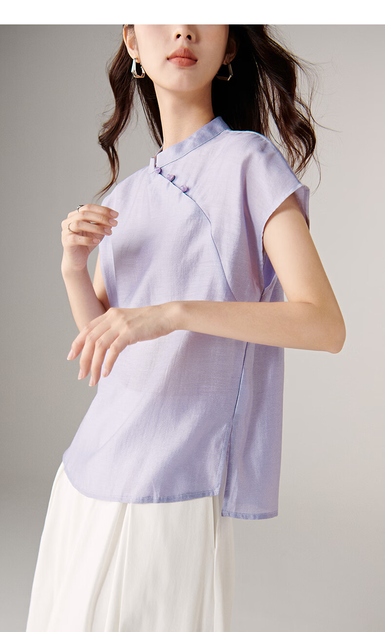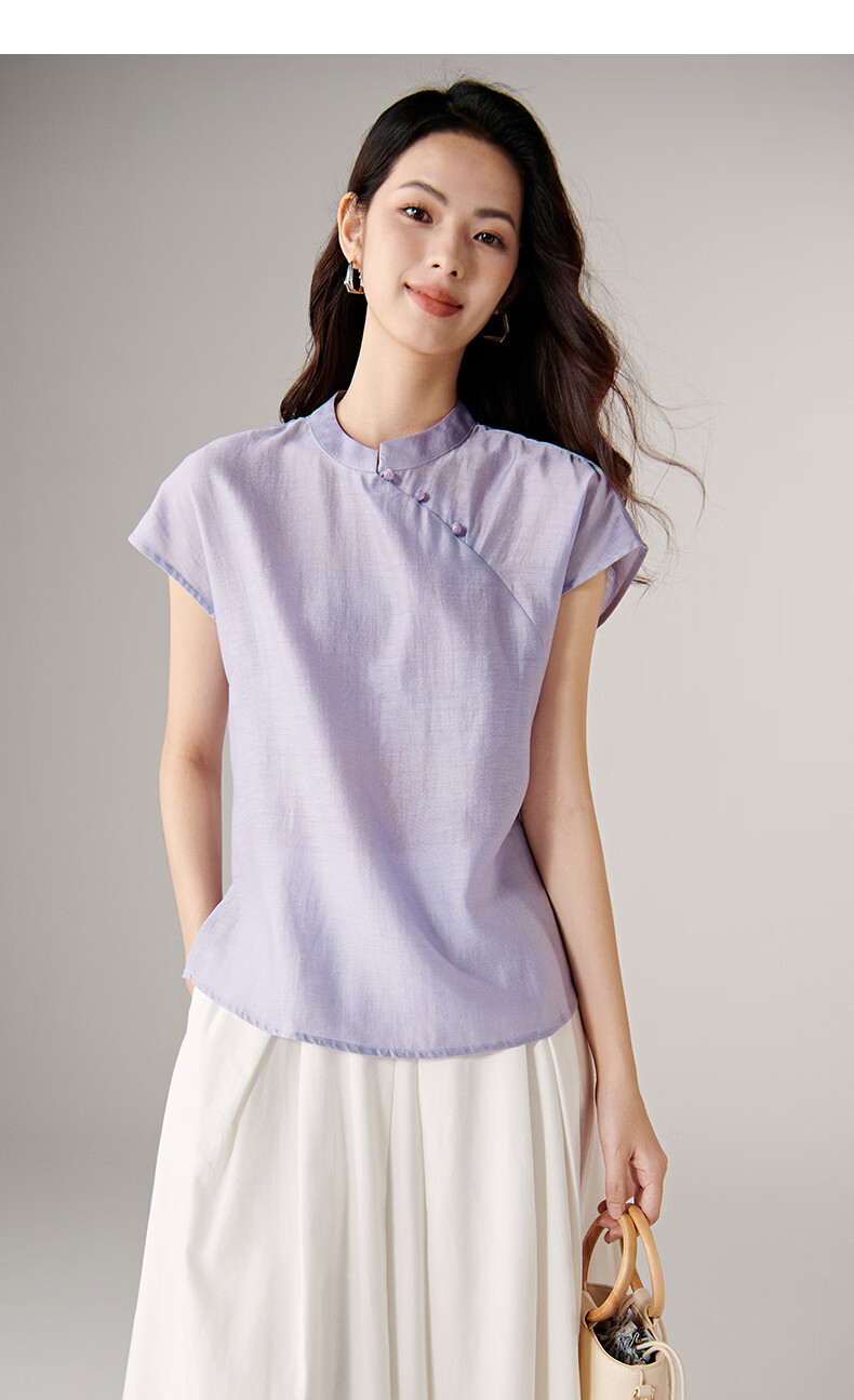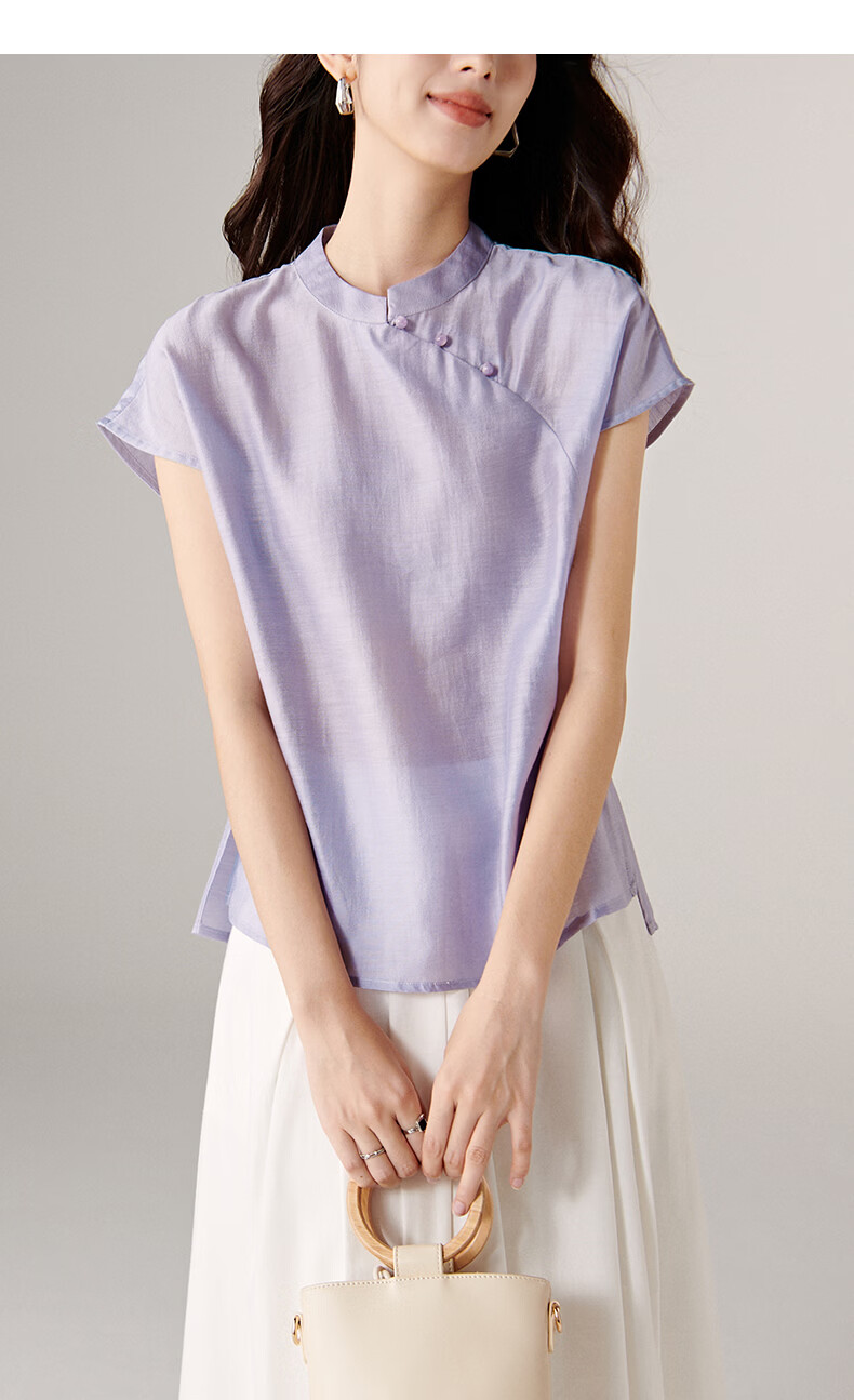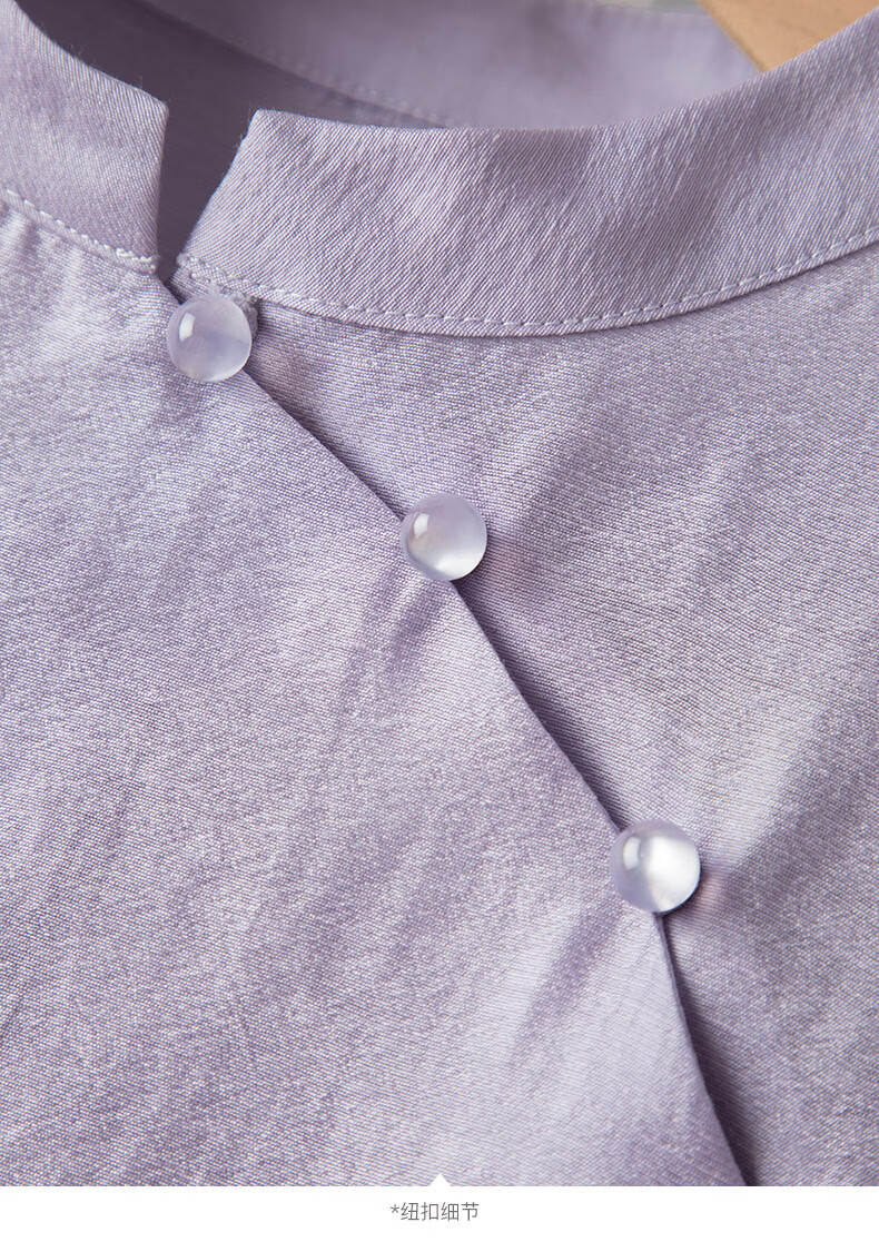 晚白【新品】2026年春款新中式立领醋酸上衣亲肤莱赛尔小众轻薄衬衫女 浅紫色 L