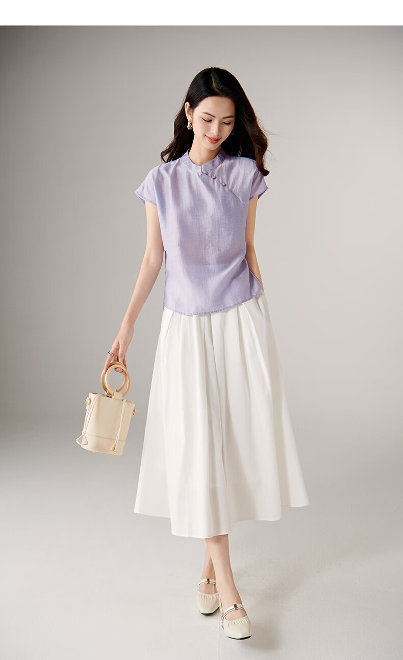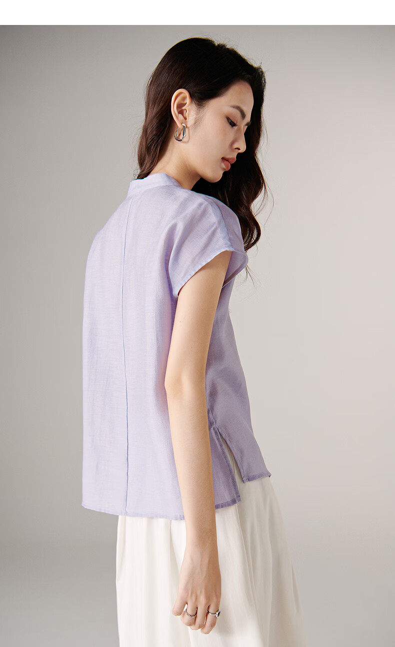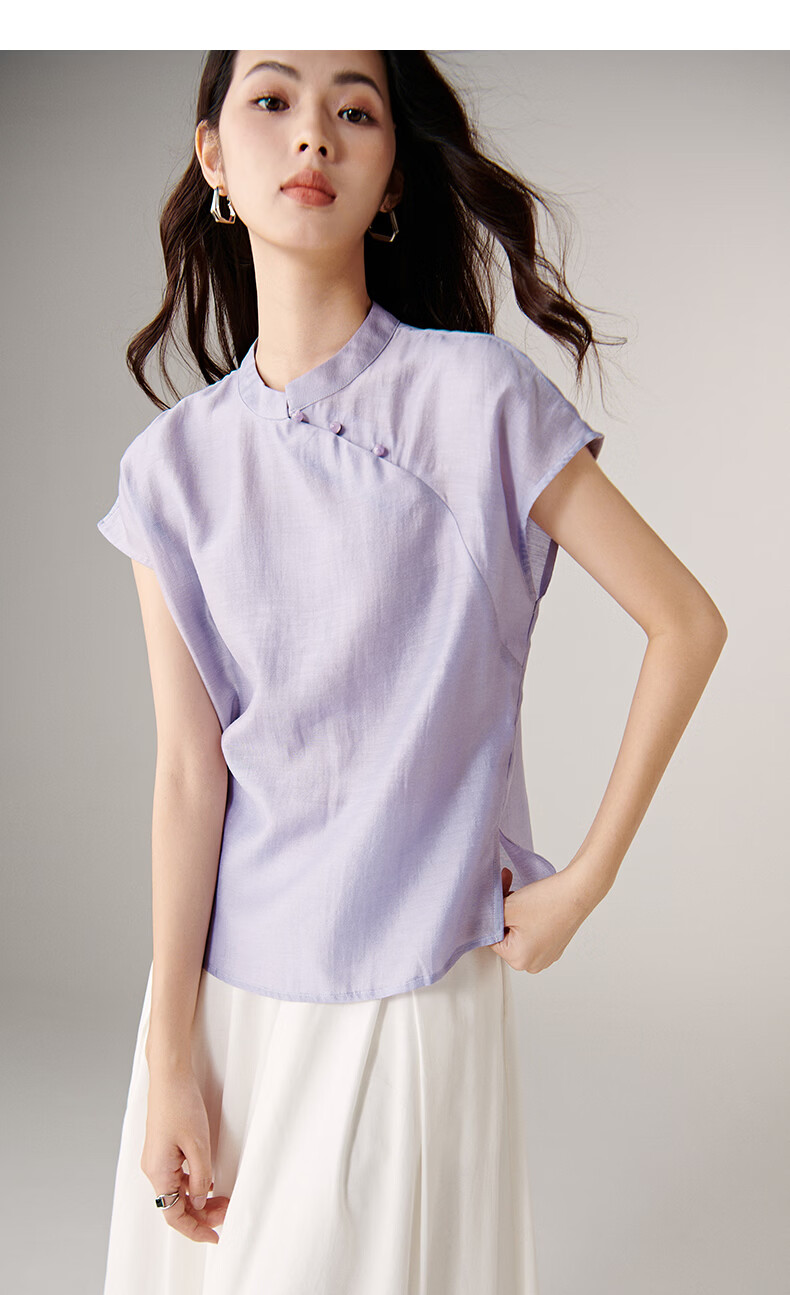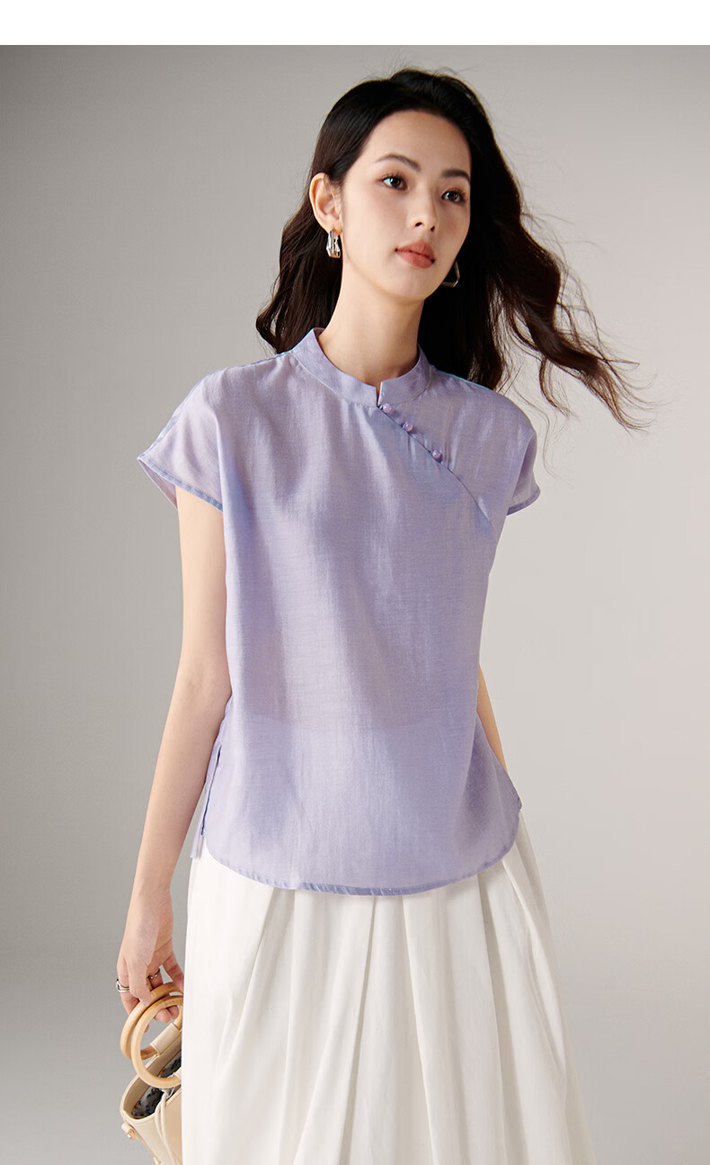 晚白【新品】2026年春款新中式立领醋酸上衣亲肤莱赛尔小众轻薄衬衫女 浅紫色 L