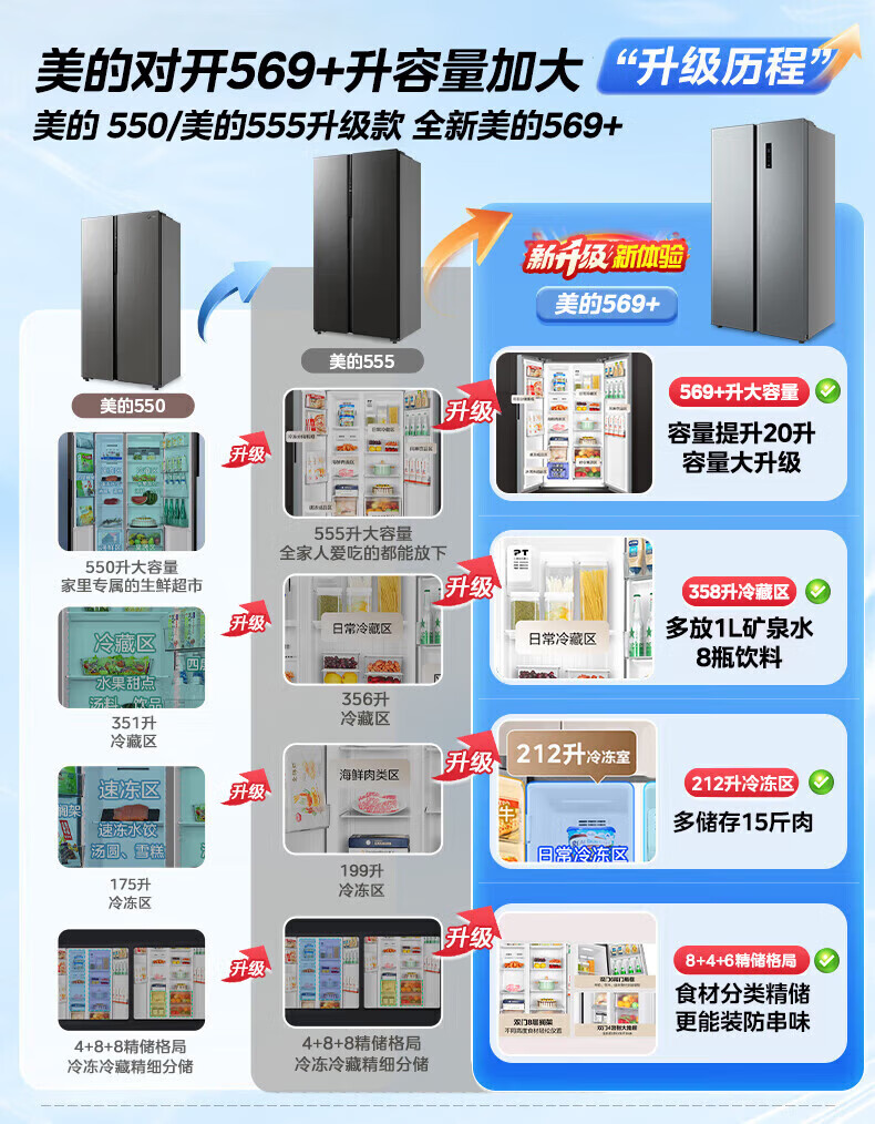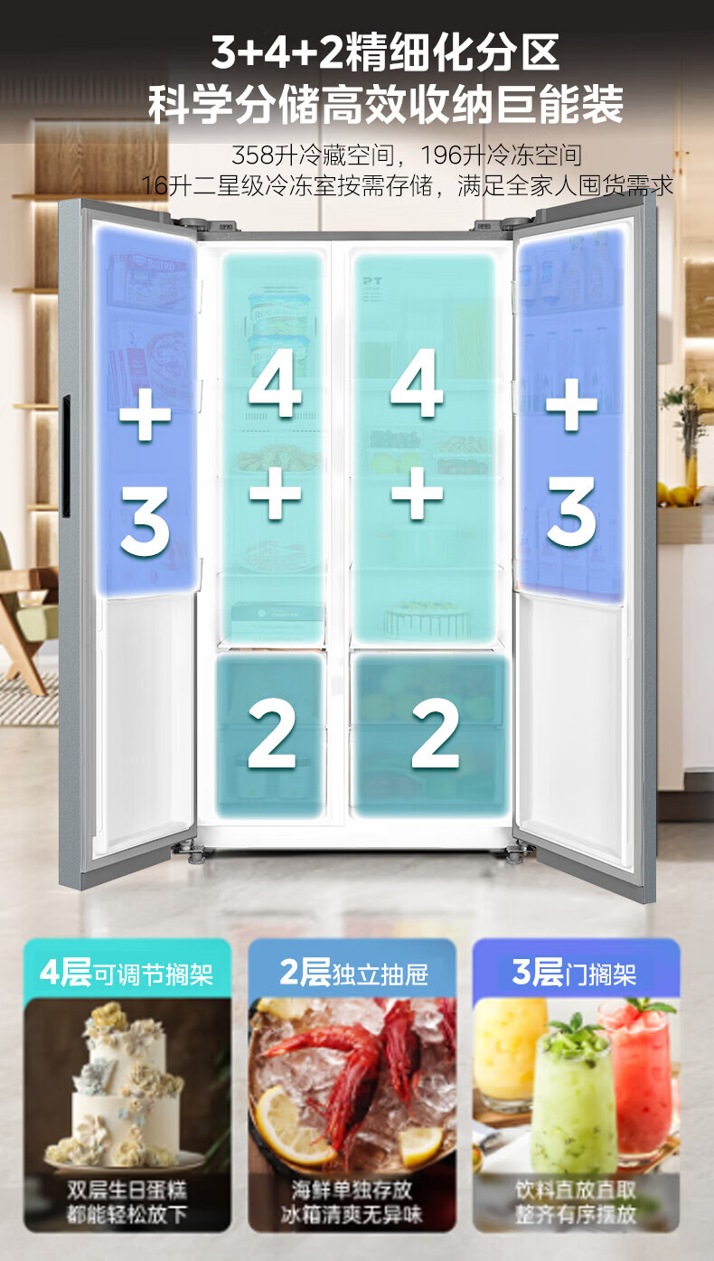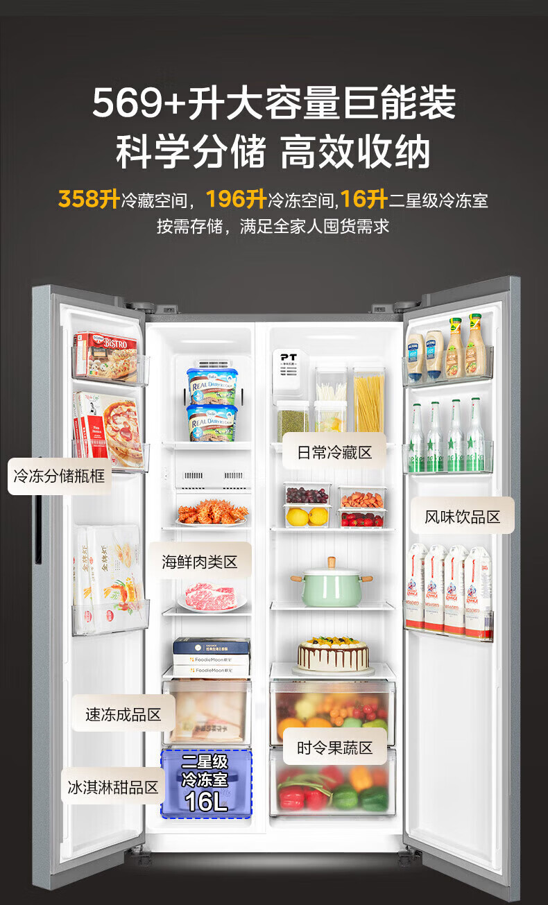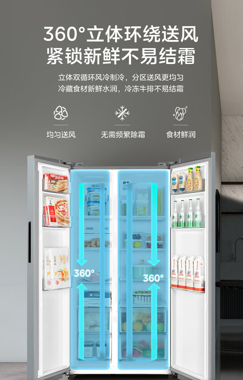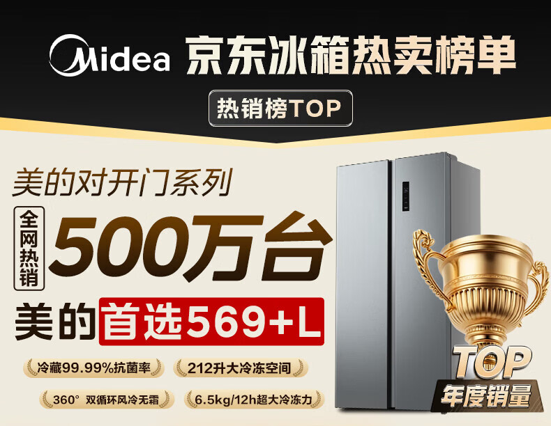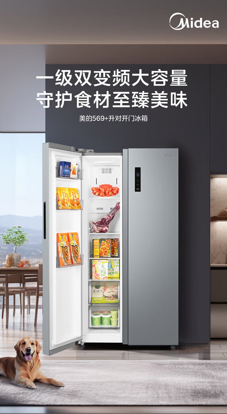 美的(Midea)冰箱572升对开门双开门家用一级能效双变频节能省电风冷无霜抗菌全空间净味大容量电冰箱 国家补贴 【0.87度电/天】对开门|抗菌净味|569+升