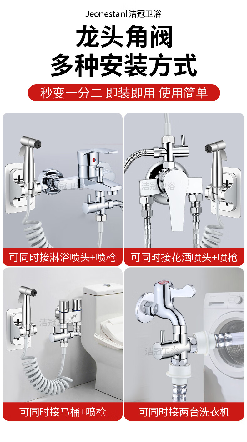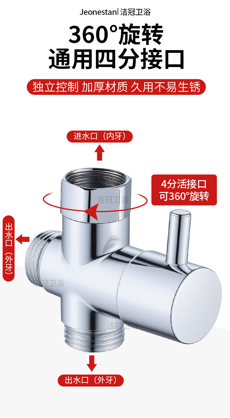 Jeonestan洗衣机龙头转接头分流器双出水4分水嘴一进二出免拆活接分水阀 Y型三通(4分洗衣机嘴+4分接口)