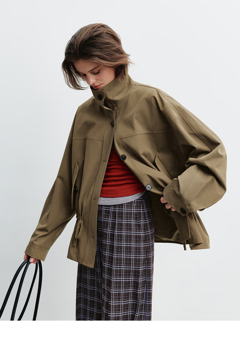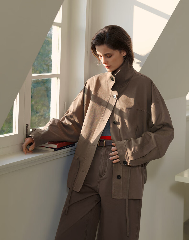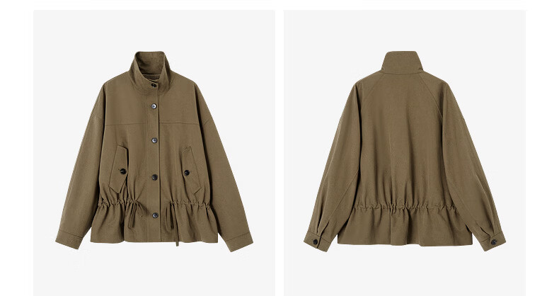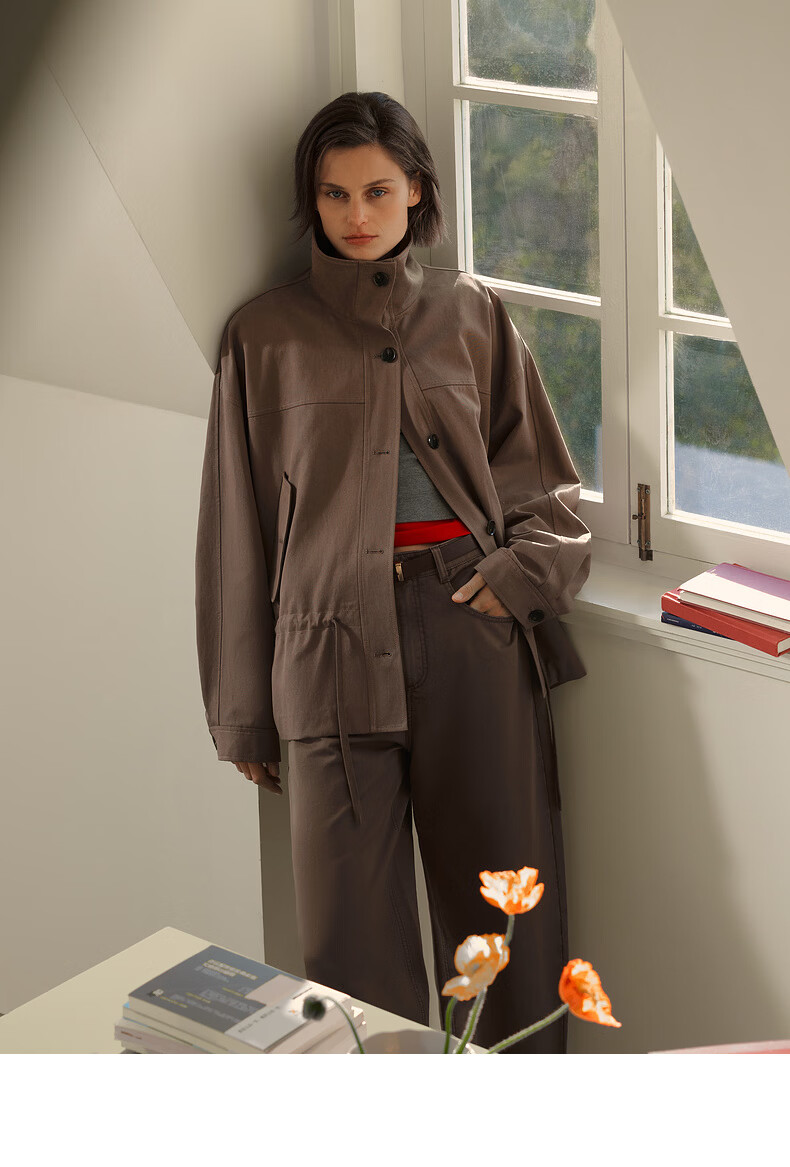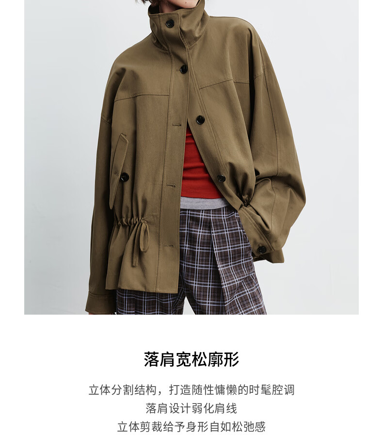 H's【莱赛尔】棕色短外套女26春季新款高级设计感廓形收腰上衣夹克 琥珀棕 M