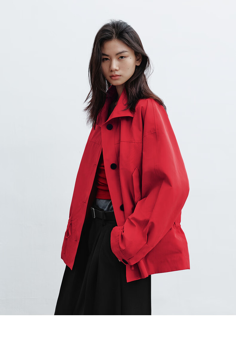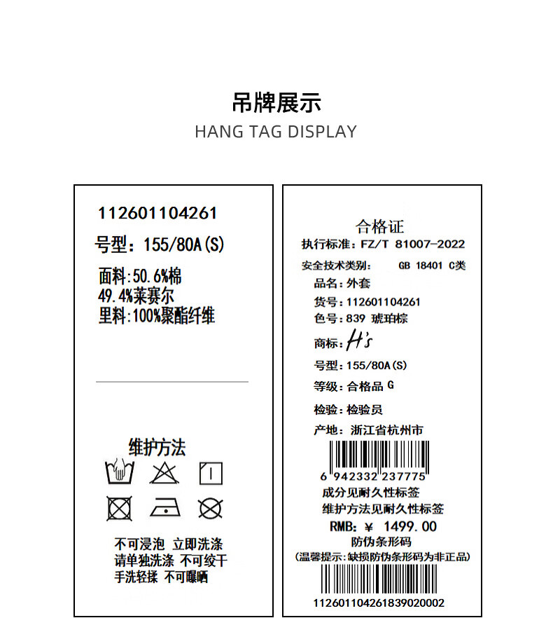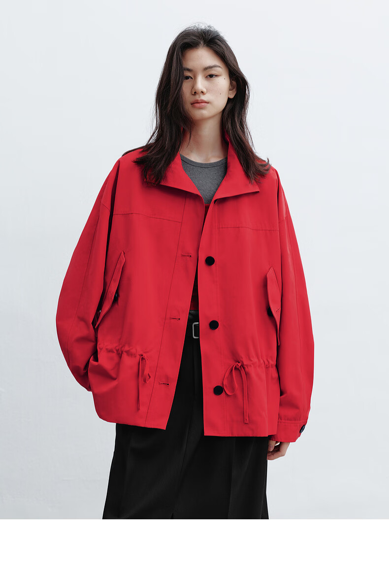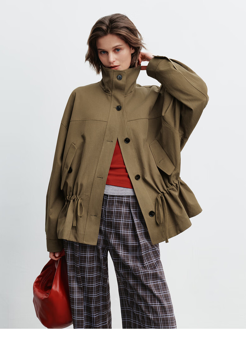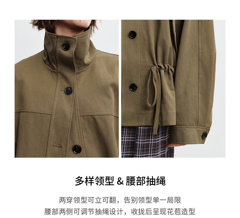 H's【莱赛尔】棕色短外套女26春季新款高级设计感廓形收腰上衣夹克 琥珀棕 M