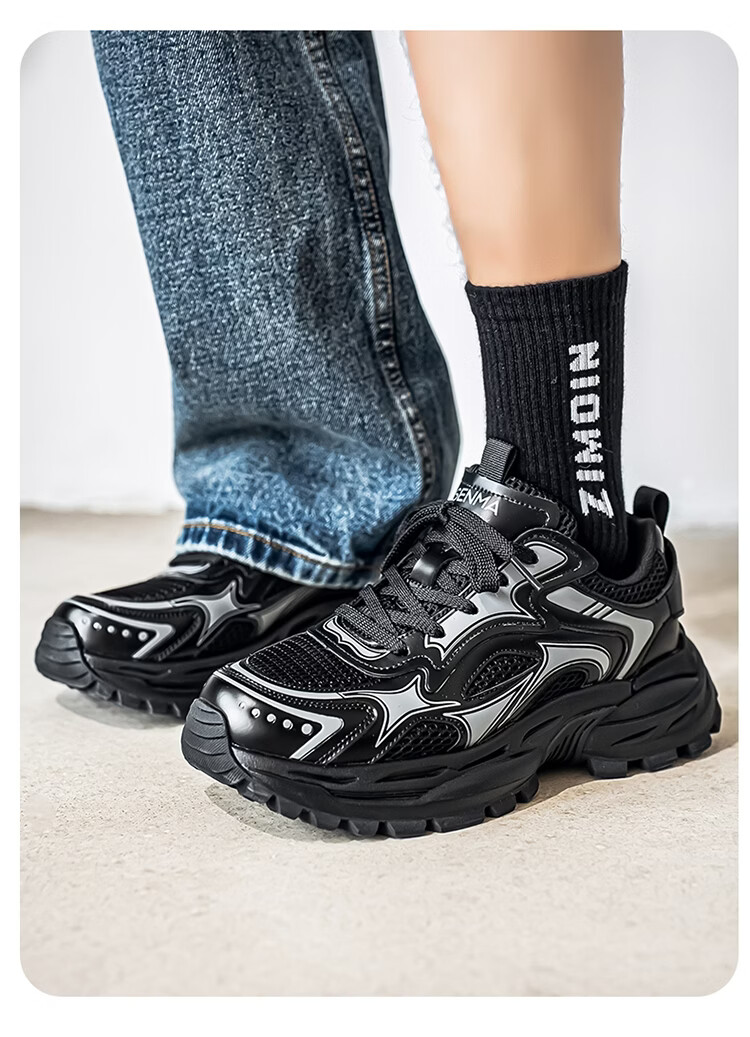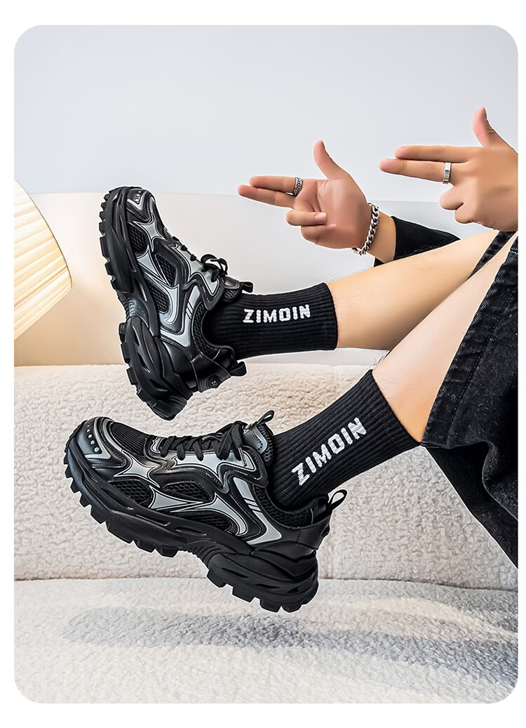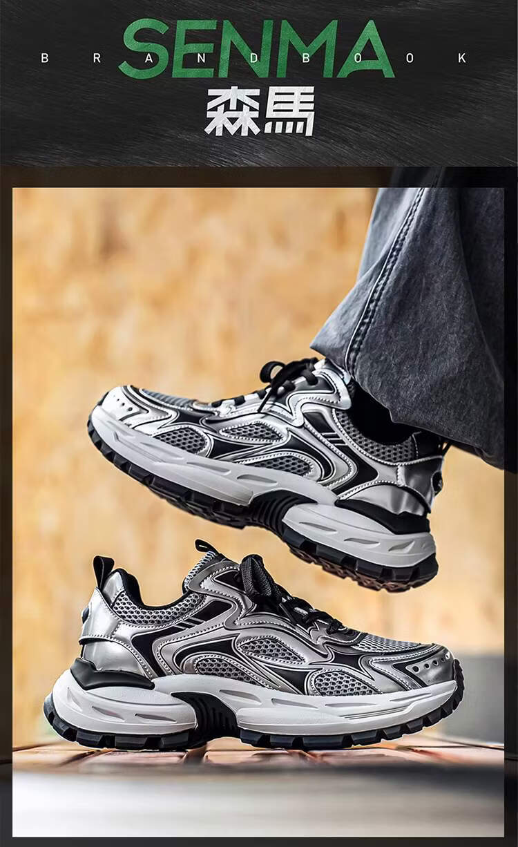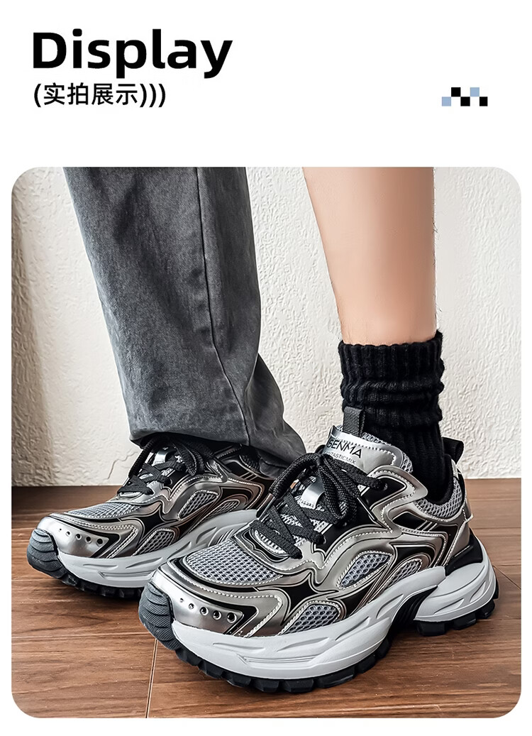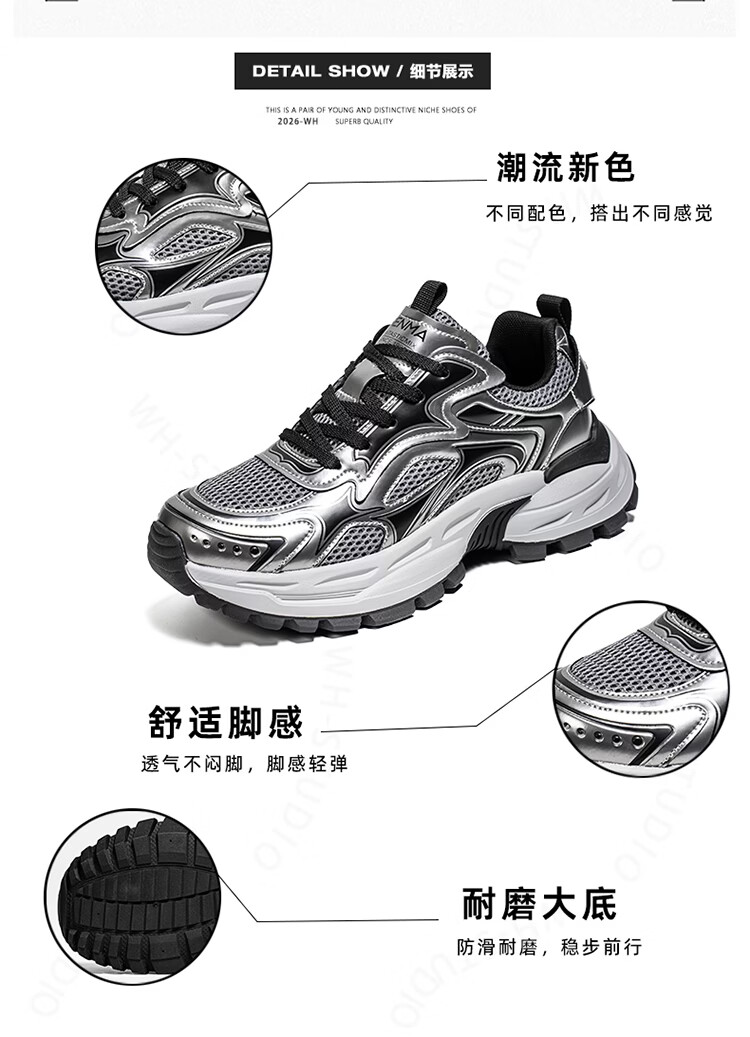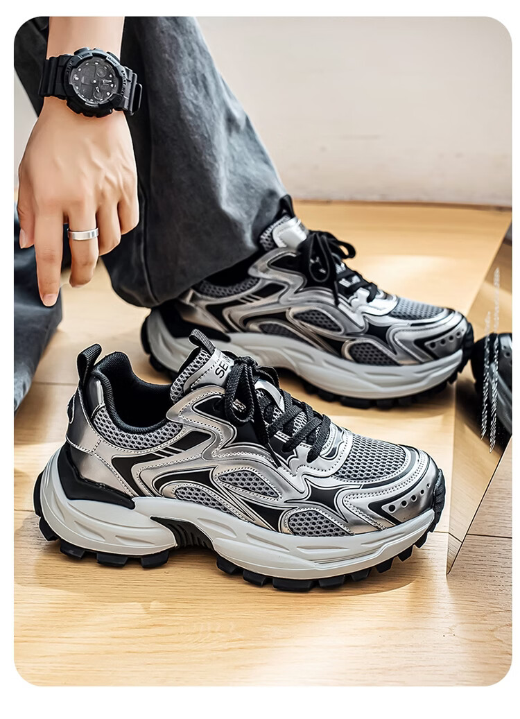 森馬男鞋2026新款春季潮牌高级感休闲百搭老爹鞋男士厚底防滑运动潮鞋 银色【基础款】 39 标准码数/现货秒发