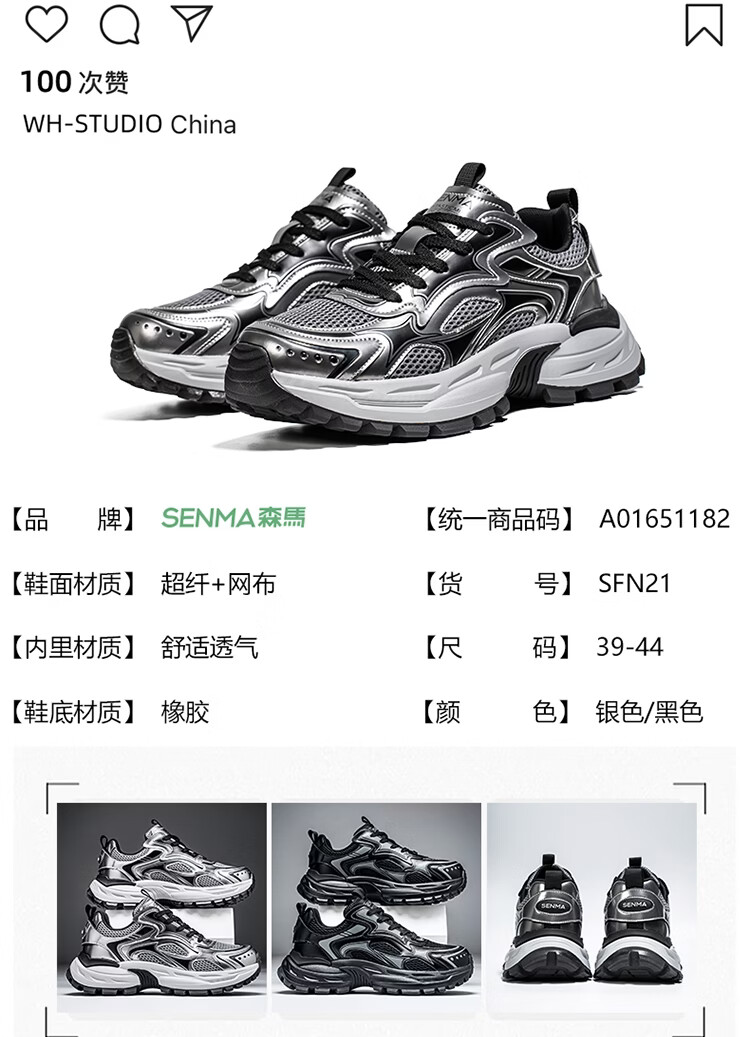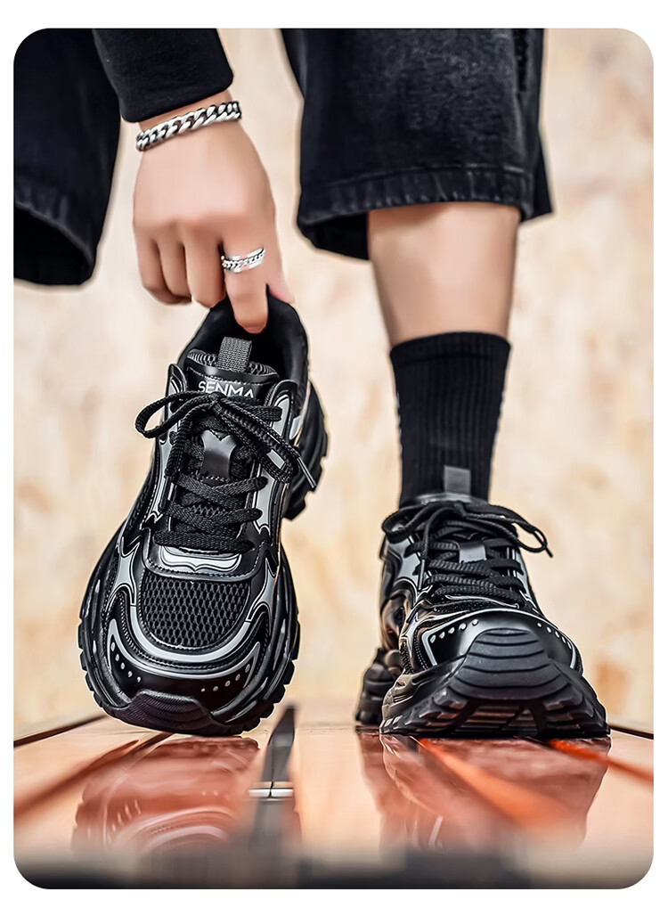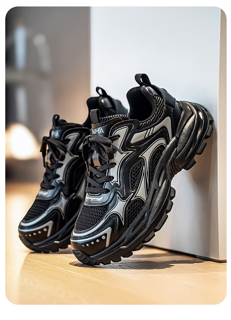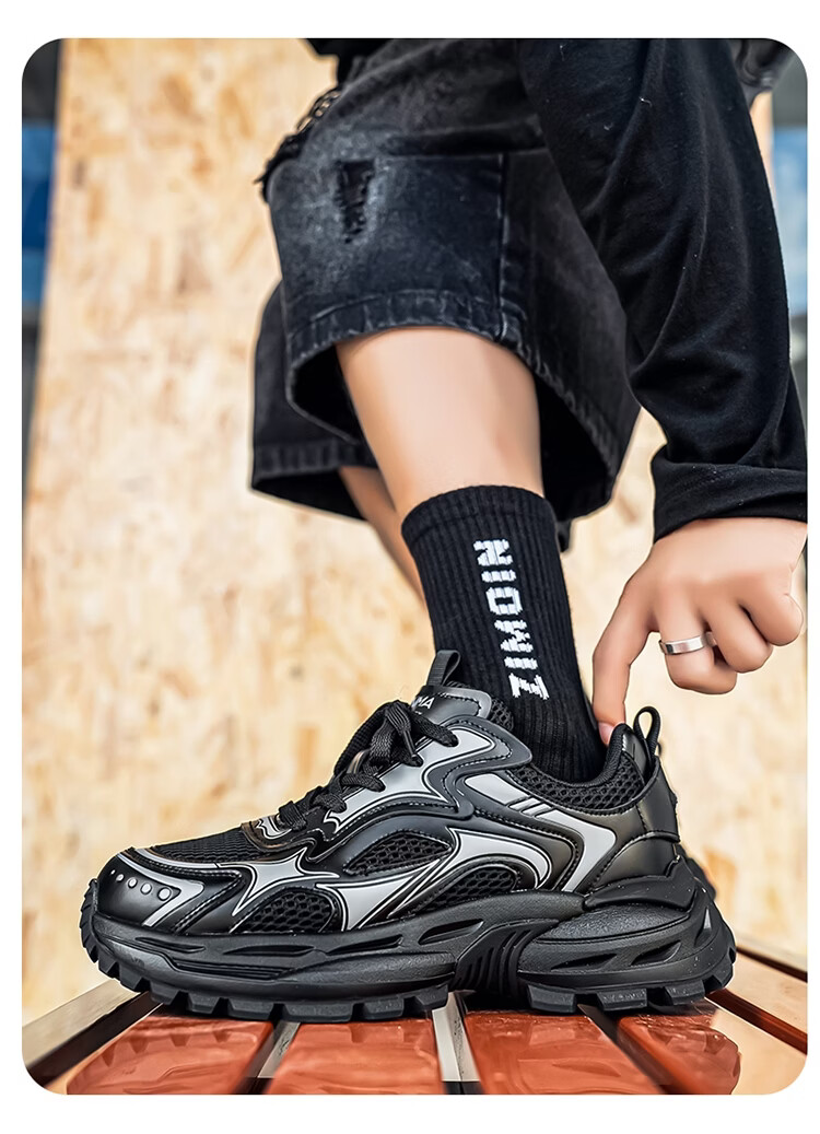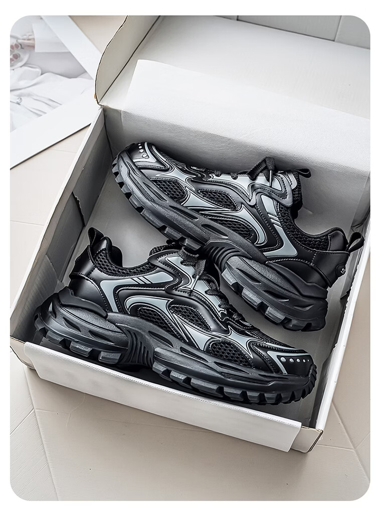 森馬男鞋2026新款春季潮牌高级感休闲百搭老爹鞋男士厚底防滑运动潮鞋 银色【基础款】 39 标准码数/现货秒发