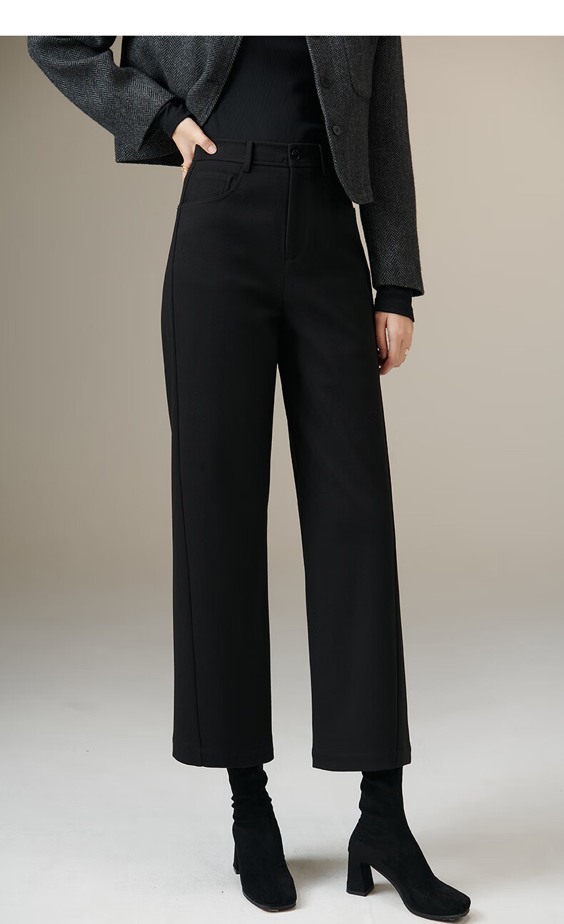 晚白【新品】冬款时尚九分裤高腰显瘦气质通勤直筒阔腿裤女 黑色 28