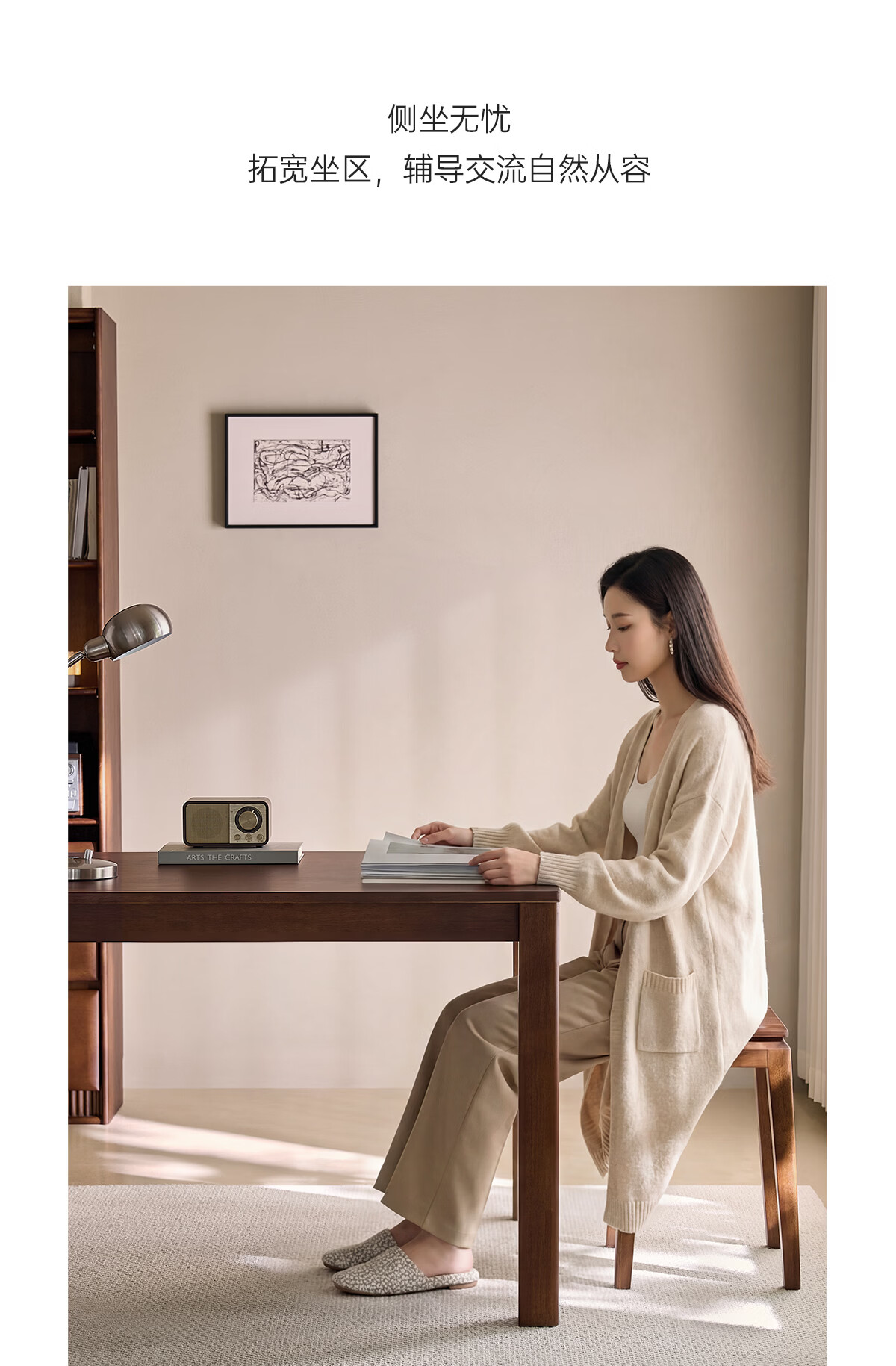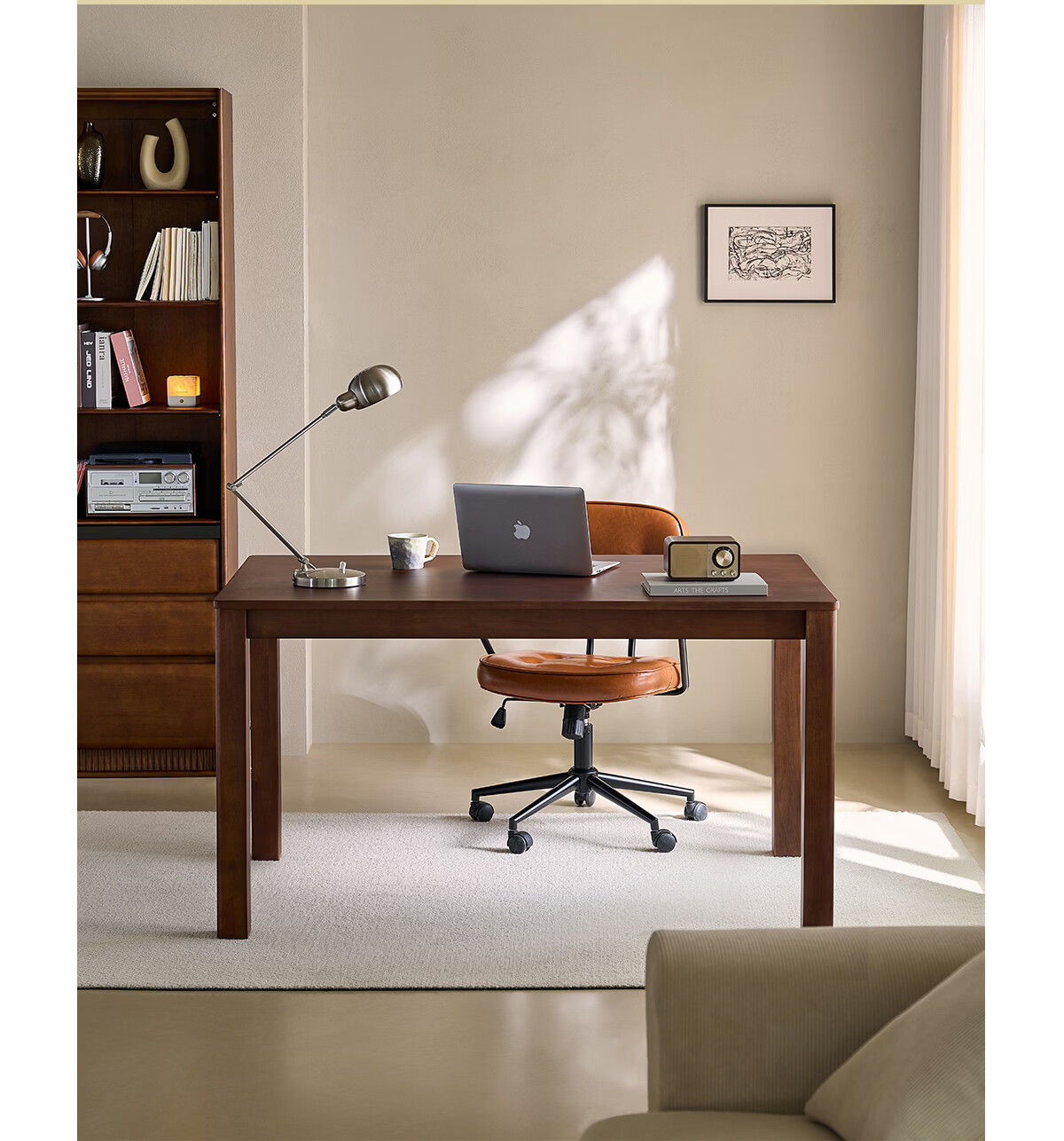 索菲亚实木书桌现代简约橡胶木办公桌书房大板桌双人学习桌胡桃木色桌子 【单桌】朴橡胡桃木色140cm 【FAS进口橡胶木】送货入户包安装