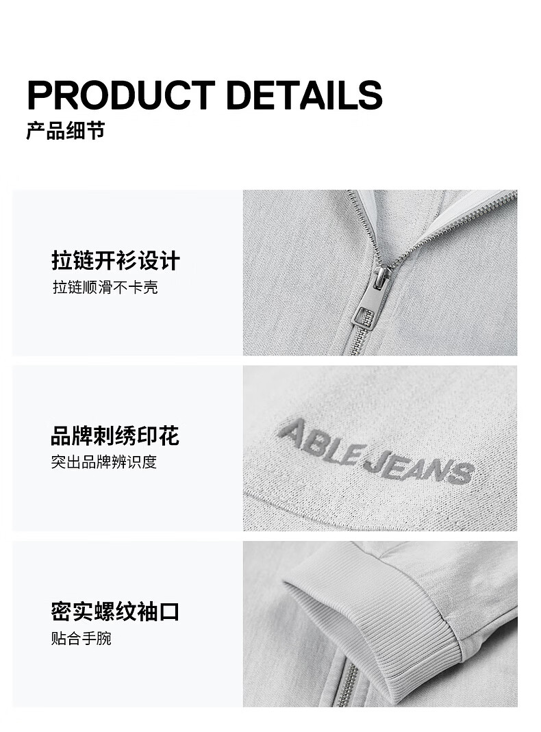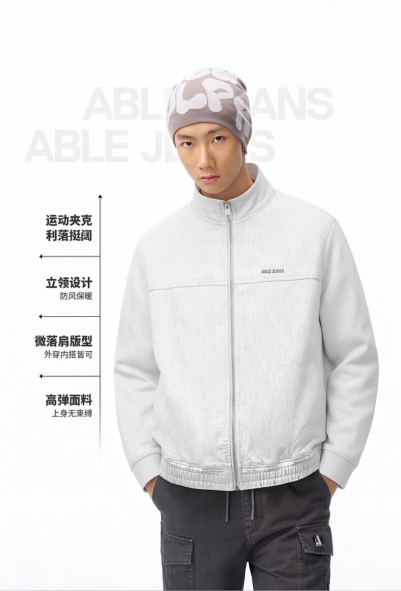 ABLE JEANS【棒球针织夹克】26春新款男上衣休闲潮流高级感开衫外套825015 皎月白 M