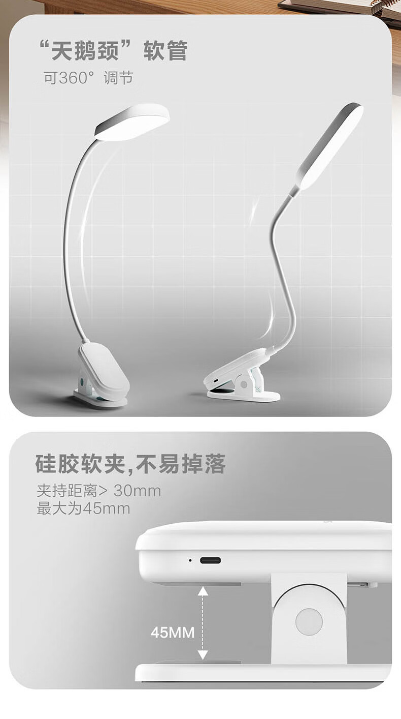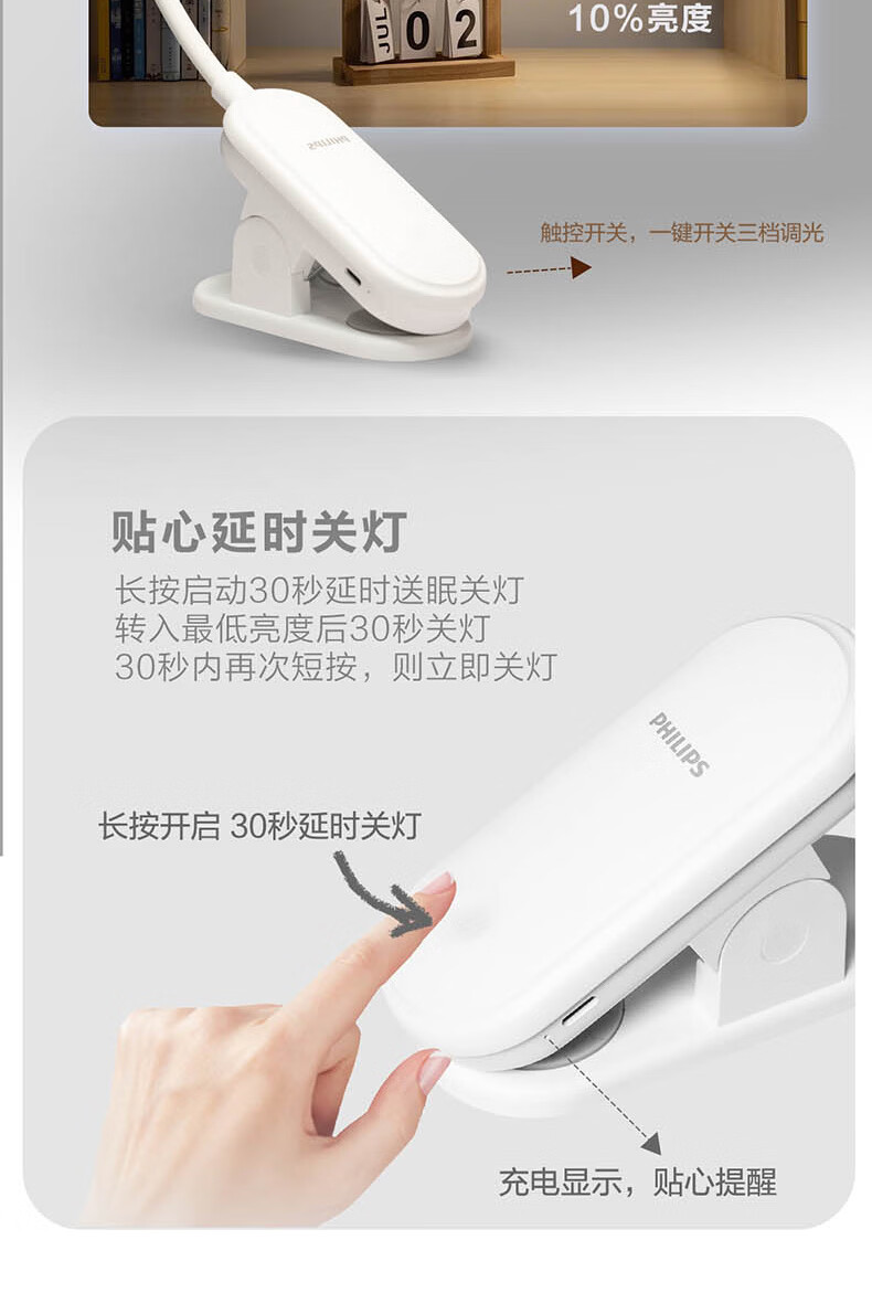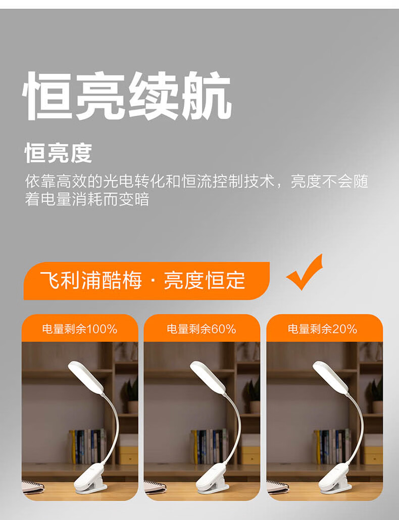 飞利浦充电夹子灯 护眼阅读学习家用卧室大学生宿舍寝室led灯工作灯 【线】3600毫安/充插两用 【无蓝光危害】【无可视频闪】