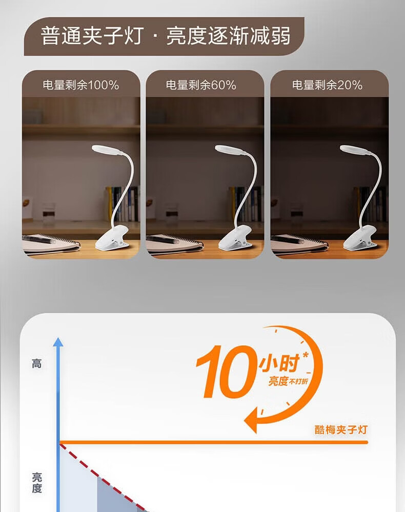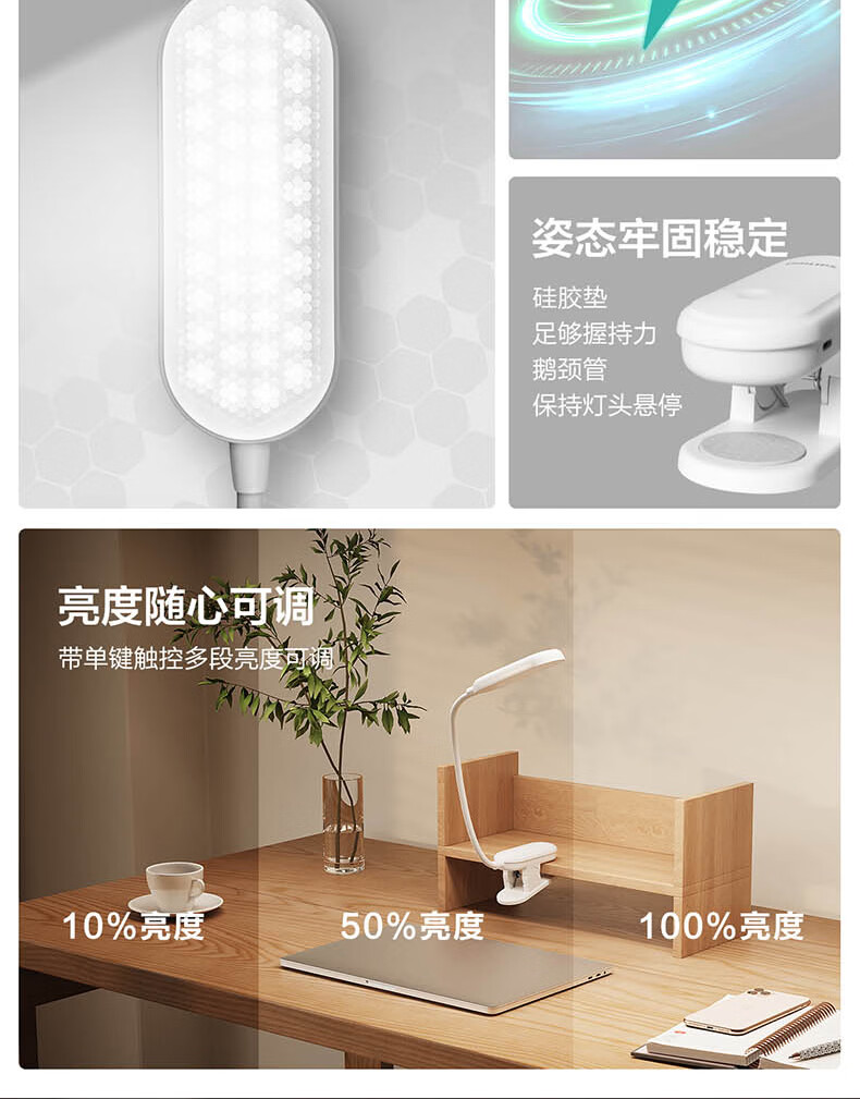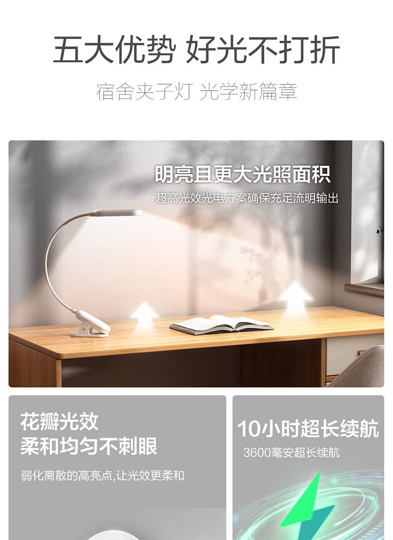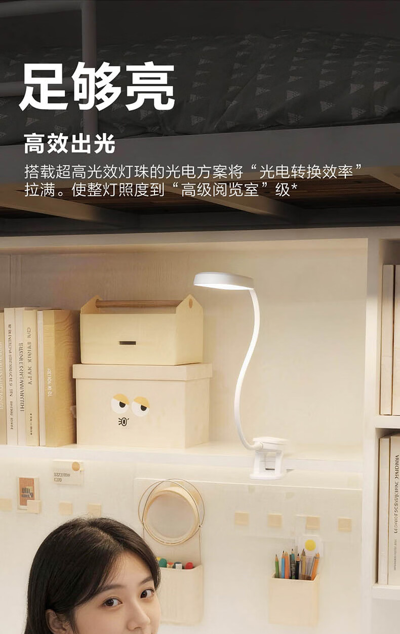 飞利浦充电夹子灯 护眼阅读学习家用卧室大学生宿舍寝室led灯工作灯 【线】3600毫安/充插两用 【无蓝光危害】【无可视频闪】