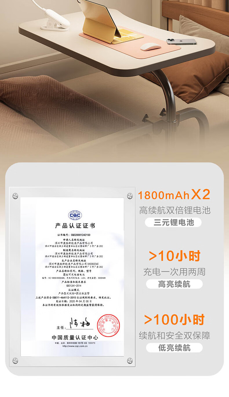 飞利浦台灯护眼 学习阅读充电学生学习专用夹式床头灯卧室宿舍办公桌灯 【线+插头】3600毫安/充插两用 【无蓝光危害】【无可视频闪】