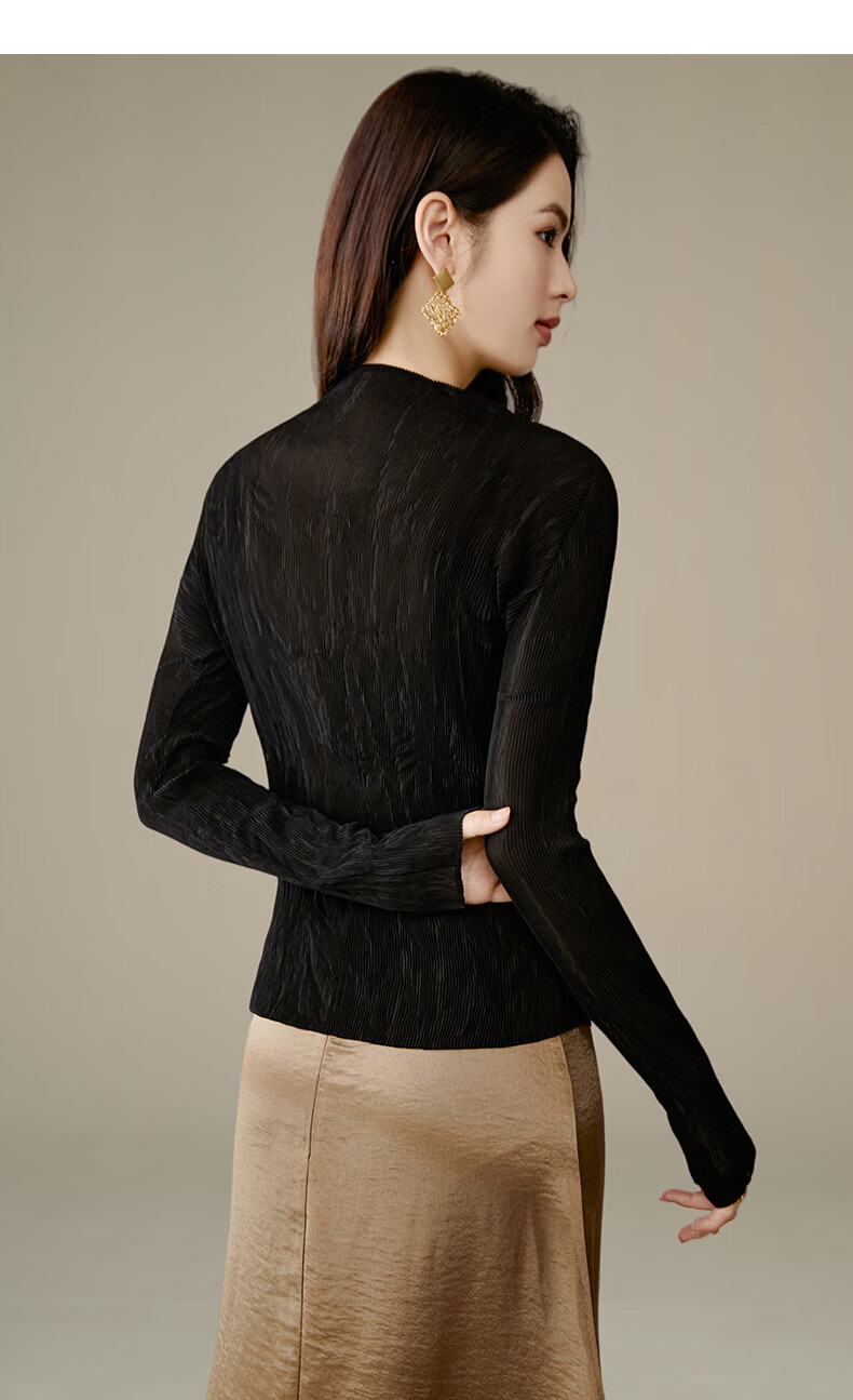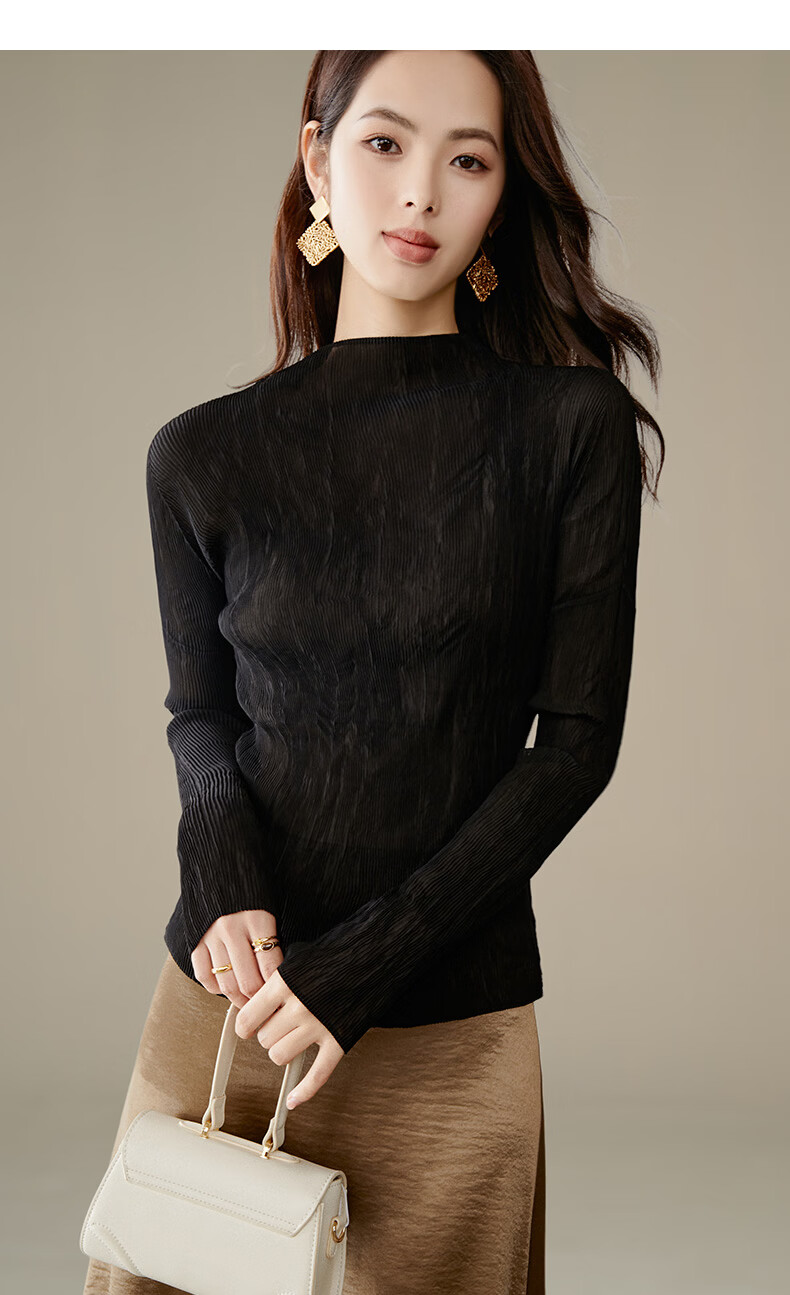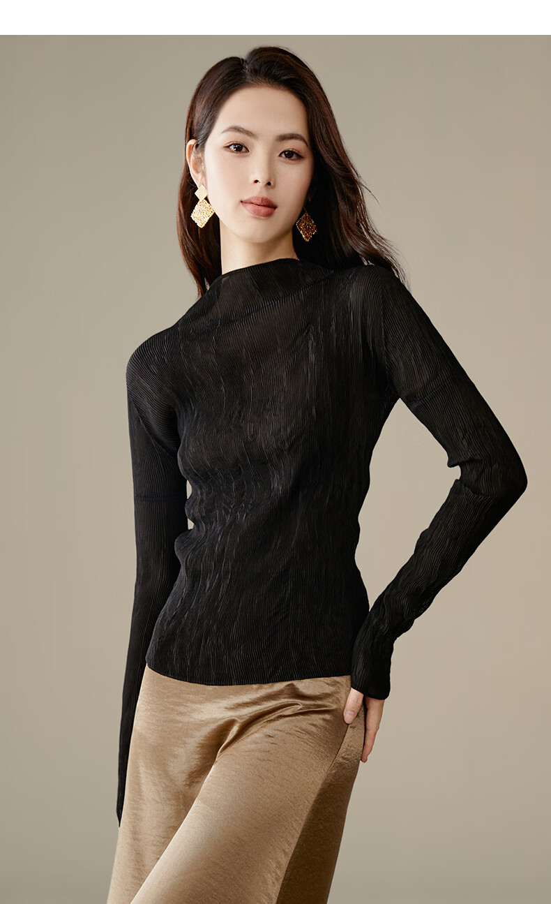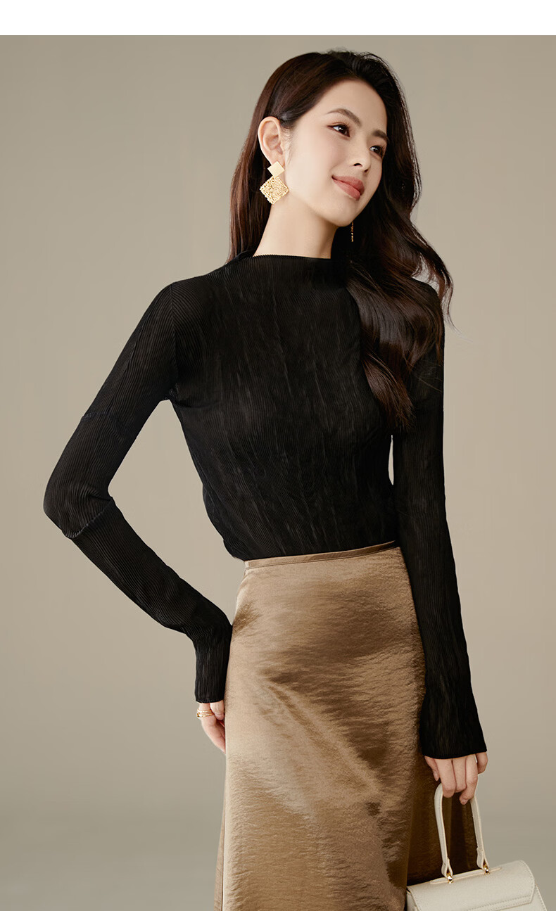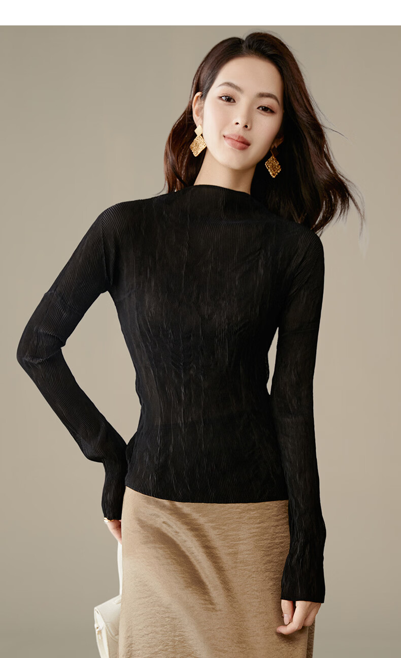 晚白【新品】2026春款经典立领内搭修身显瘦时尚百搭打底衫女 黑色 M