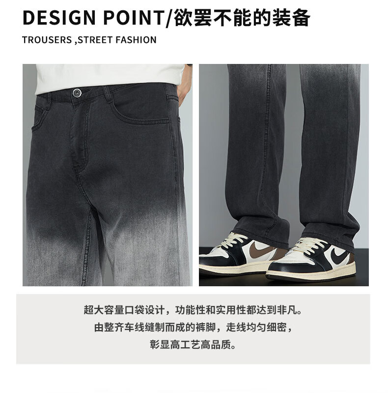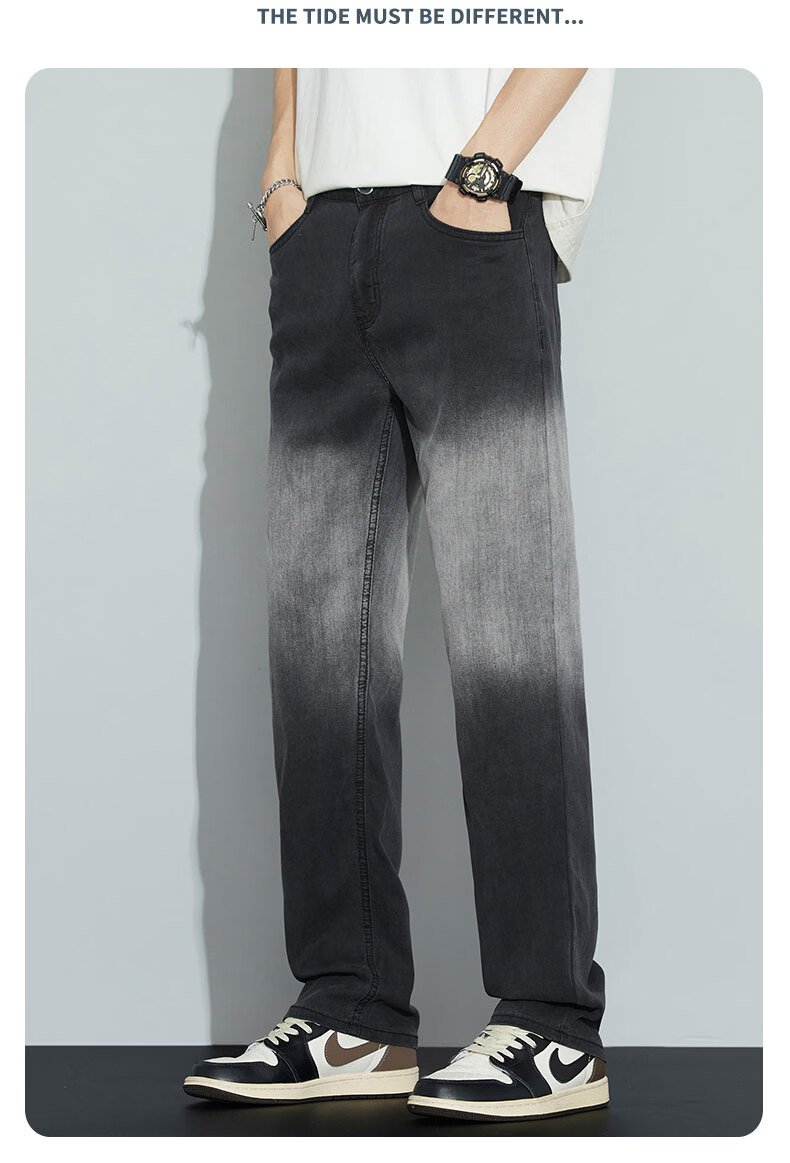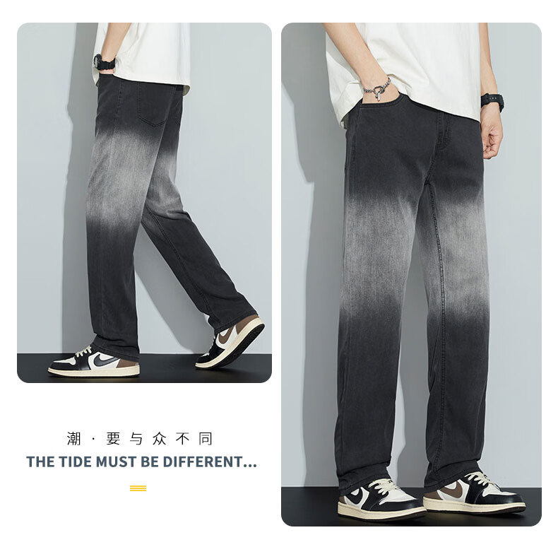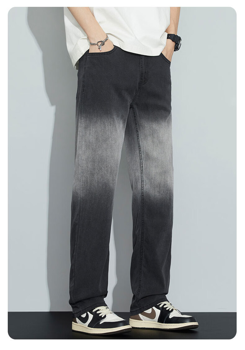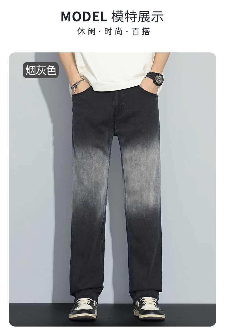 真维斯牛仔裤男春夏季天丝垂顺宽松百搭直筒裤男新款潮牌渐变时尚长裤男 烟灰色 28