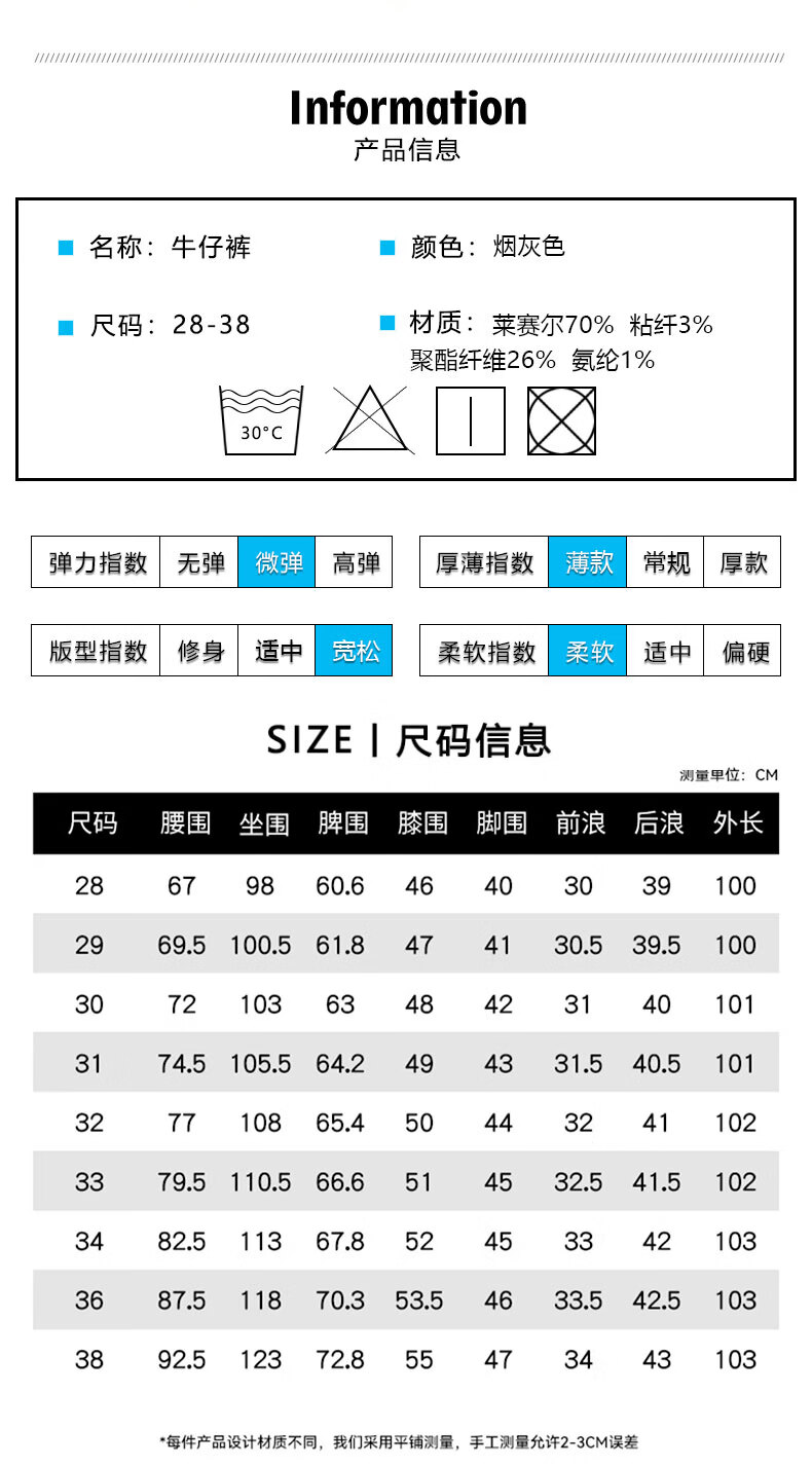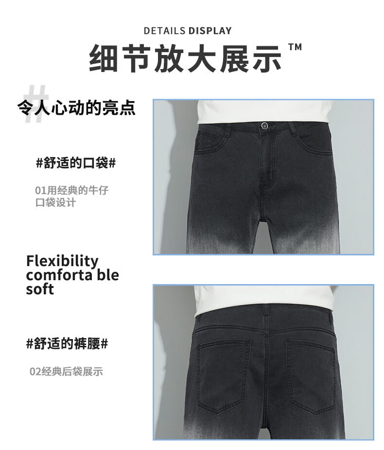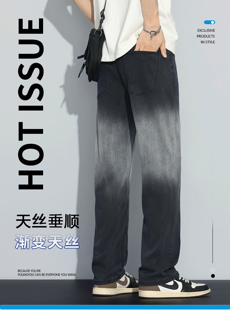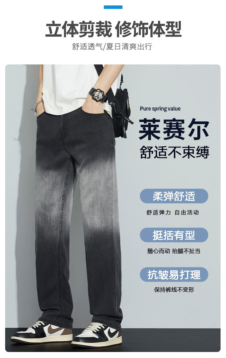 真维斯牛仔裤男春夏季天丝垂顺宽松百搭直筒裤男新款潮牌渐变时尚长裤男 烟灰色 28