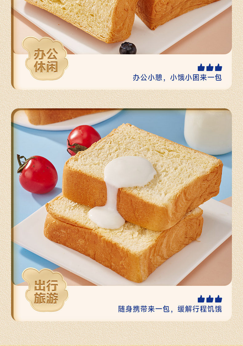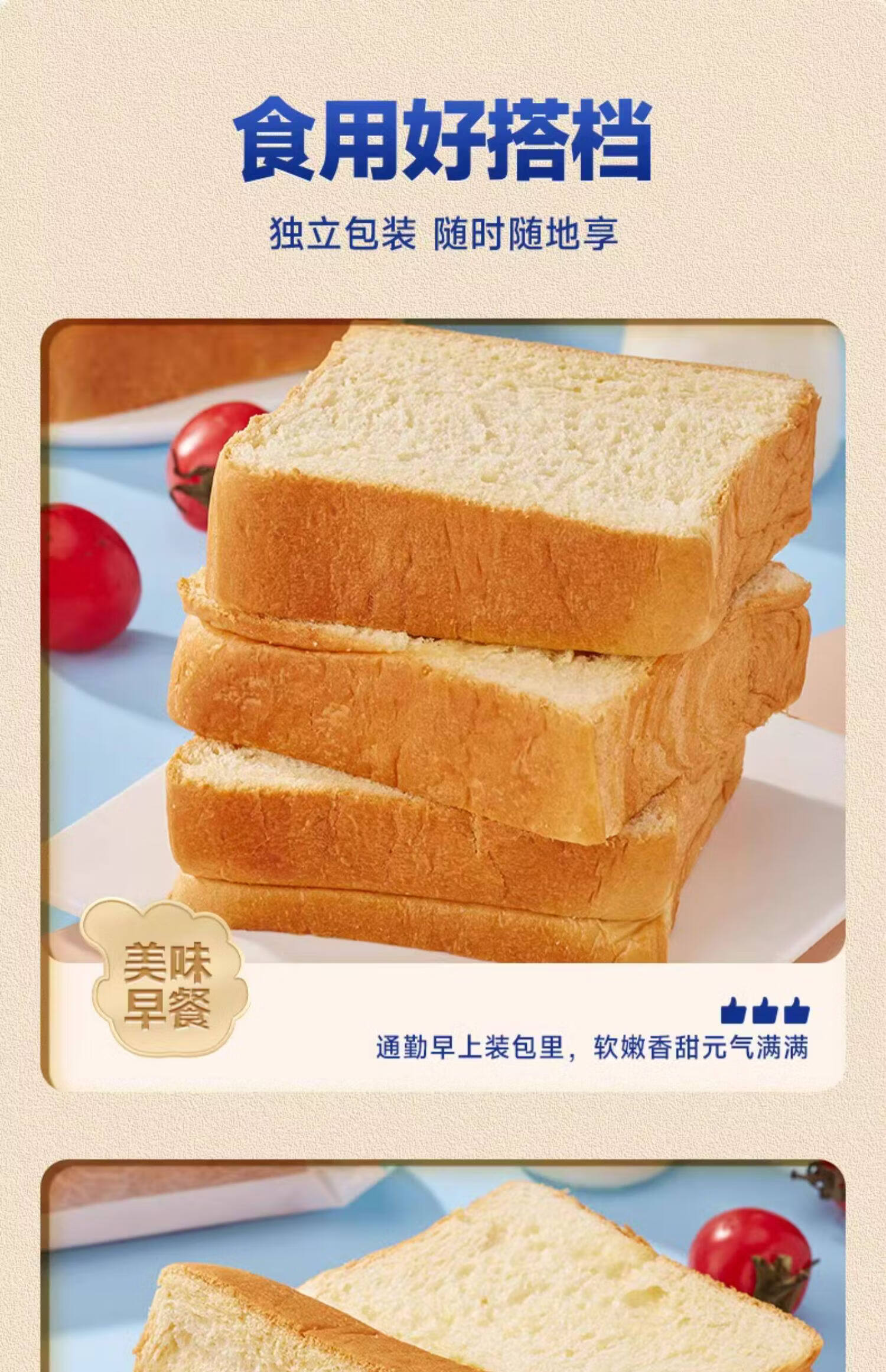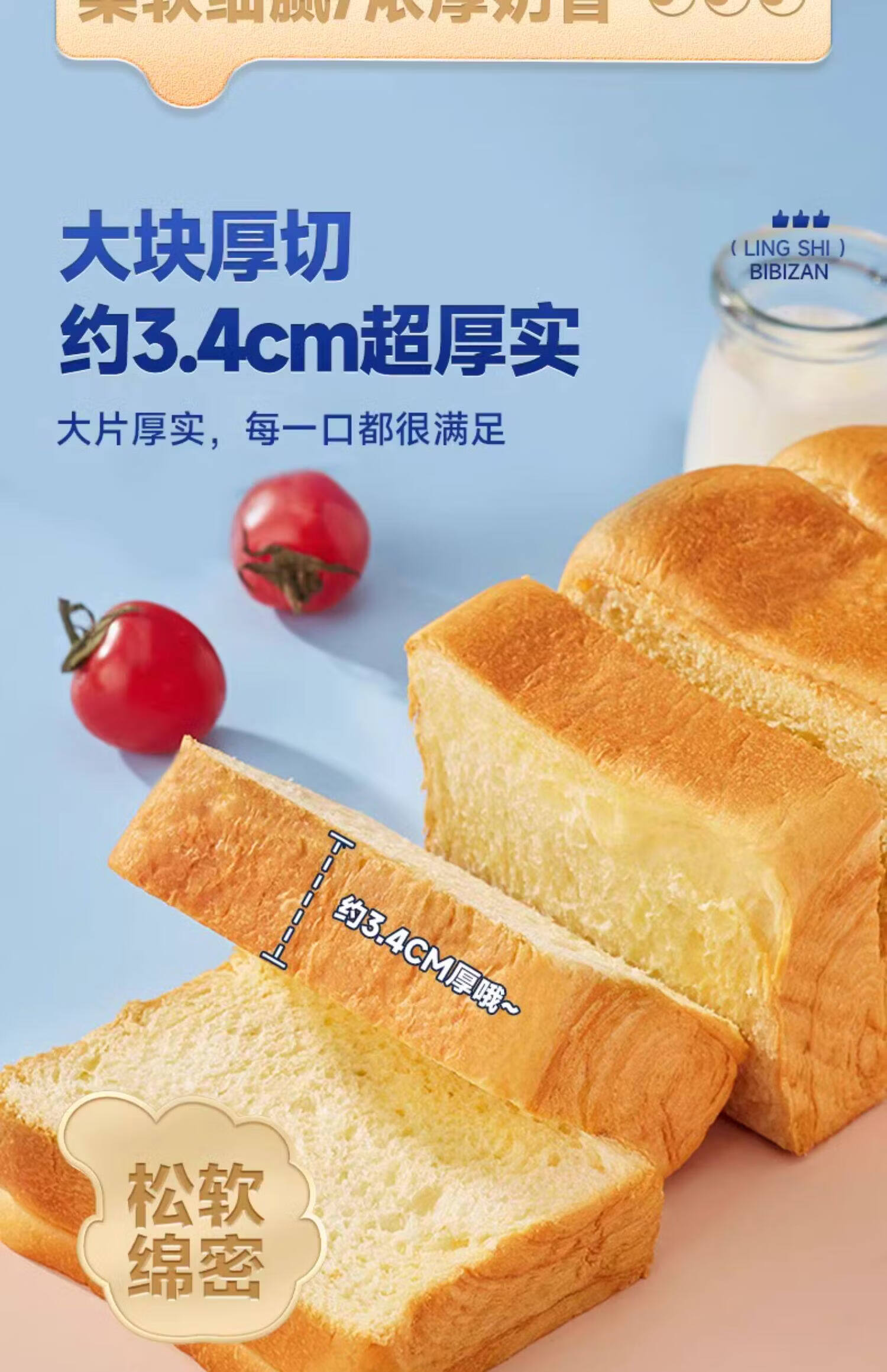 【官方补贴】比比赞厚切吐司面包315g/箱早餐整箱学生蛋糕代餐 315g 1箱