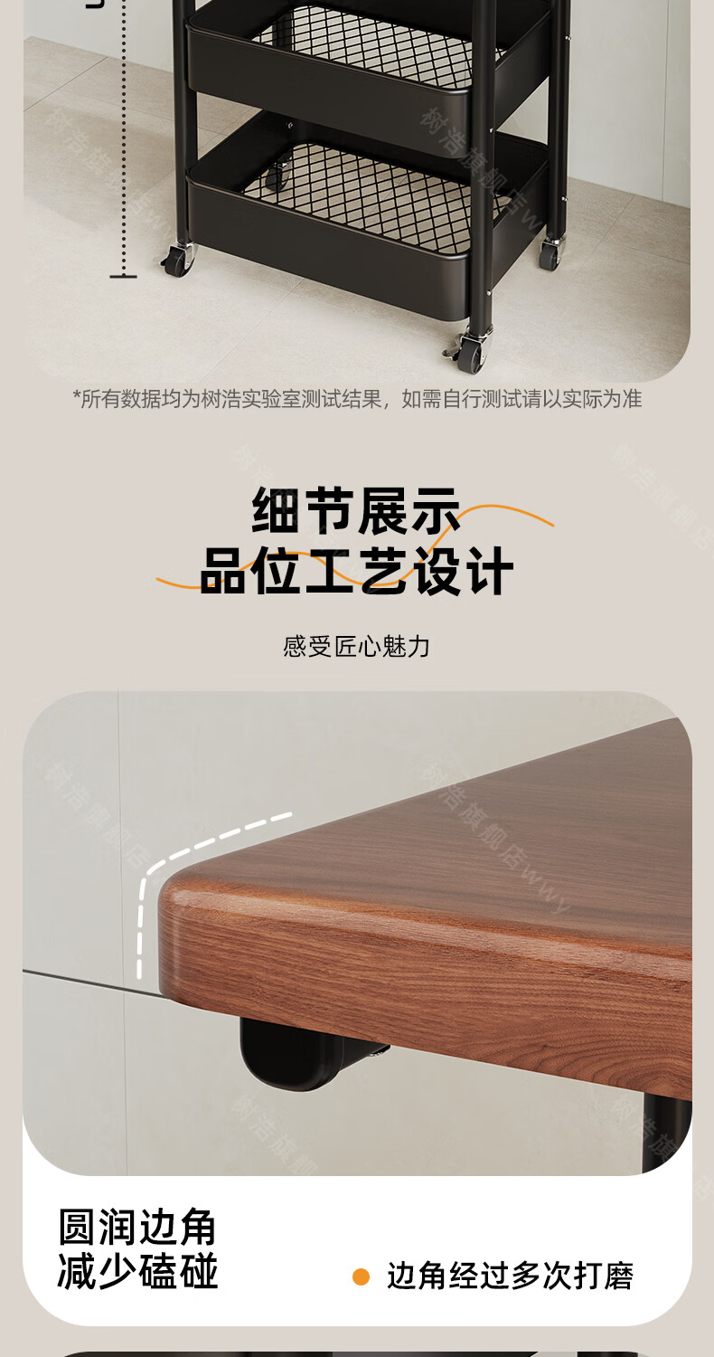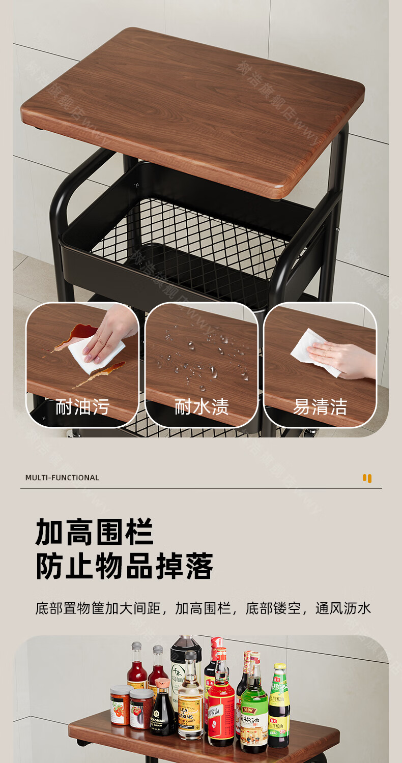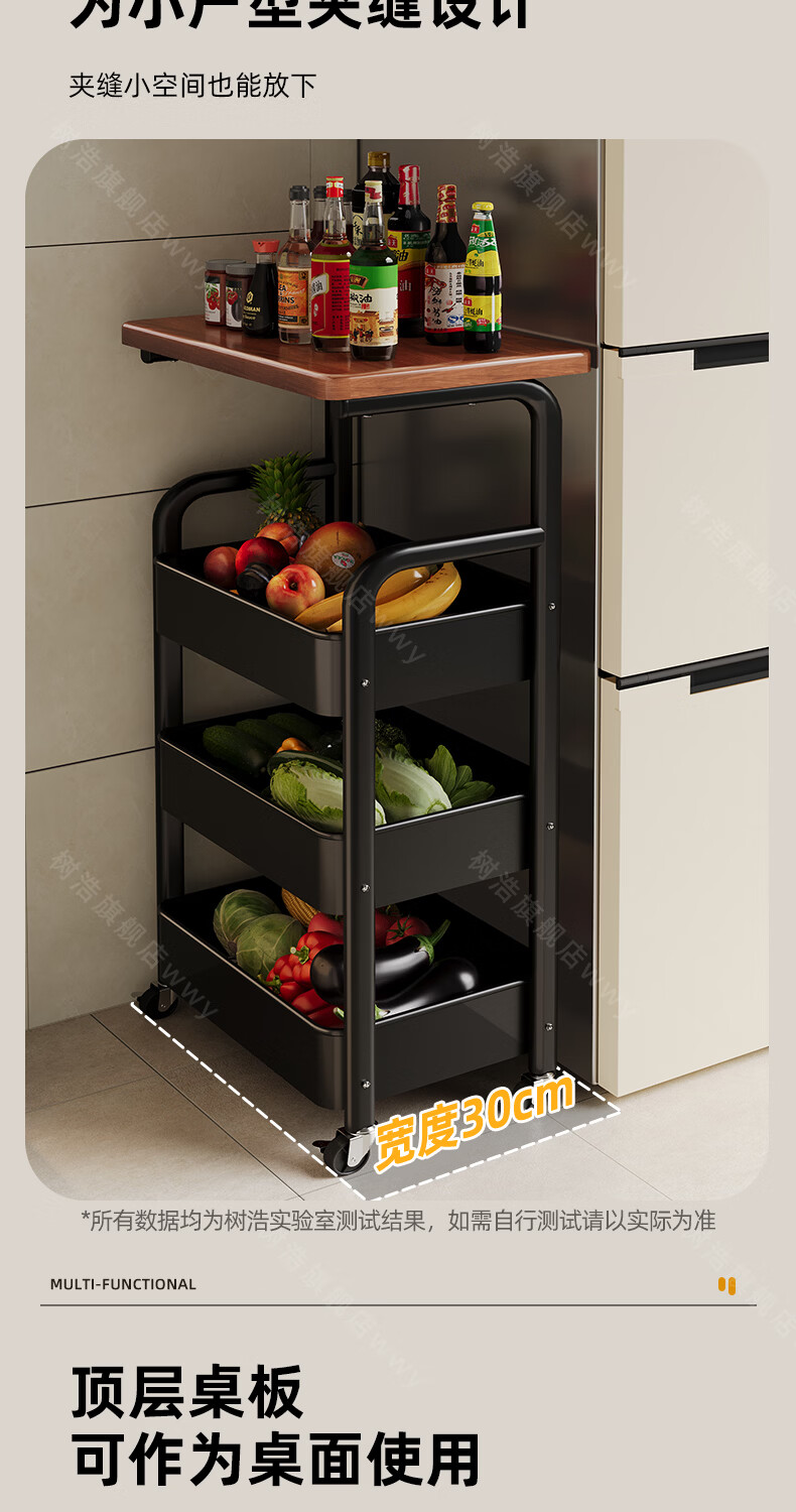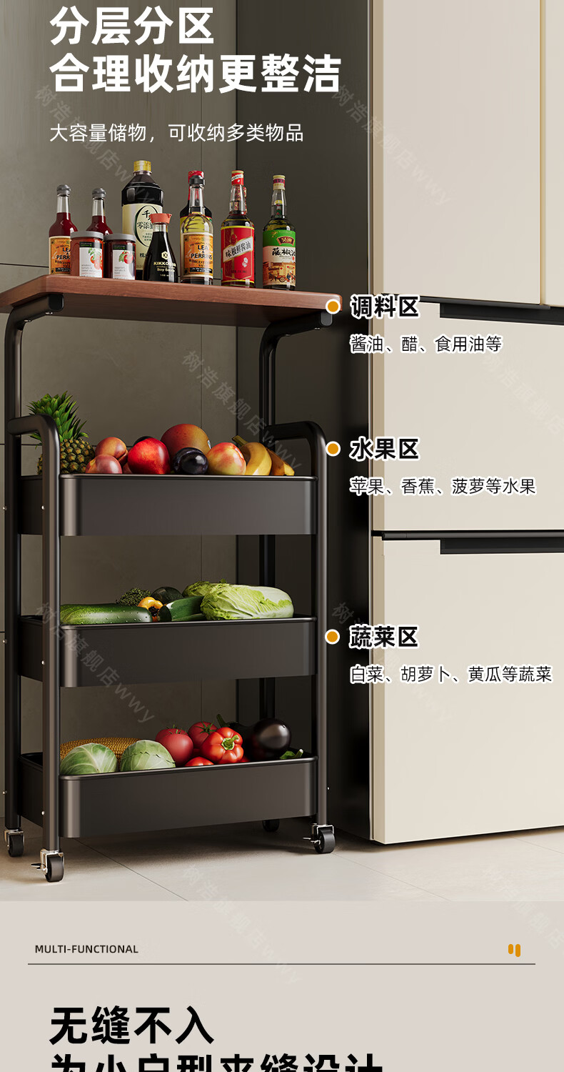 树浩移动置物架客厅多功能储物架厨房落地收纳手推车家用多层整理架子 双层【加厚升级款】碳钢置物篮-中古黑-刹车万向轮