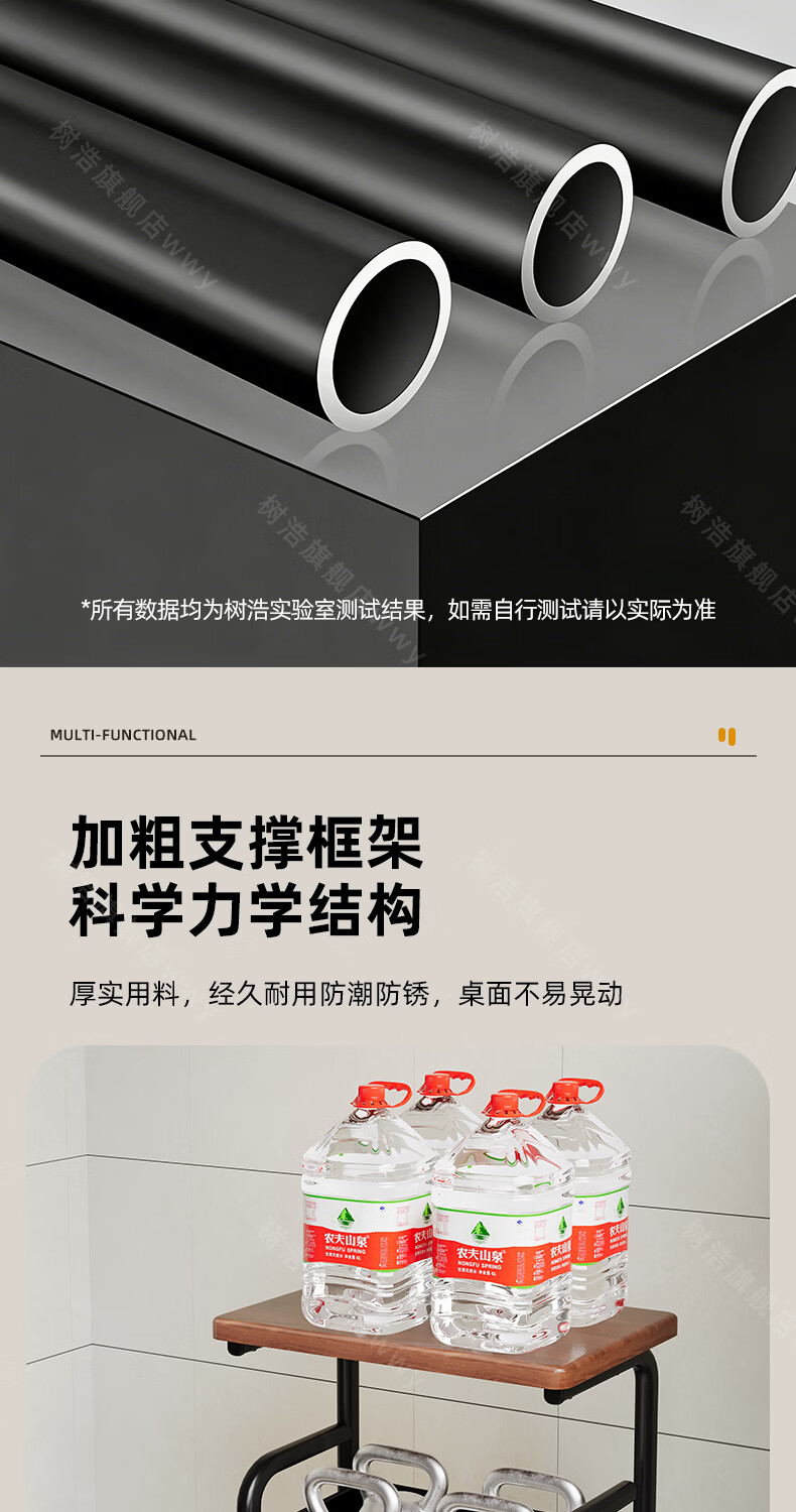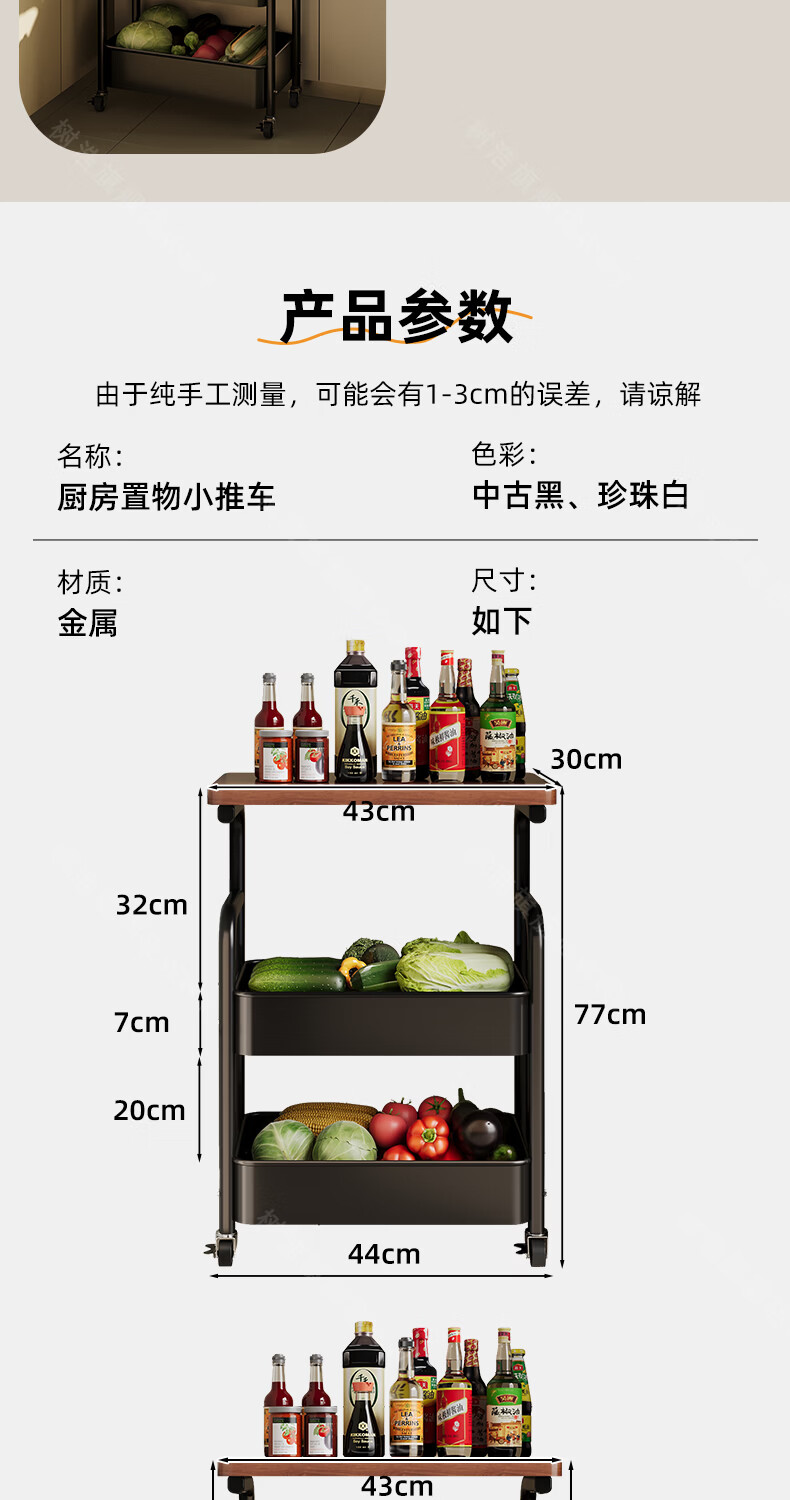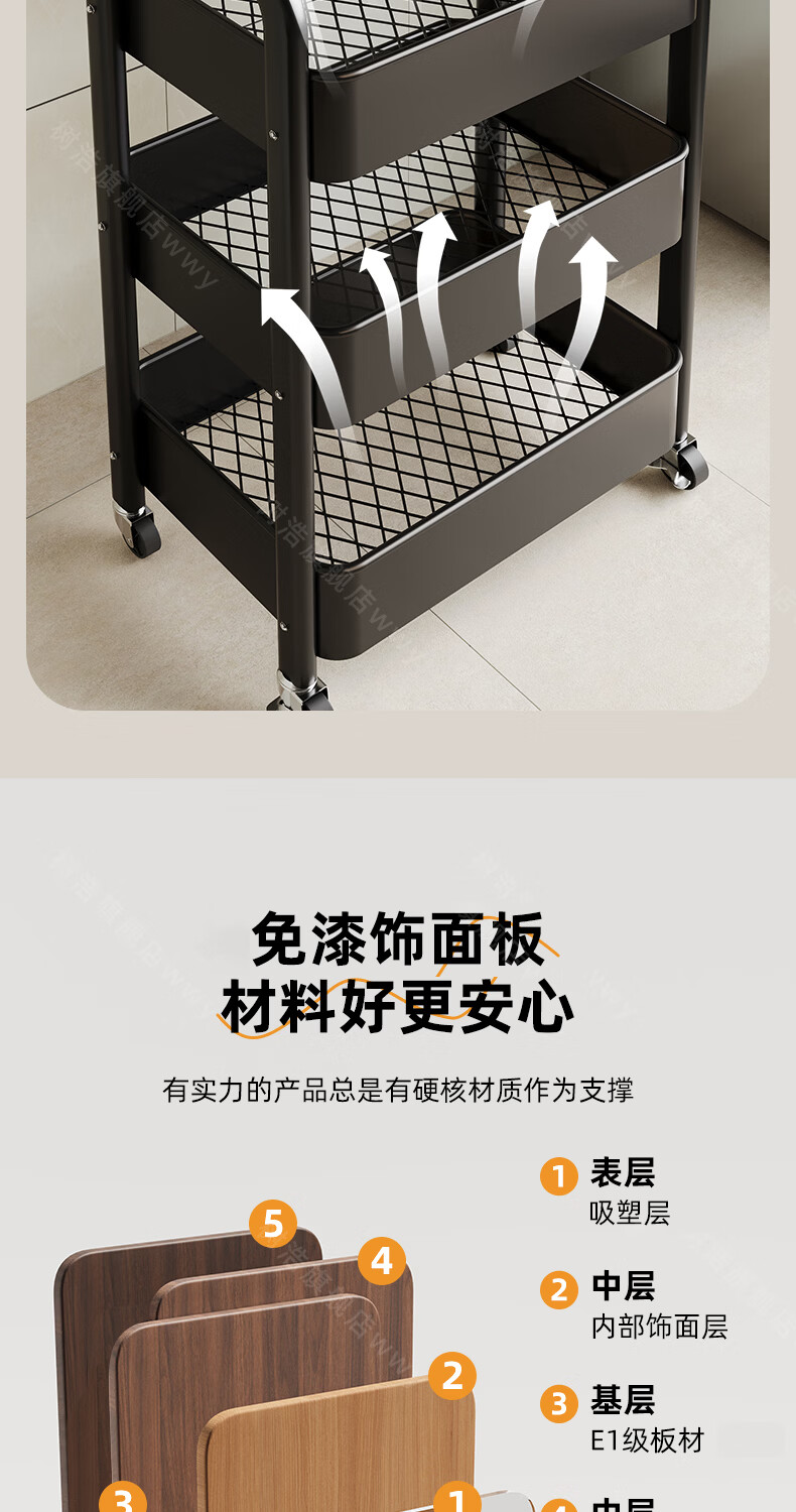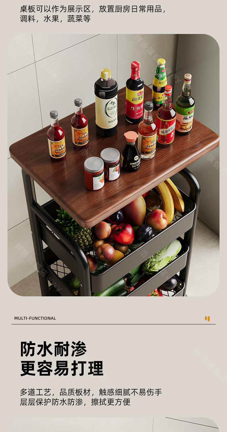 树浩移动置物架客厅多功能储物架厨房落地收纳手推车家用多层整理架子 双层【加厚升级款】碳钢置物篮-中古黑-刹车万向轮