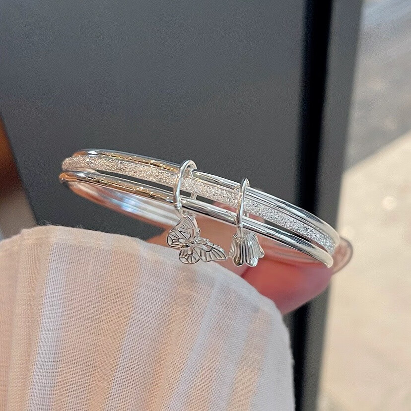 胖东来同款三生三世银手镯适用女s999银实心三圈手链送女朋友 三生三世蝴蝶+风铃 30克 56mm 体