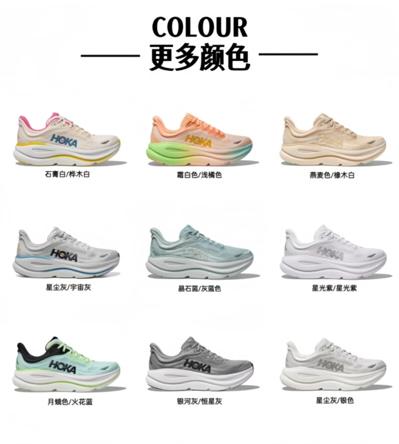 新款 BONDI 9 男女鞋邦代9轻盈缓震公路跑鞋 星尘灰/宇宙灰 45