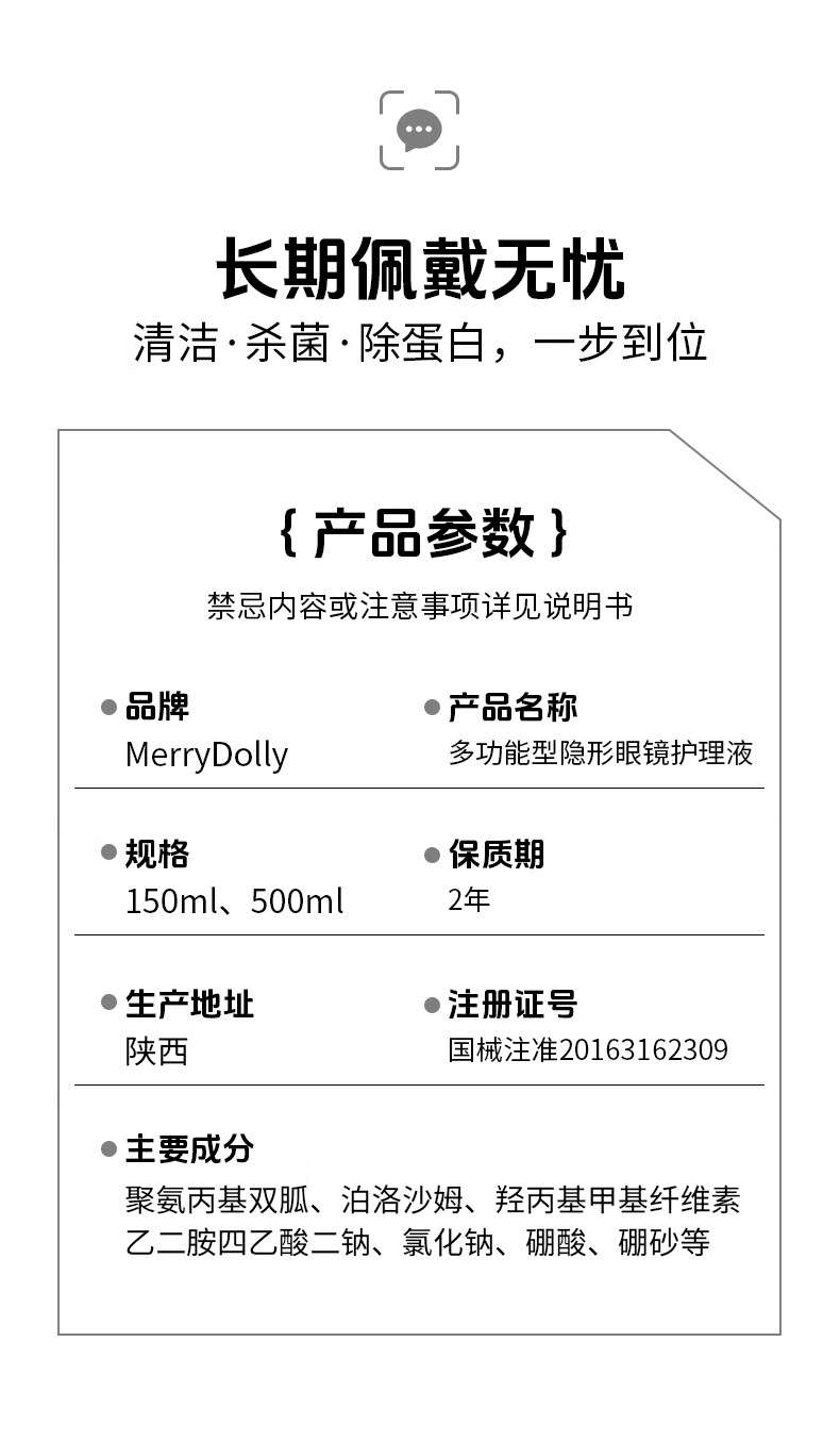 Merry dolly隐形眼镜美瞳护理液清洗液浸润保湿除蛋白水润温和不刺激 护理液500ml+150ml