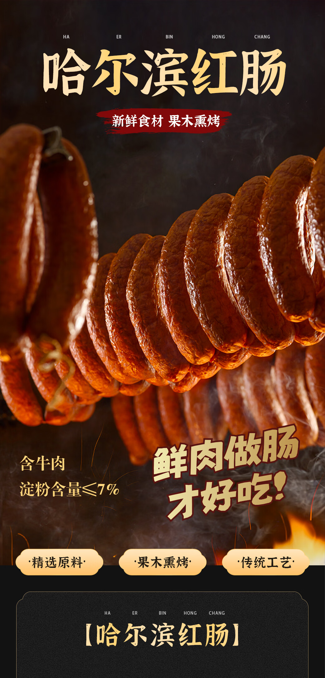 李万全李家猪蹄红肠哈尔滨红肠90g东北特产香肠开袋即食肉肠早餐烤肠下酒菜零食 【哈尔滨肠90g*10支】共900g(含牛肉)