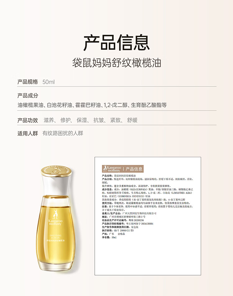 袋鼠妈妈橄榄油霜滋润按摩精华油舒缓改善纹路紧致修护保湿身体油护肤品 【明星同款爆品】橄榄油50ml
