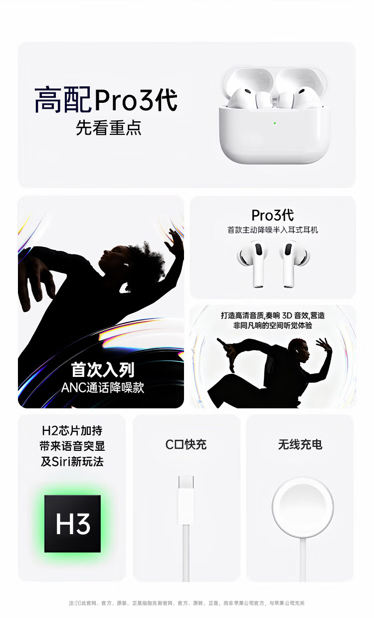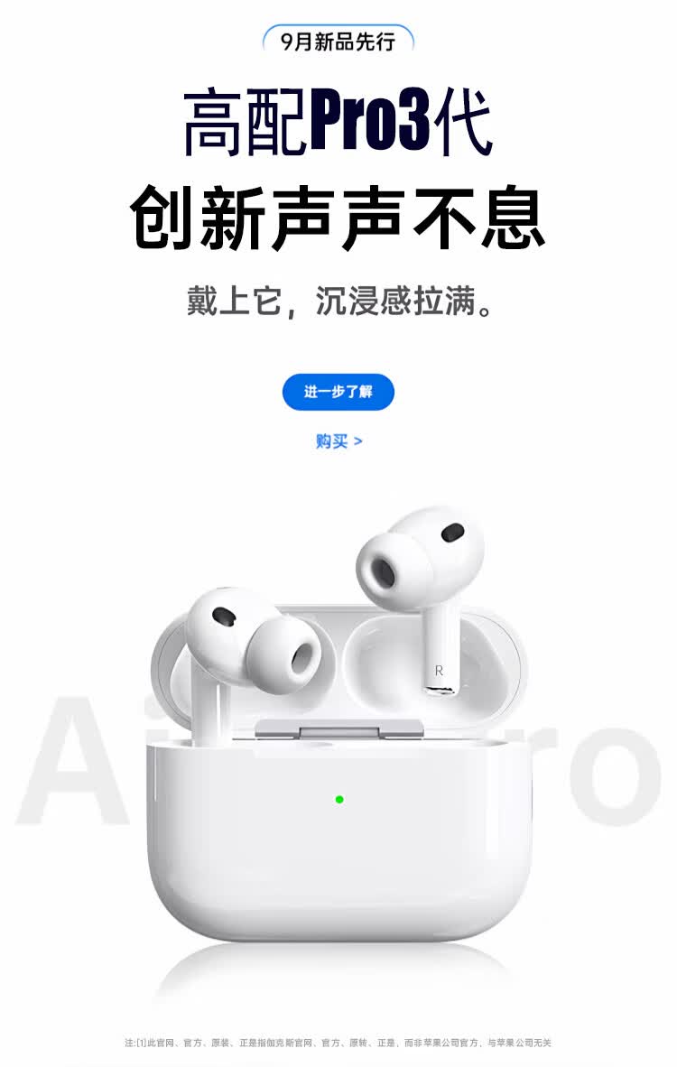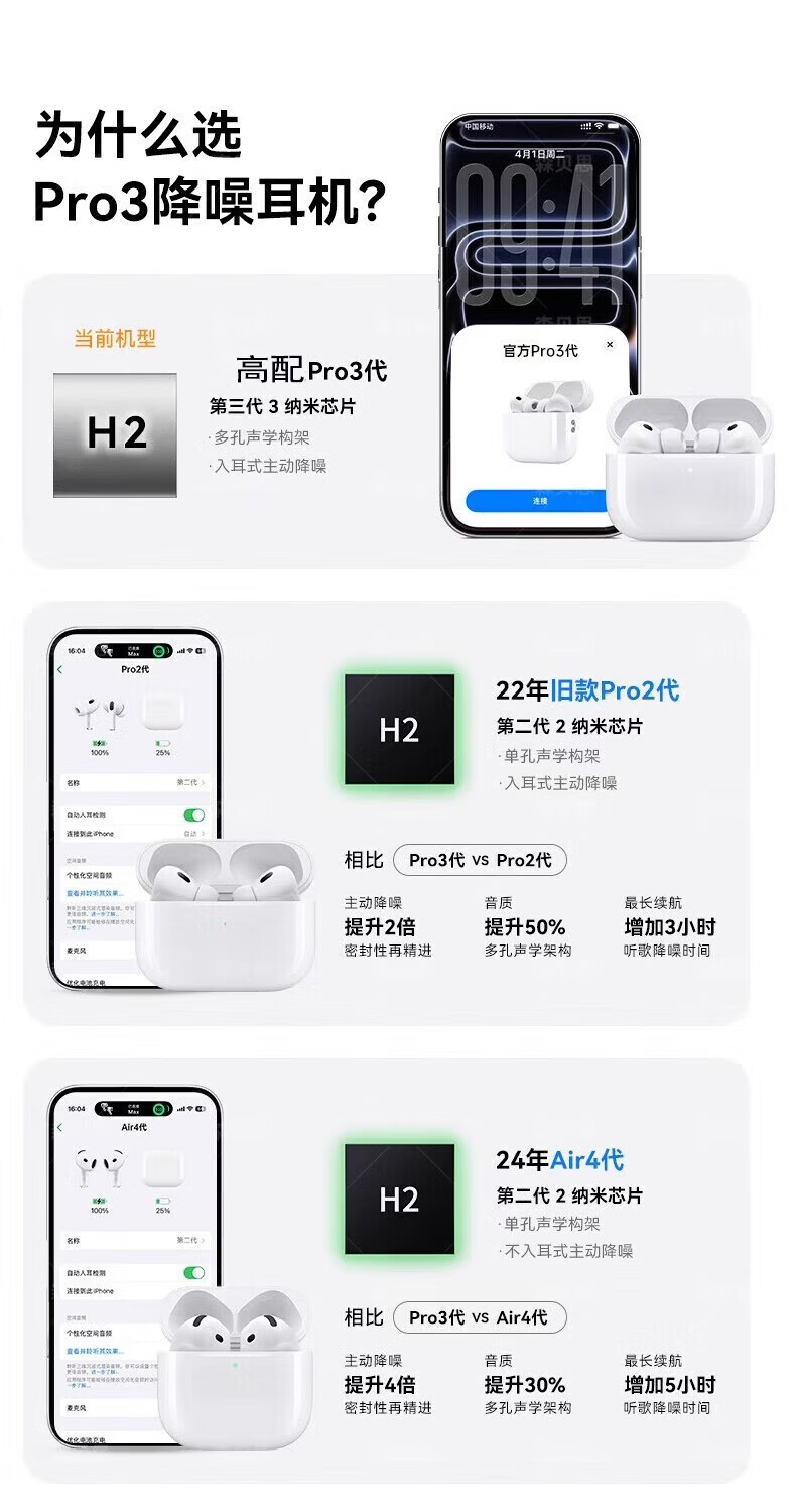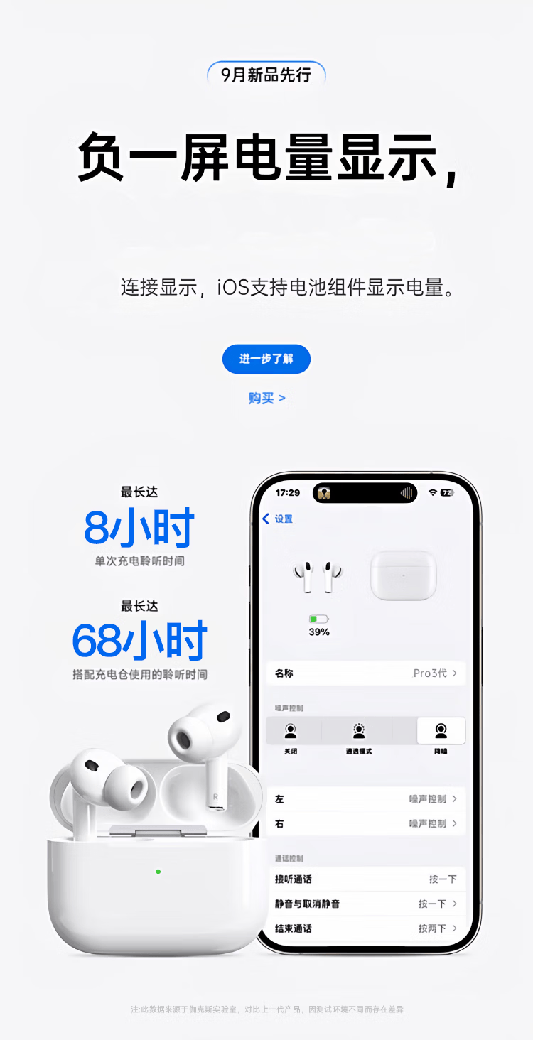 宾勋蓝牙耳机适配苹果无线2026新款入耳式主动降噪ios华强北金榜iPhone17苹果耳机airpods pro3 PRO3白色蓝牙耳机