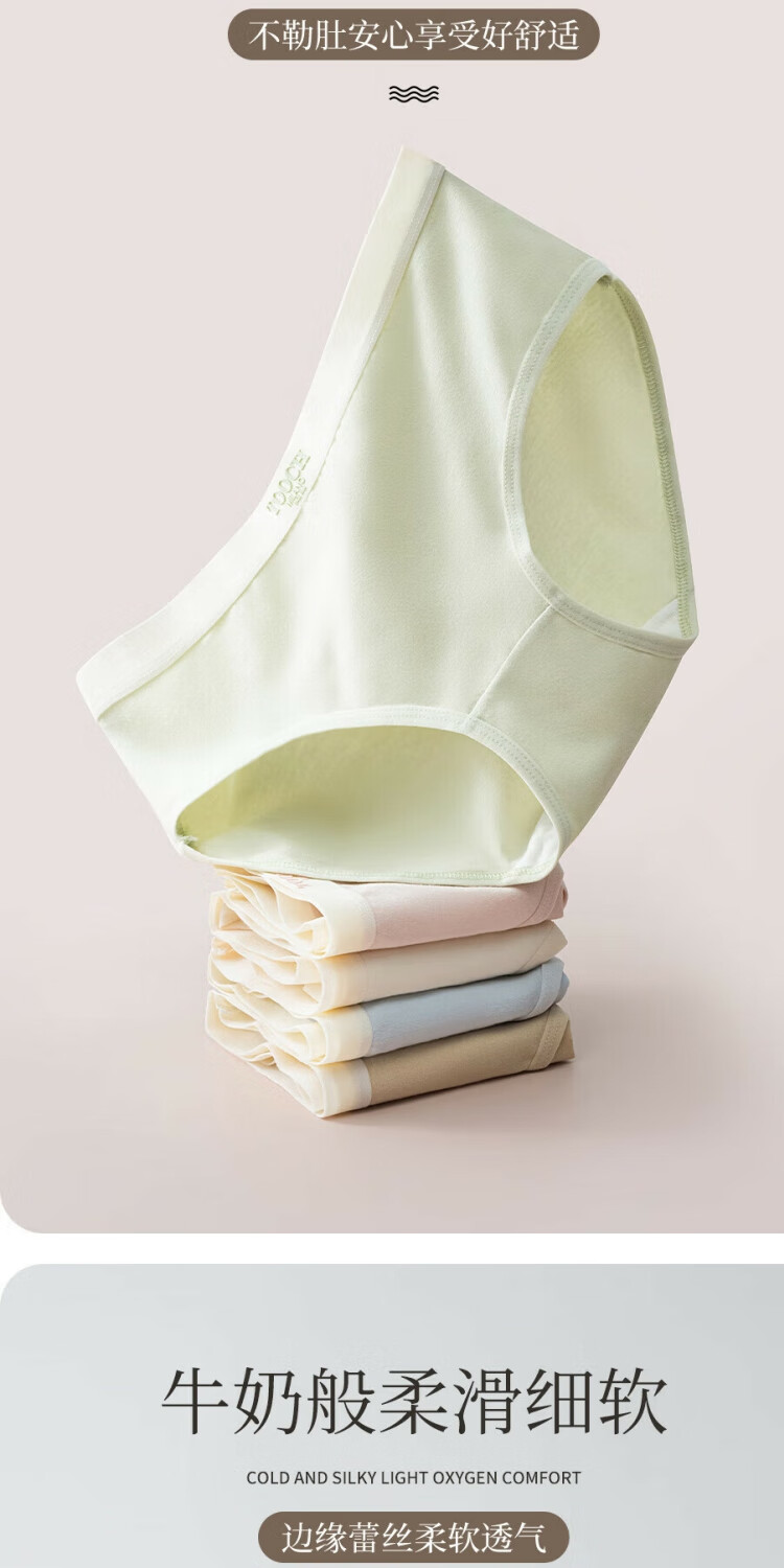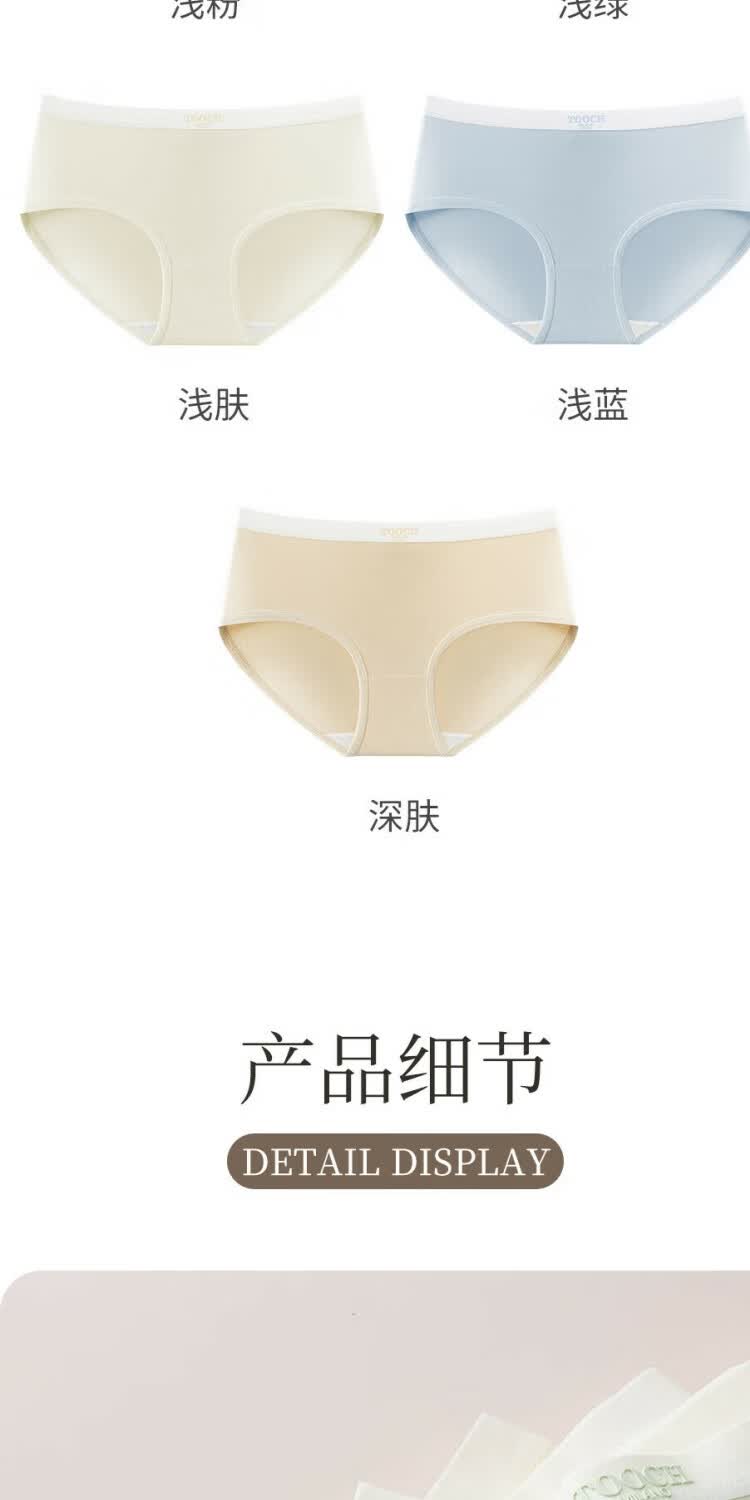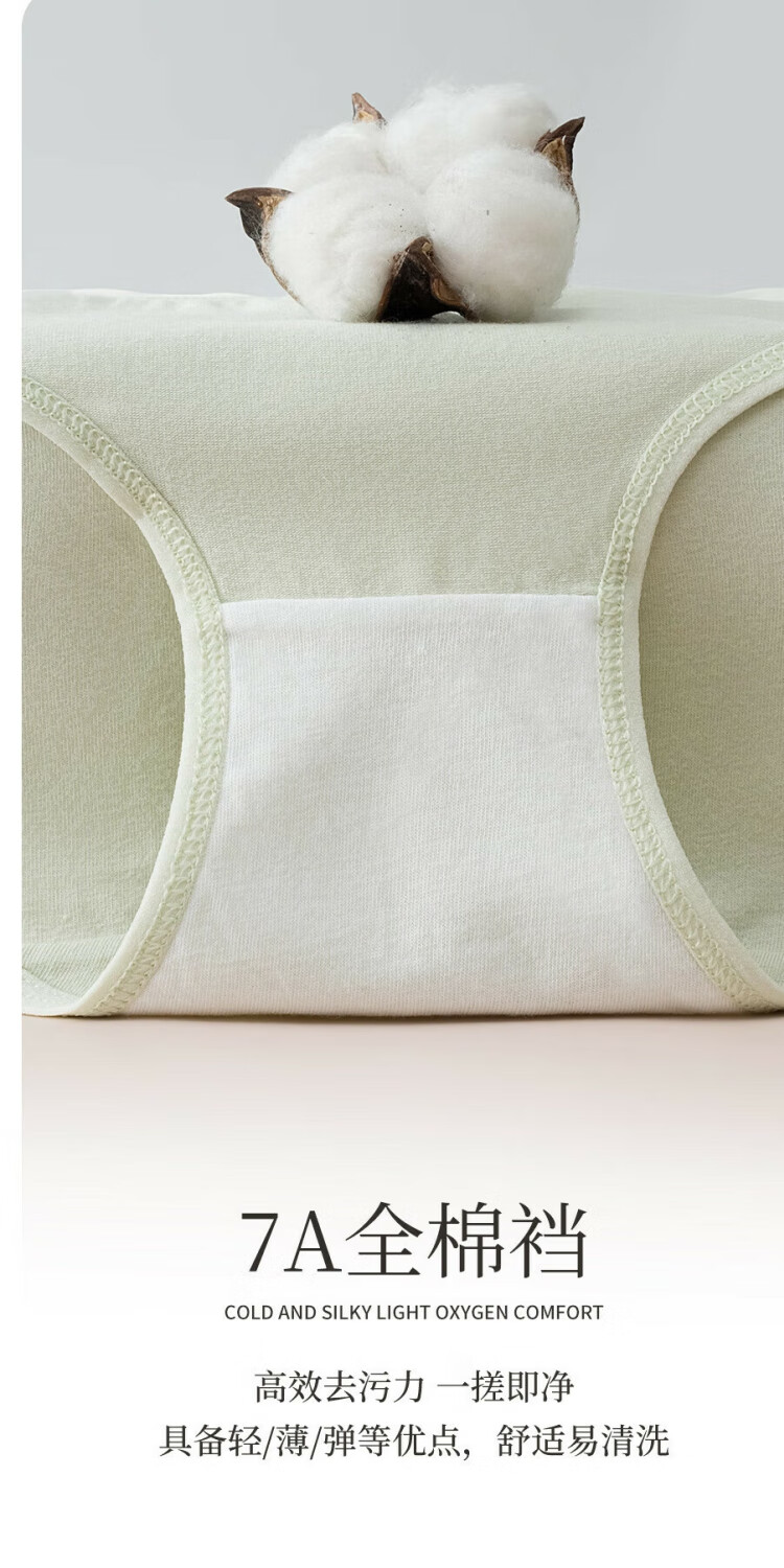 宜而爽7A抗菌全棉女士内裤字母中腰抗菌柔软舒适透气纯棉少女三角裤 2浅绿+2浅肤+2深肤+1浅粉 7条 L