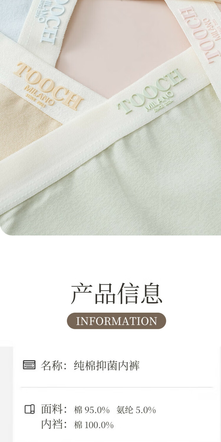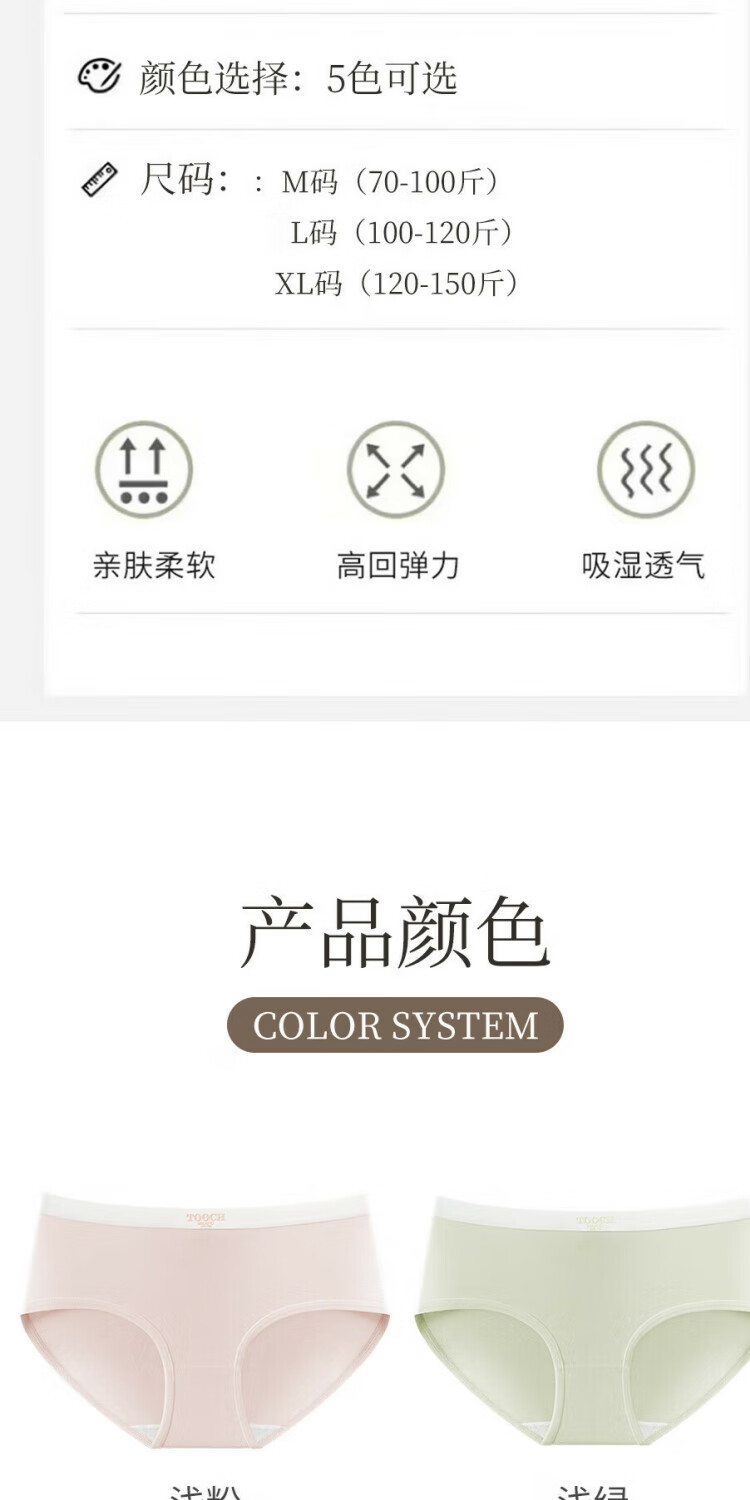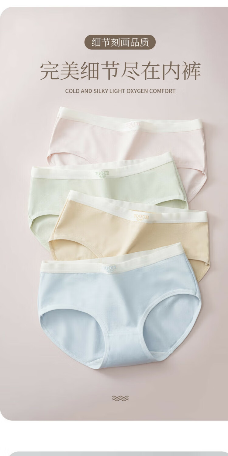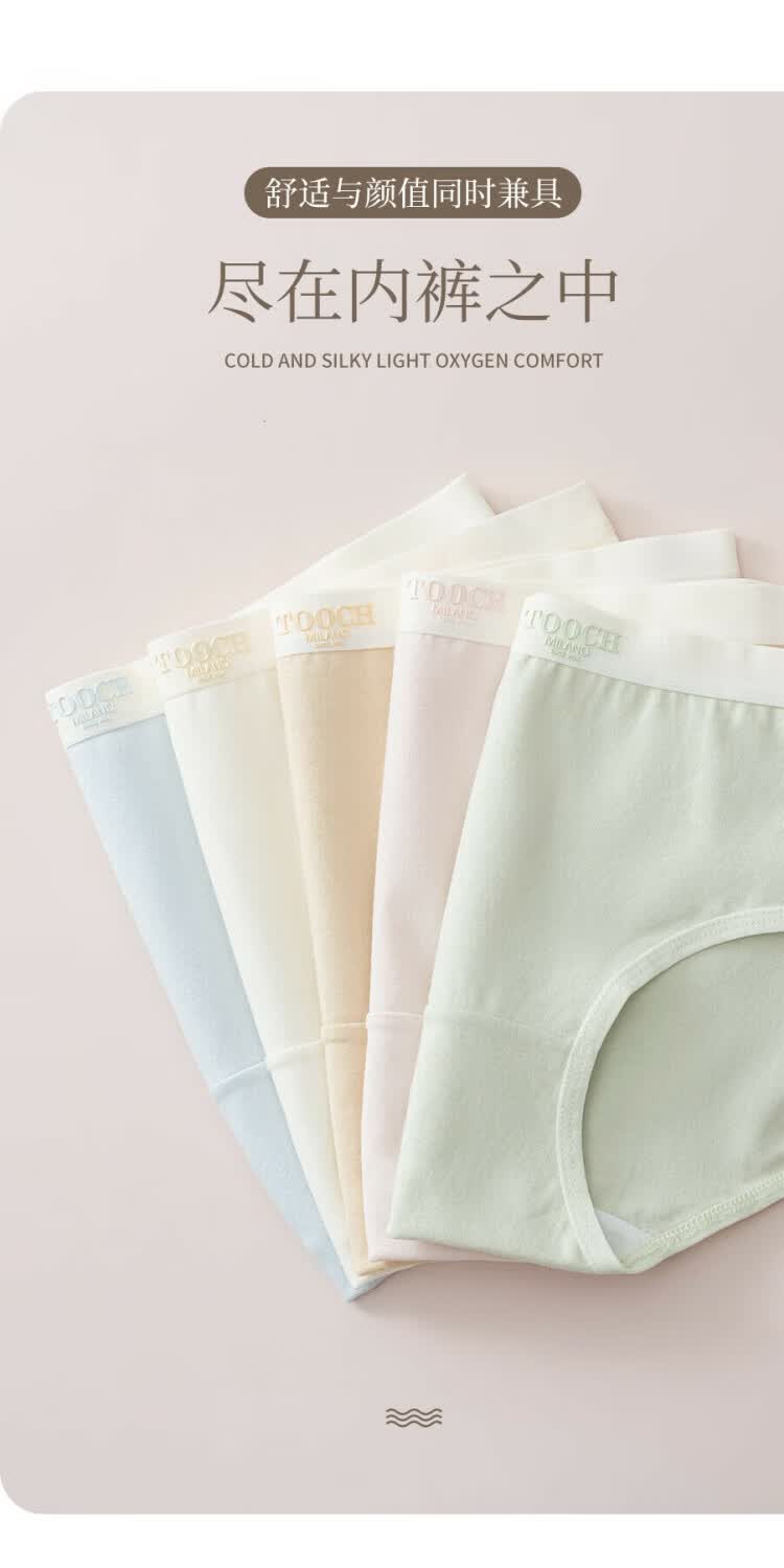 宜而爽7A抗菌全棉女士内裤字母中腰抗菌柔软舒适透气纯棉少女三角裤 2浅绿+2浅肤+2深肤+1浅粉 7条 L