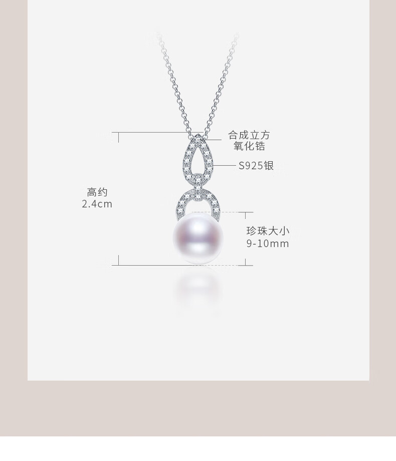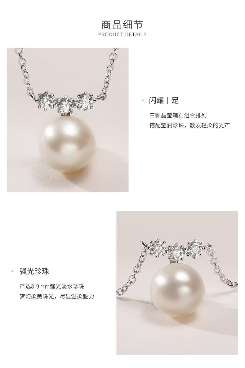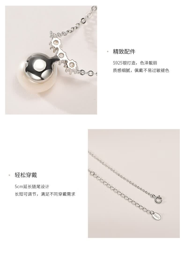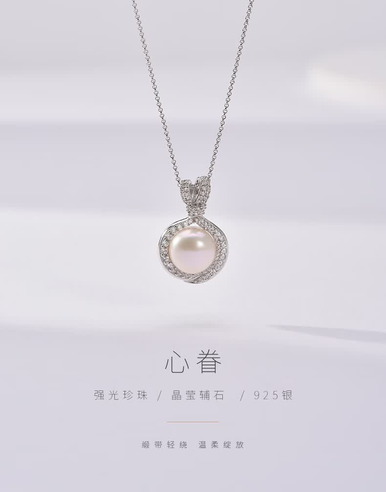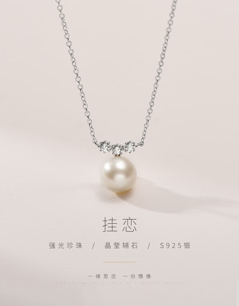 京润珍珠吊坠挂恋925银强光8-9mm淡水珍珠吊链项链自戴母亲节礼物 【挂恋】8-9mm40+5cm
