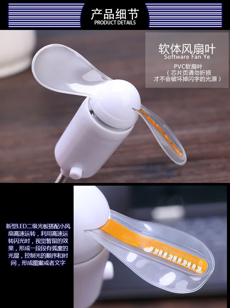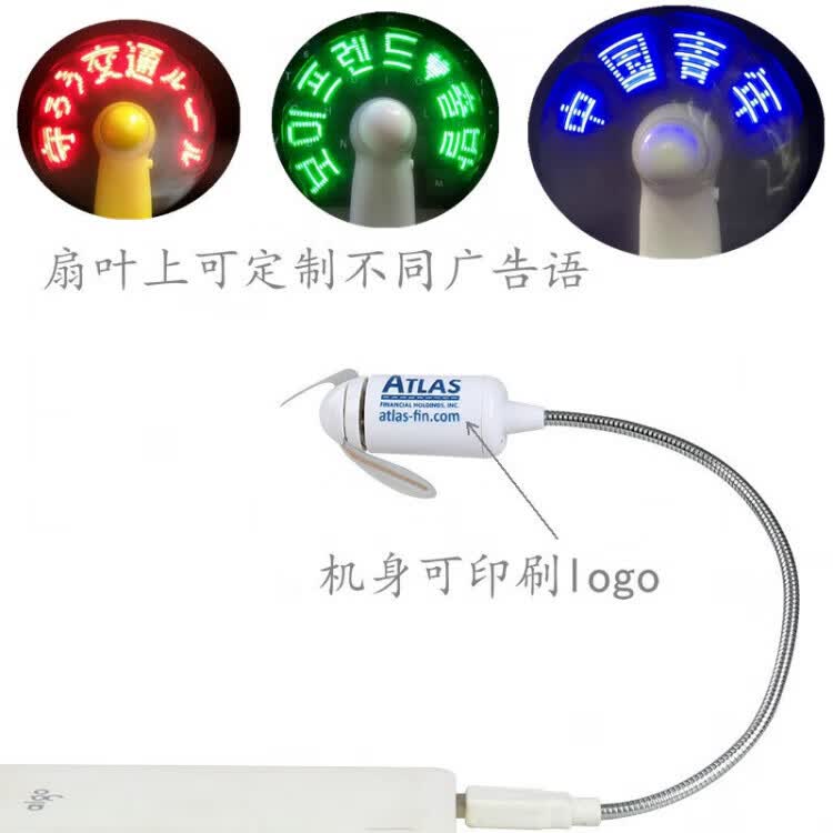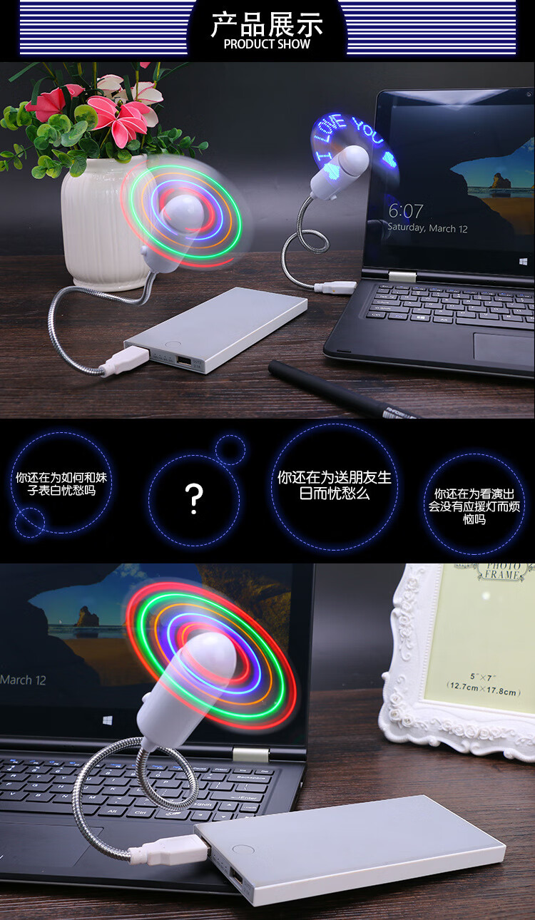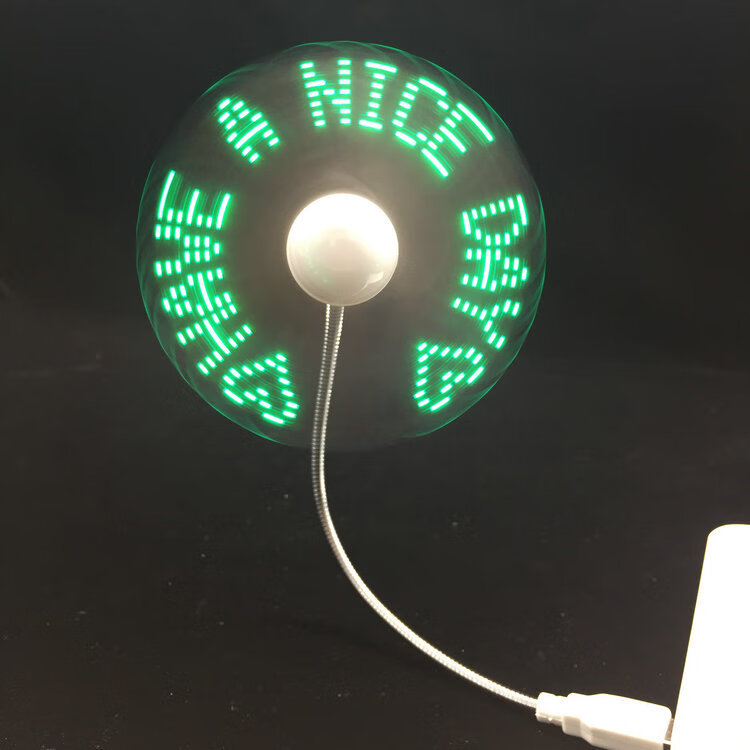 铭汇通全息风扇USB直插仿时间闪字LED七彩电风扇仿时钟家用办公室桌面迷你电脑小风扇定制创意礼品扇 裸眼3d全息风扇 3.5*3.5*33cm
