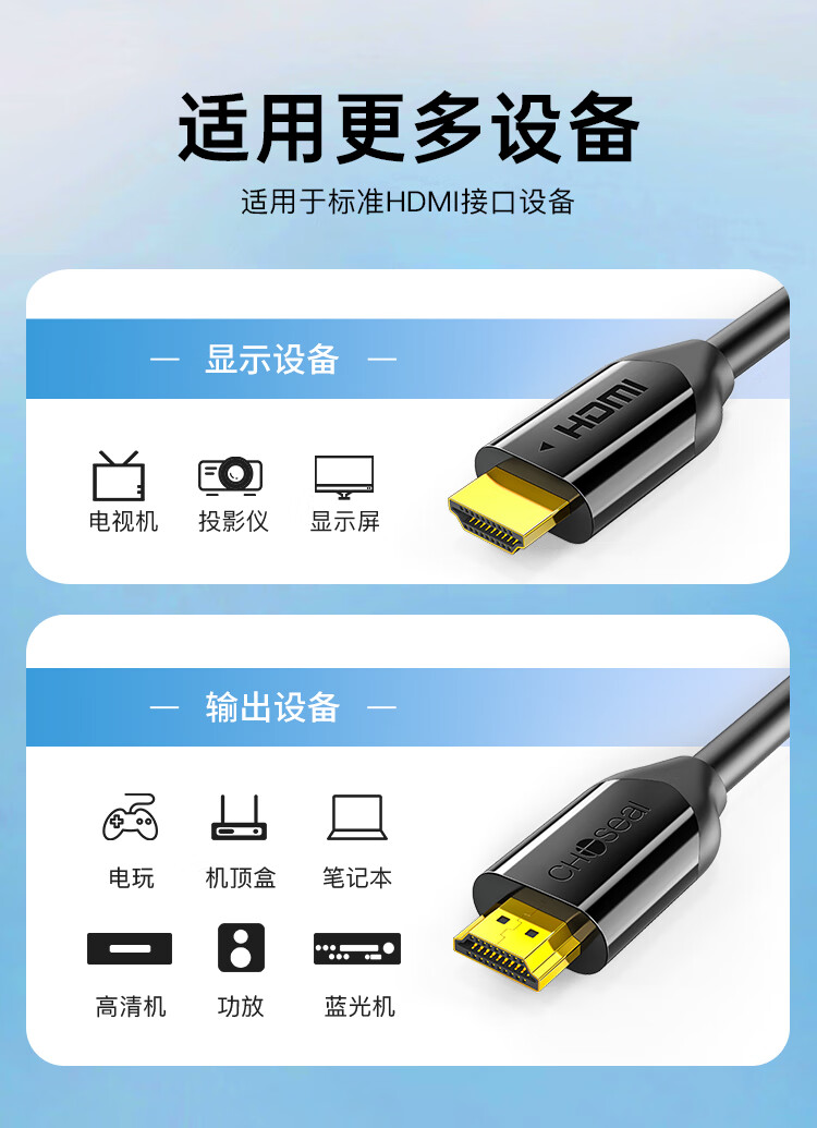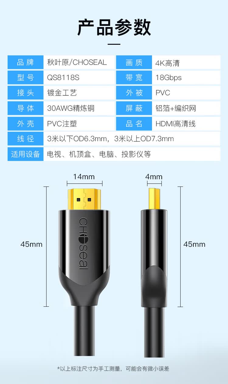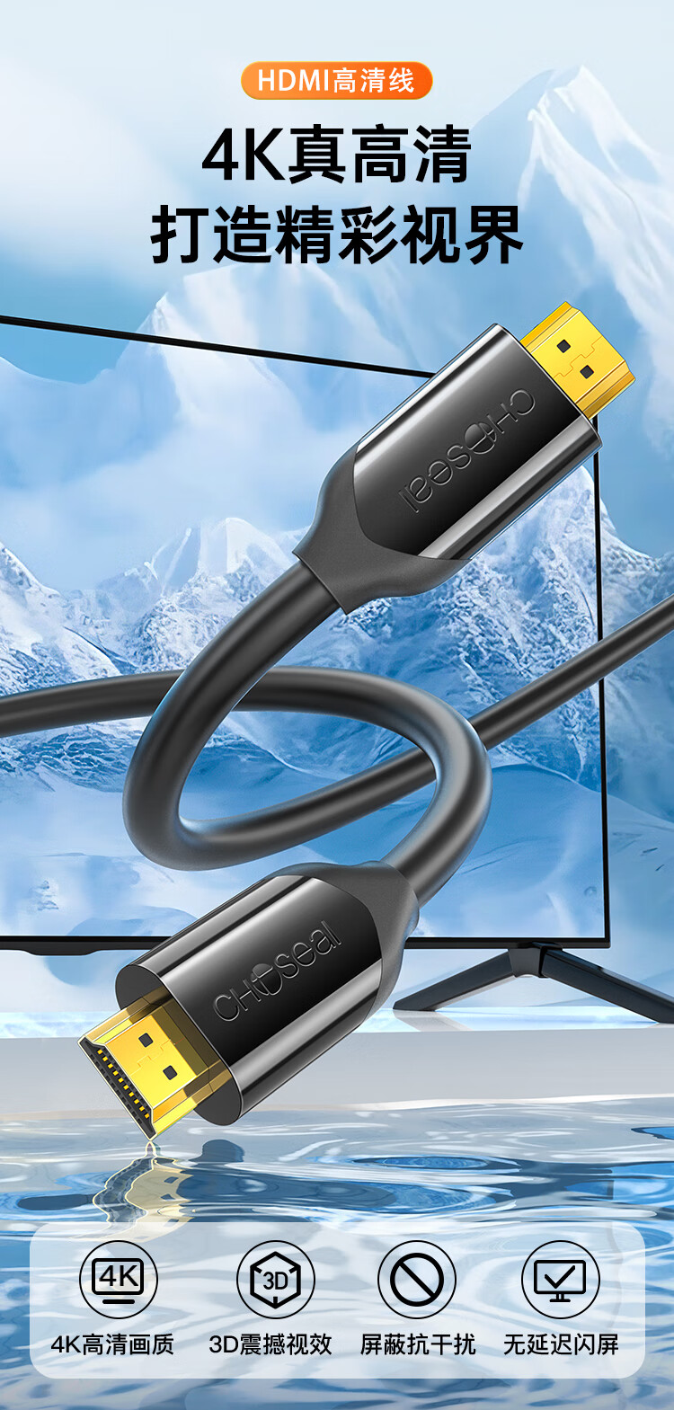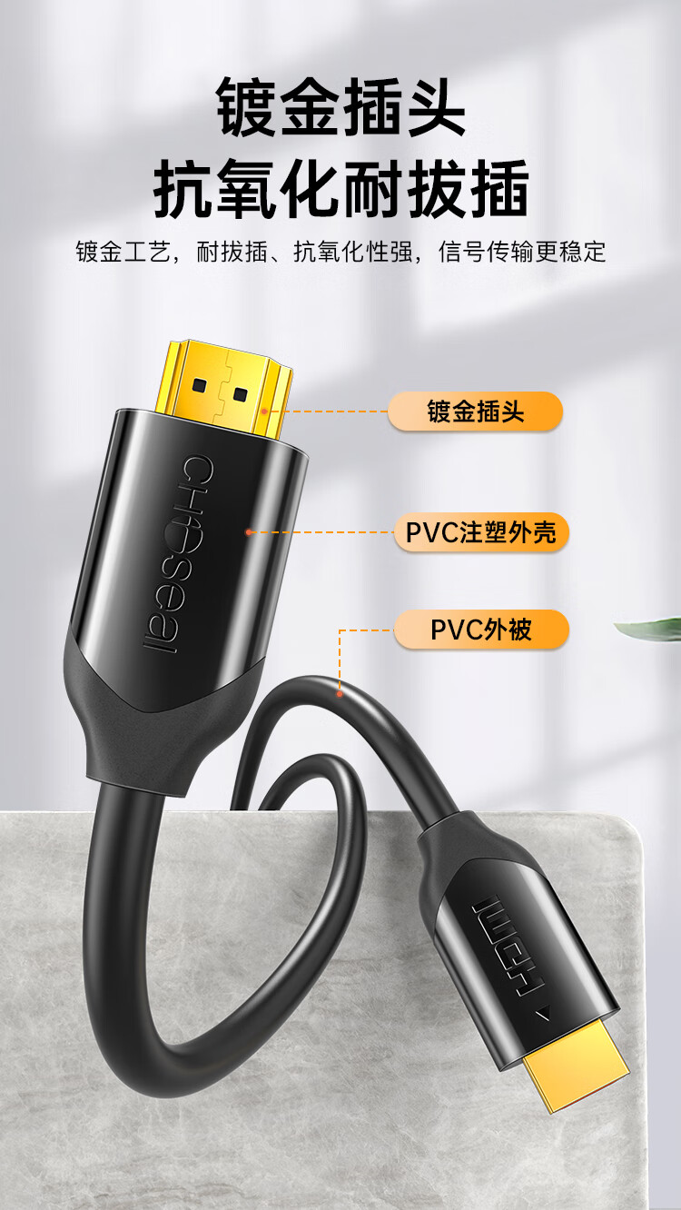 秋叶原(CHOSEAL) HDMI线4k60Hz数字高清线 工程线3D视频线 笔记本电脑电视机顶盒投影仪显示连接线1.5米 QS8118S