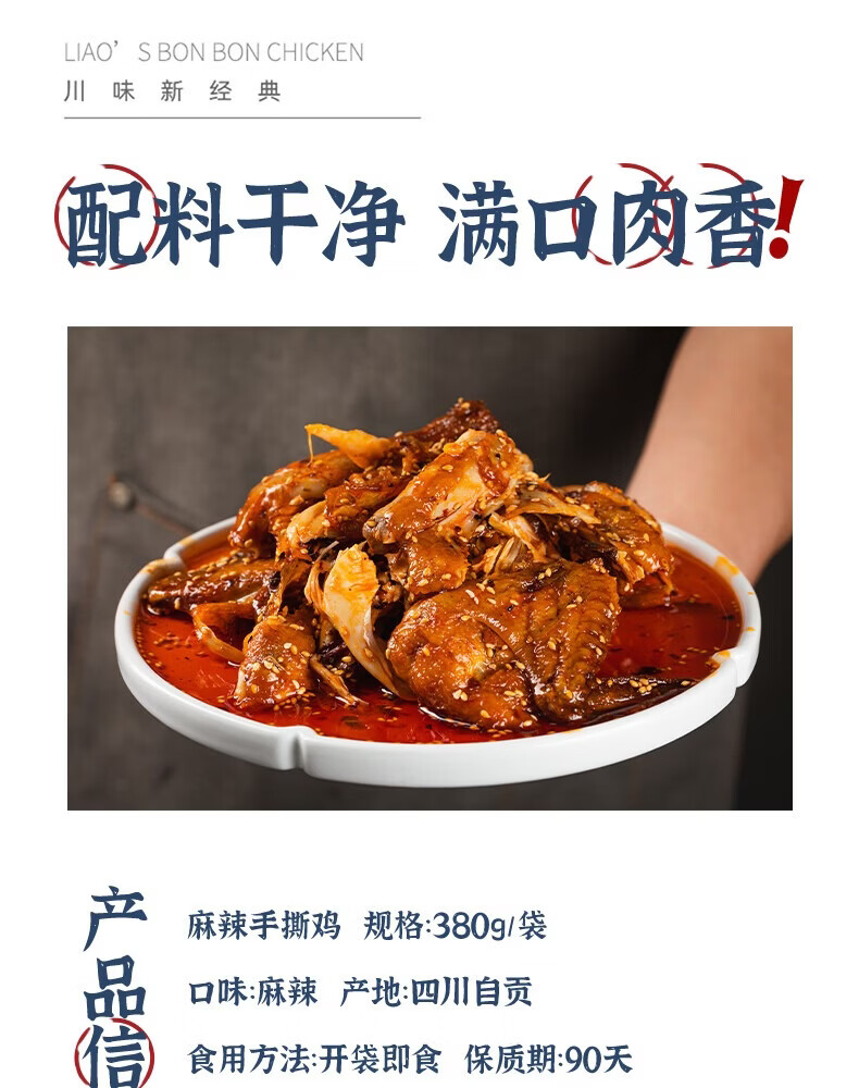 廖记棒棒鸡麻辣手撕鸡380g整只四川特产鸡肉零食开袋即食追剧解馋 香辣手撕鸡380g*1袋