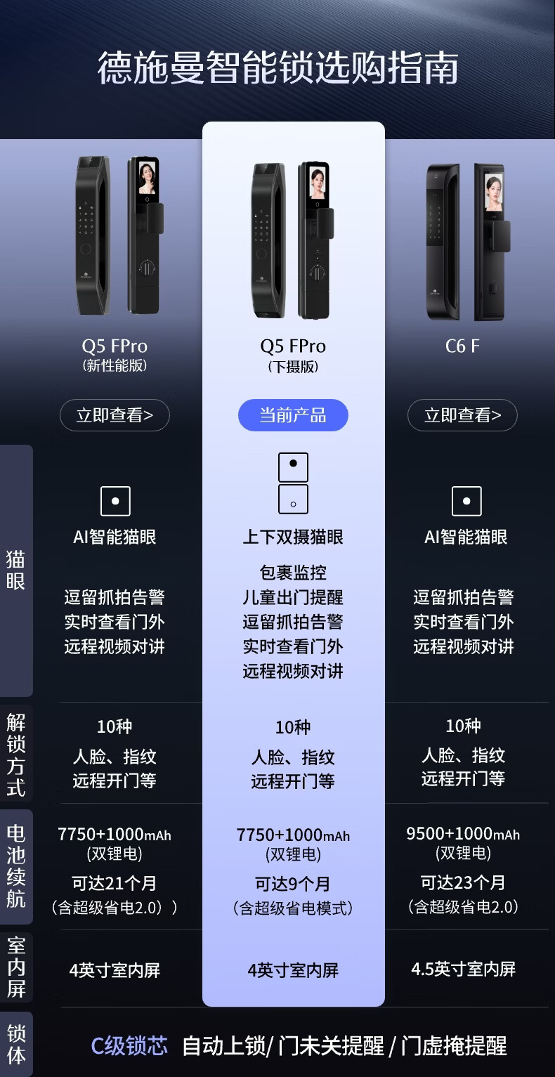 德施曼(DESMAN)智能门锁人脸下摄猫眼大屏指纹电子密码锁大圣 Q5FPro(下摄版) Q5FPro下摄版