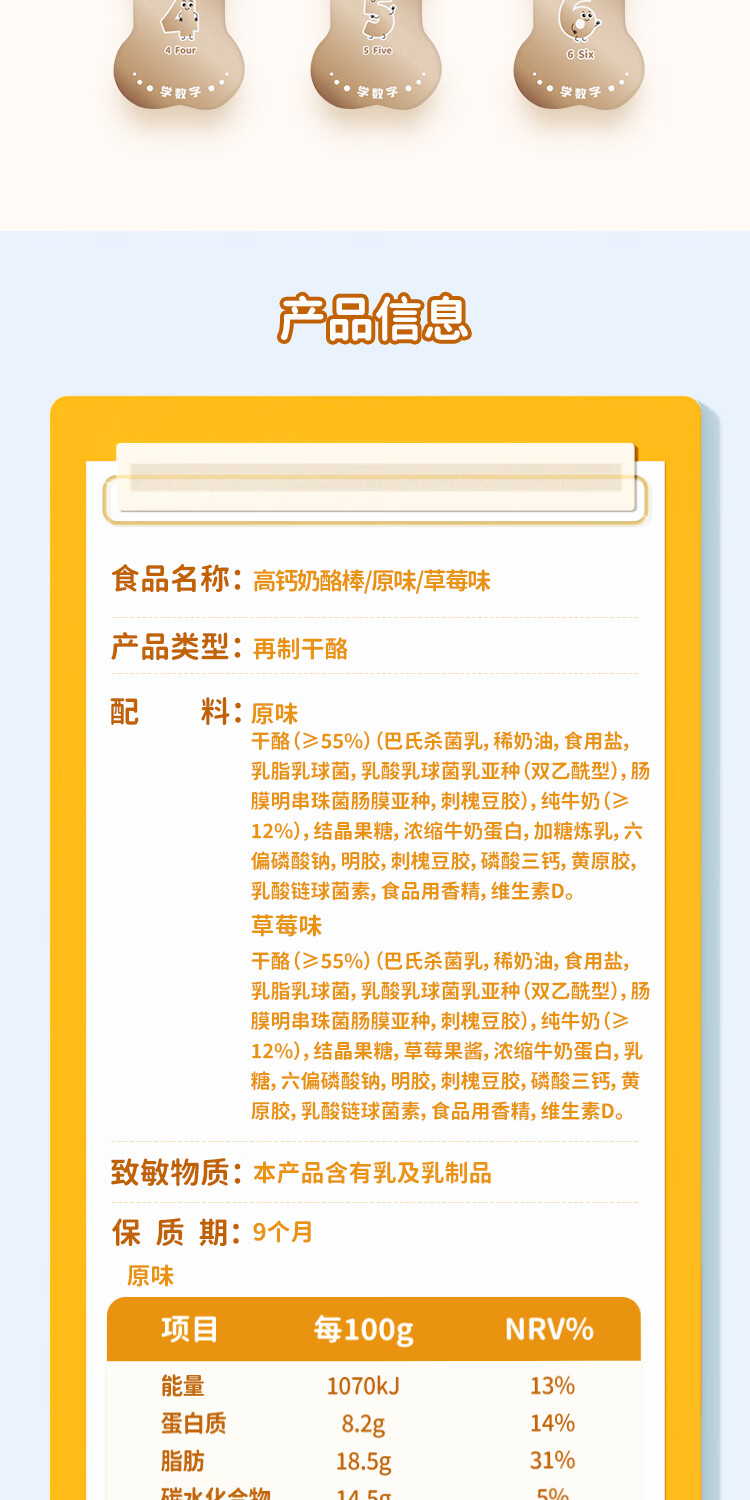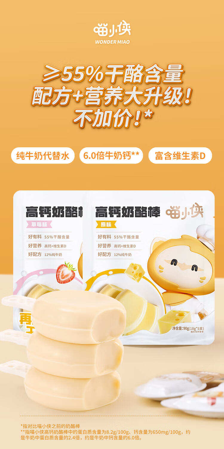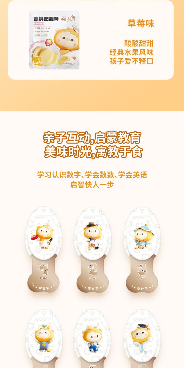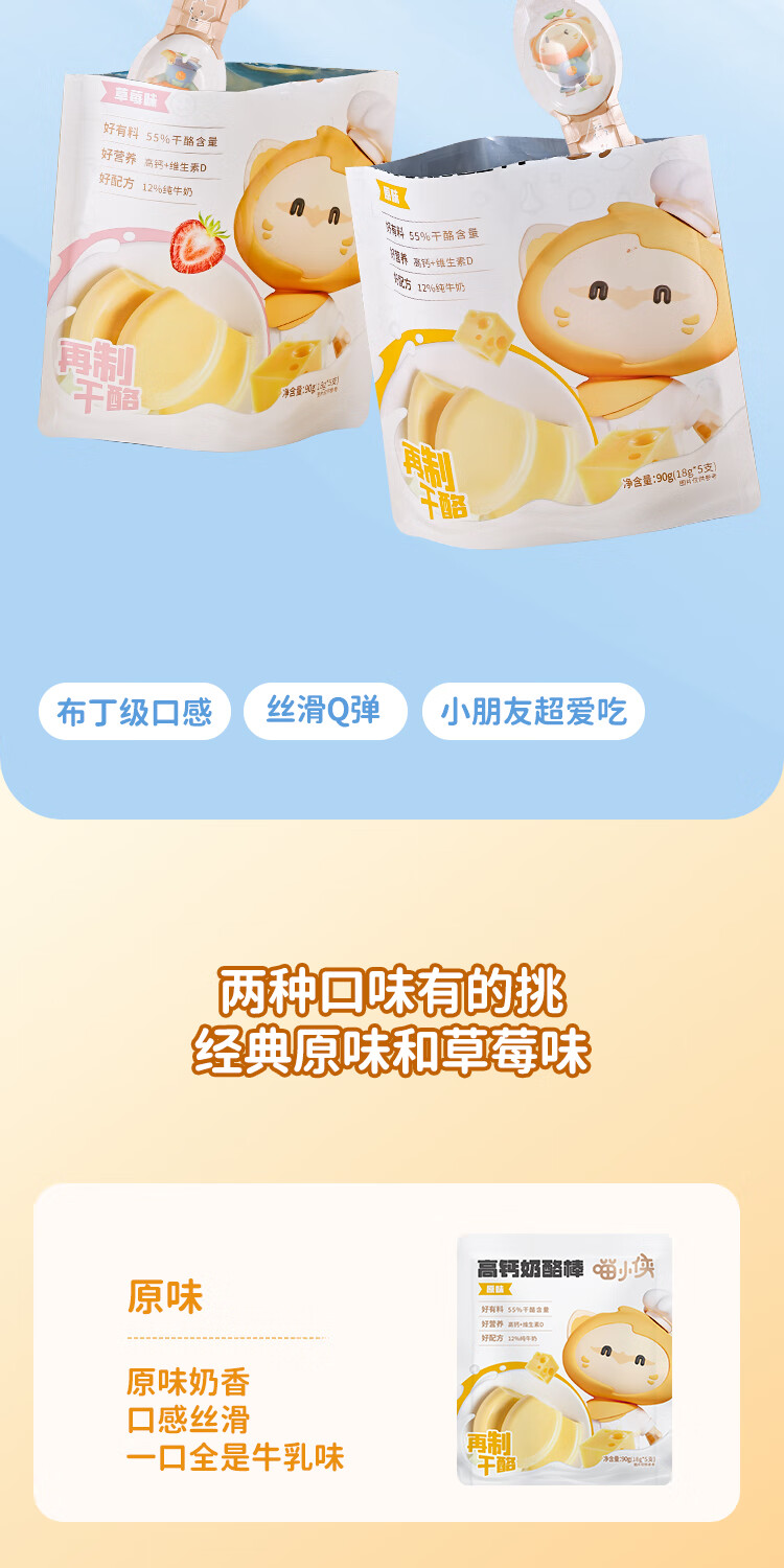 喵小侠常温奶酪棒草莓味90g 宝宝零食营养再制干奶酪高钙独立包装