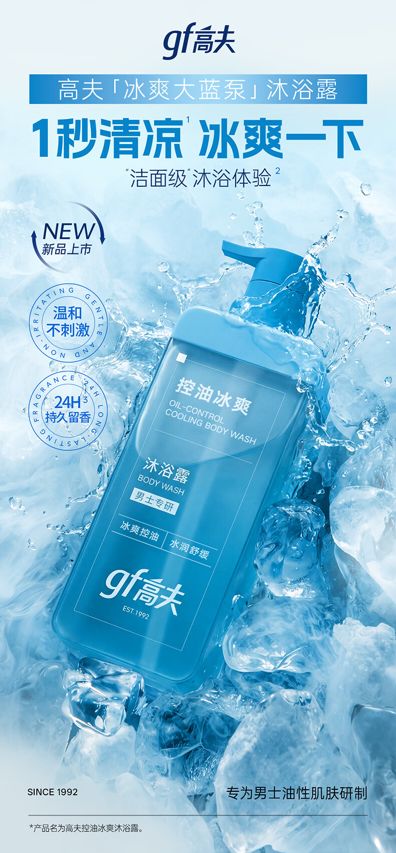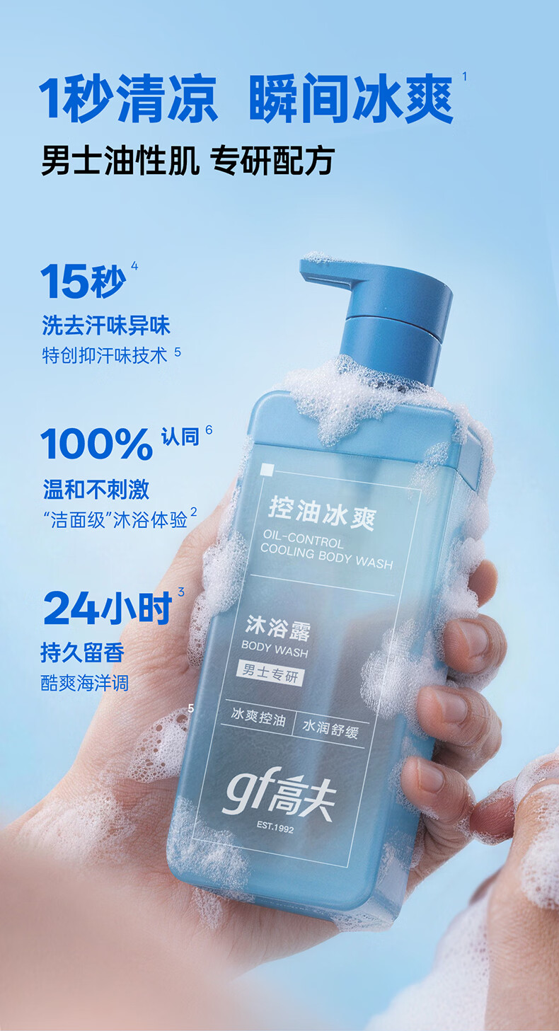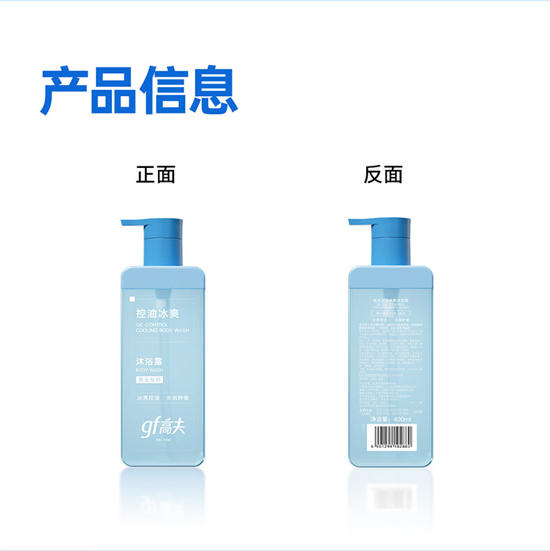 高夫(gf)控油冰爽沐浴露400ml面护级男士沐浴露清爽净澈留香送男友