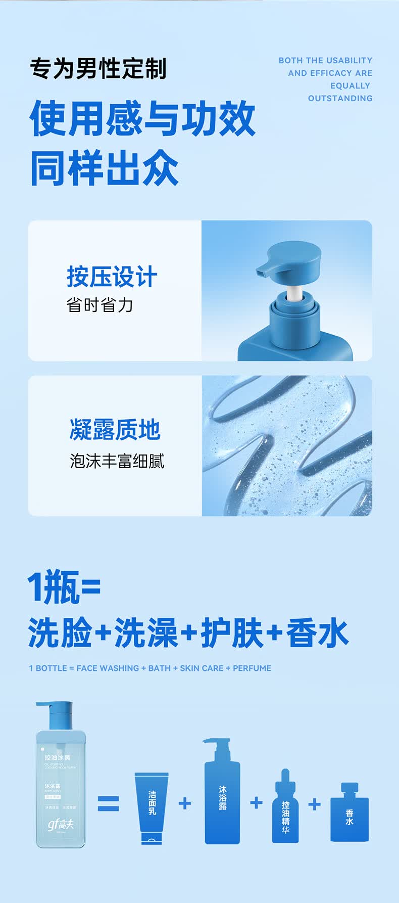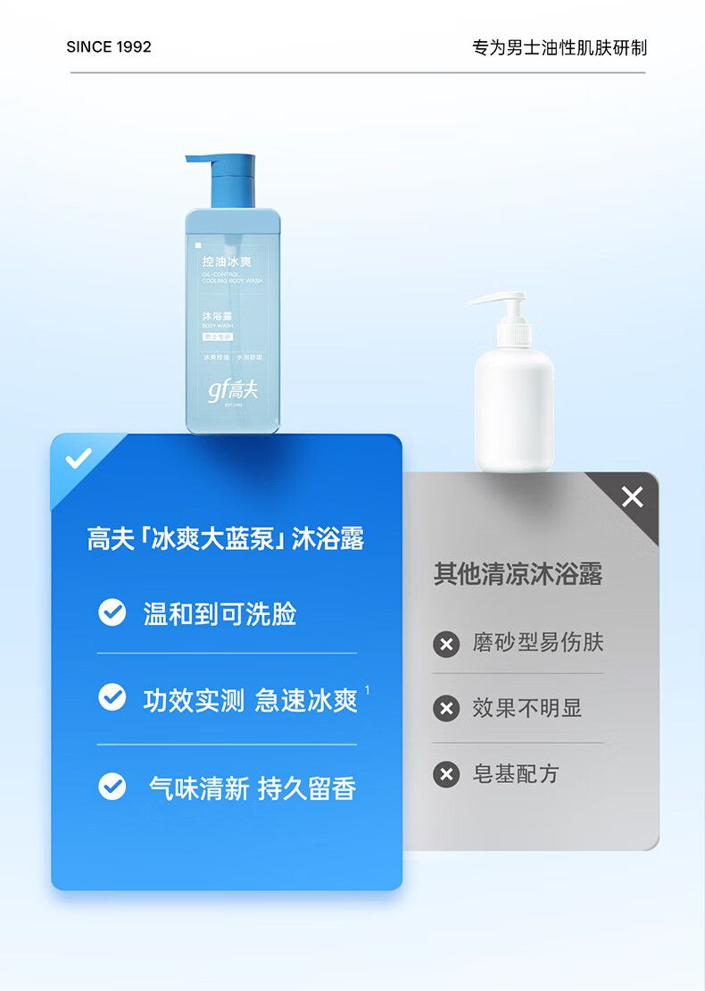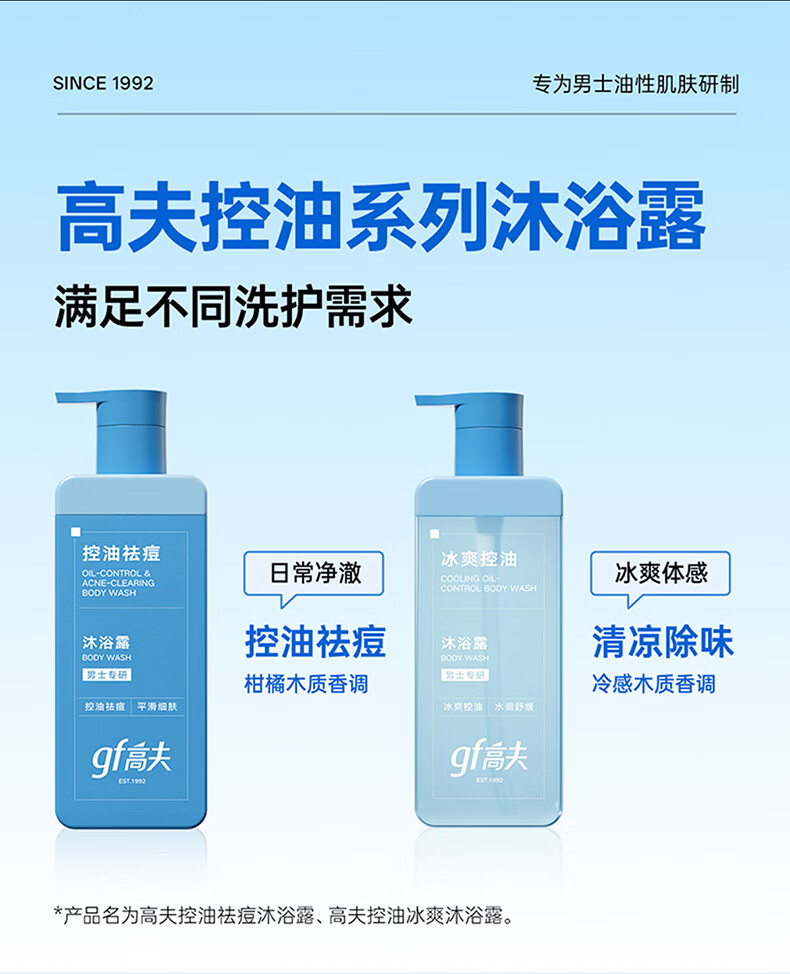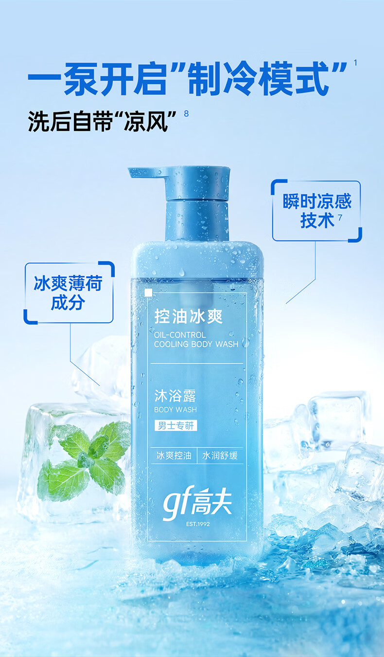 高夫(gf)控油冰爽沐浴露400ml面护级男士沐浴露清爽净澈留香送男友