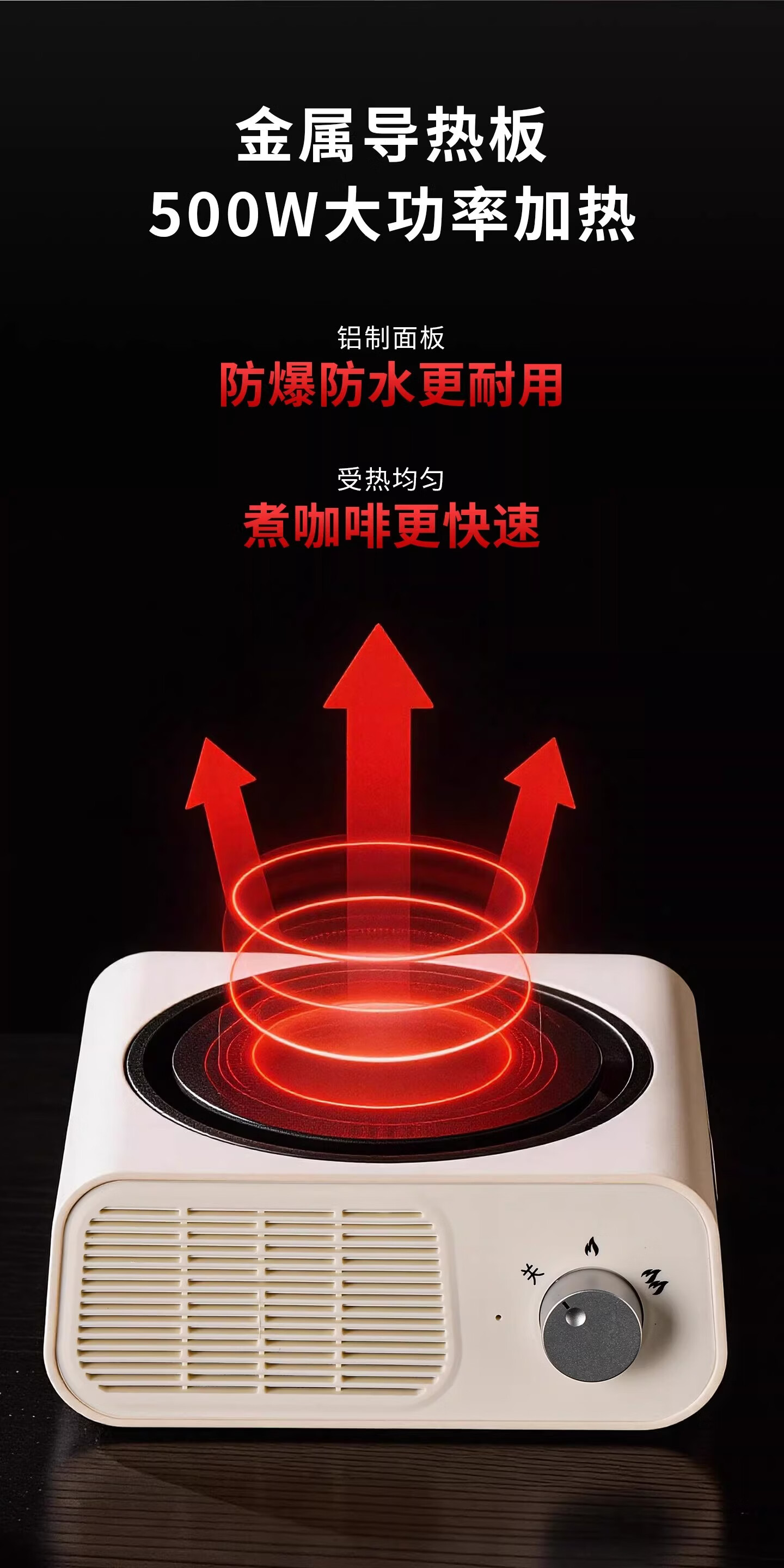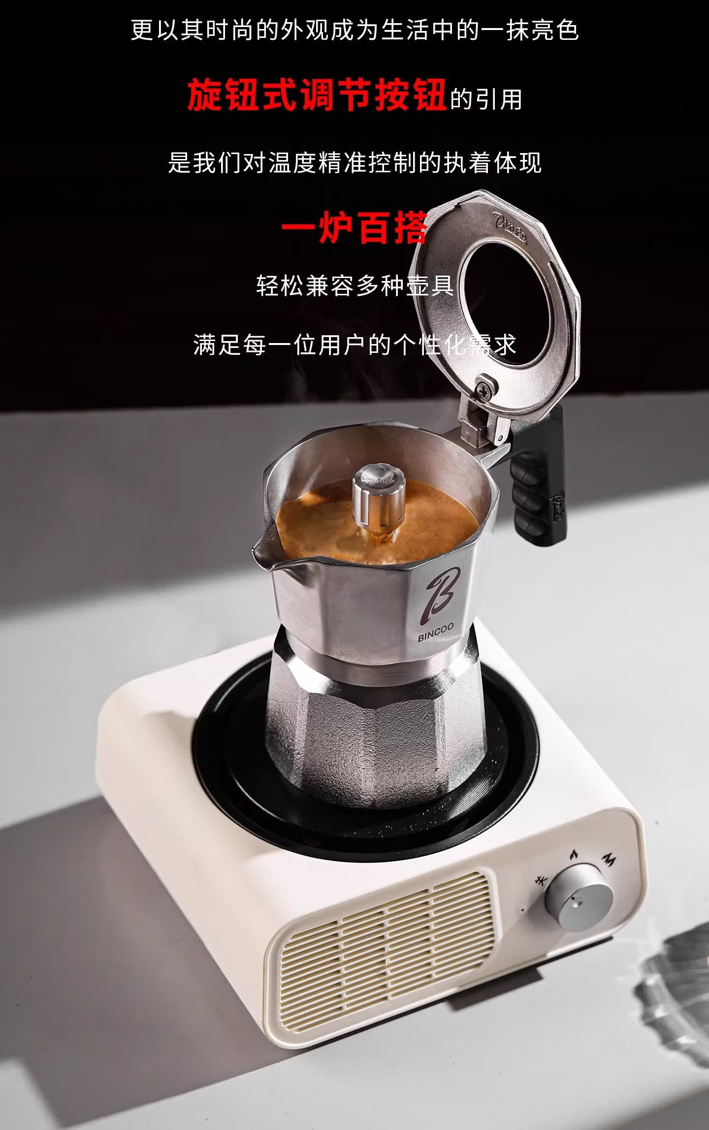 Bincoo摩卡壶电热炉小型煮咖啡家用摩卡壶加热底座烧水壶配套器具 电热炉500W-白色