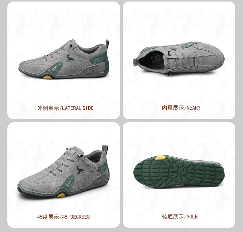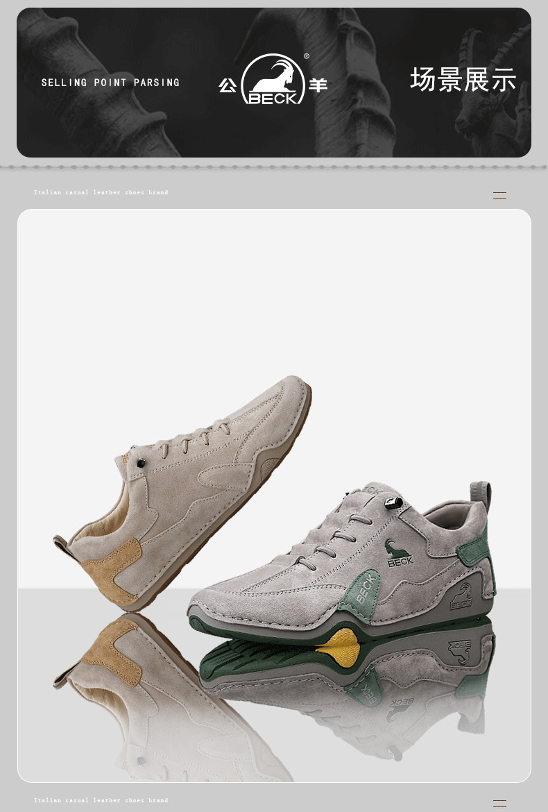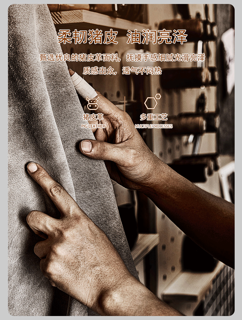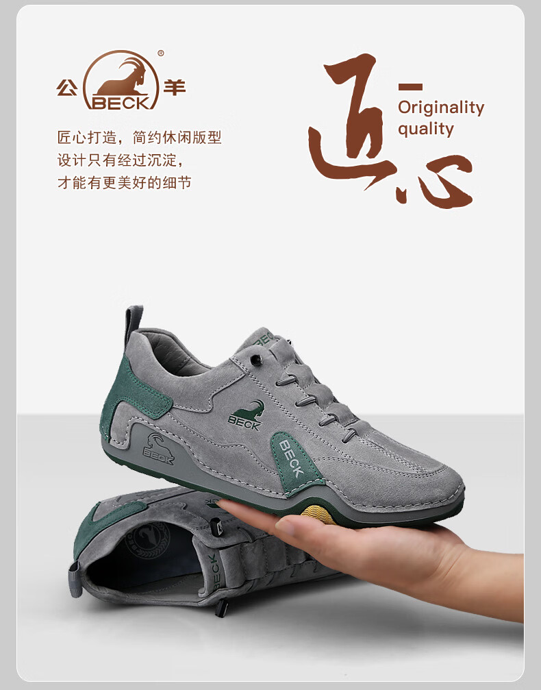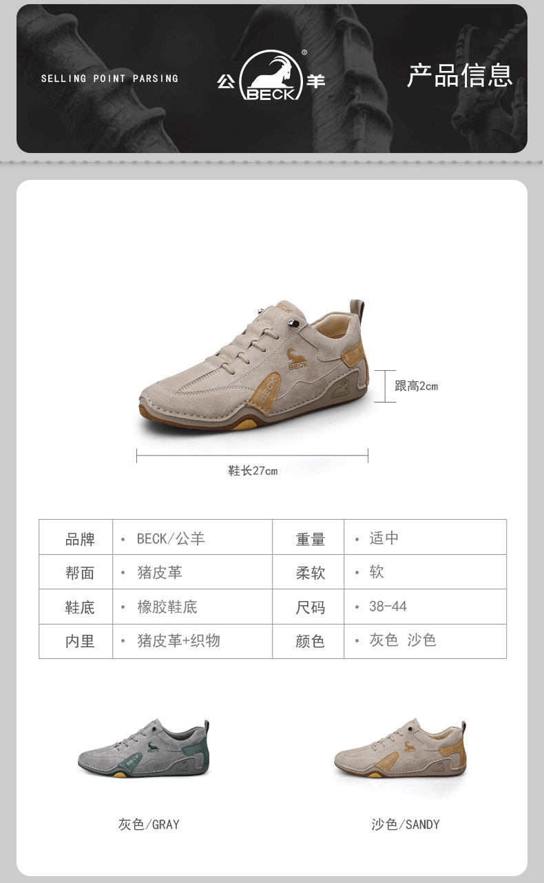 公羊世家男鞋2026春夏季新款百搭复古真皮透气板鞋男一脚蹬休闲鞋子男款 灰色 43