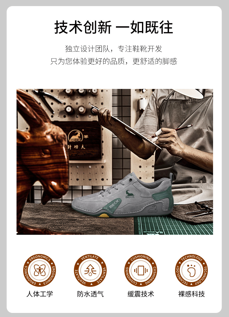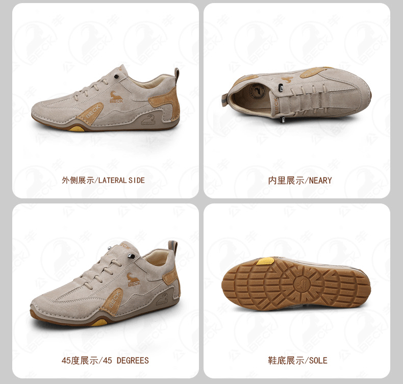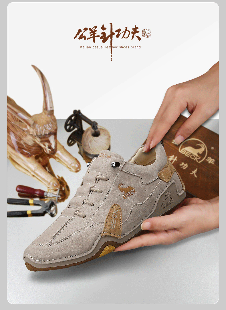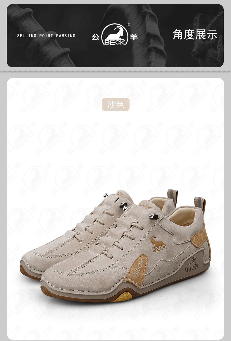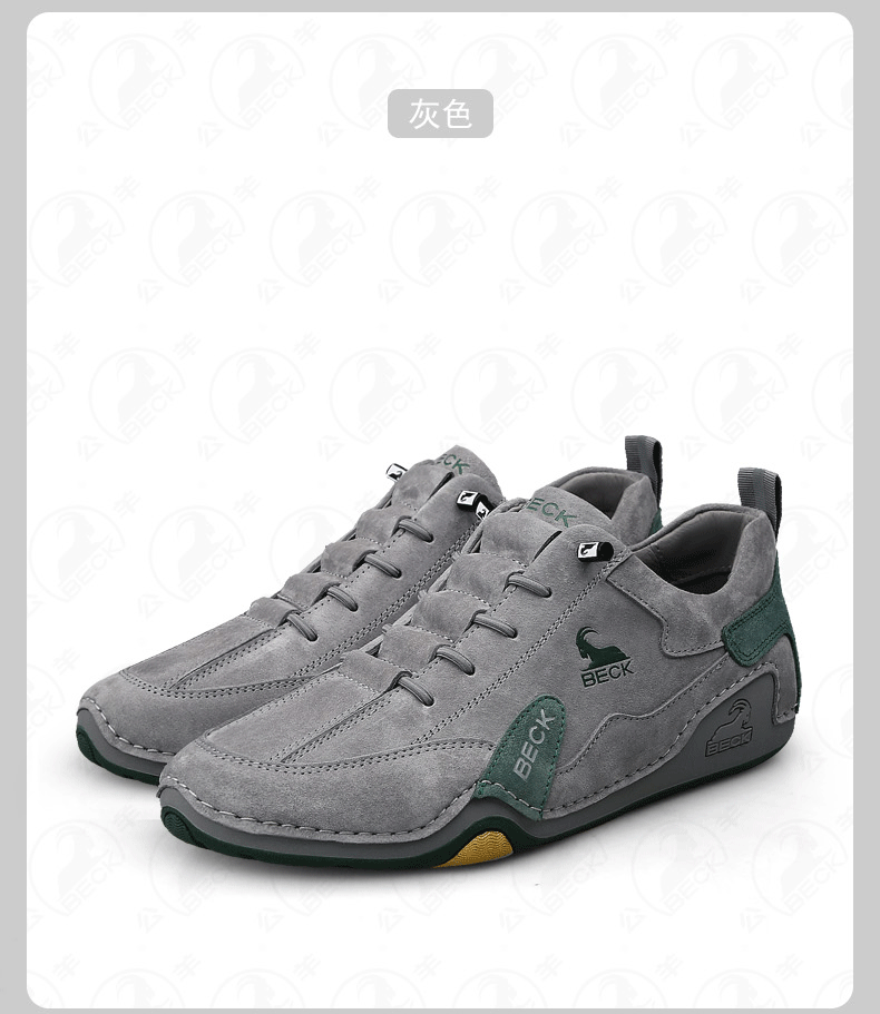 公羊世家男鞋2026春夏季新款百搭复古真皮透气板鞋男一脚蹬休闲鞋子男款 灰色 43