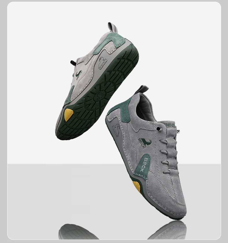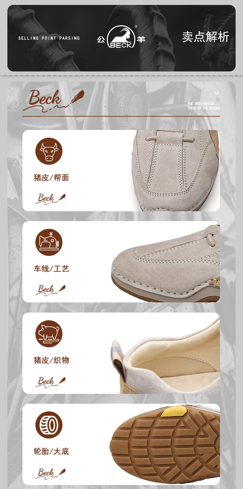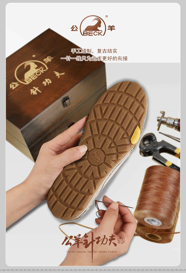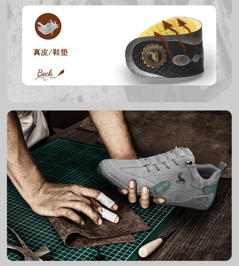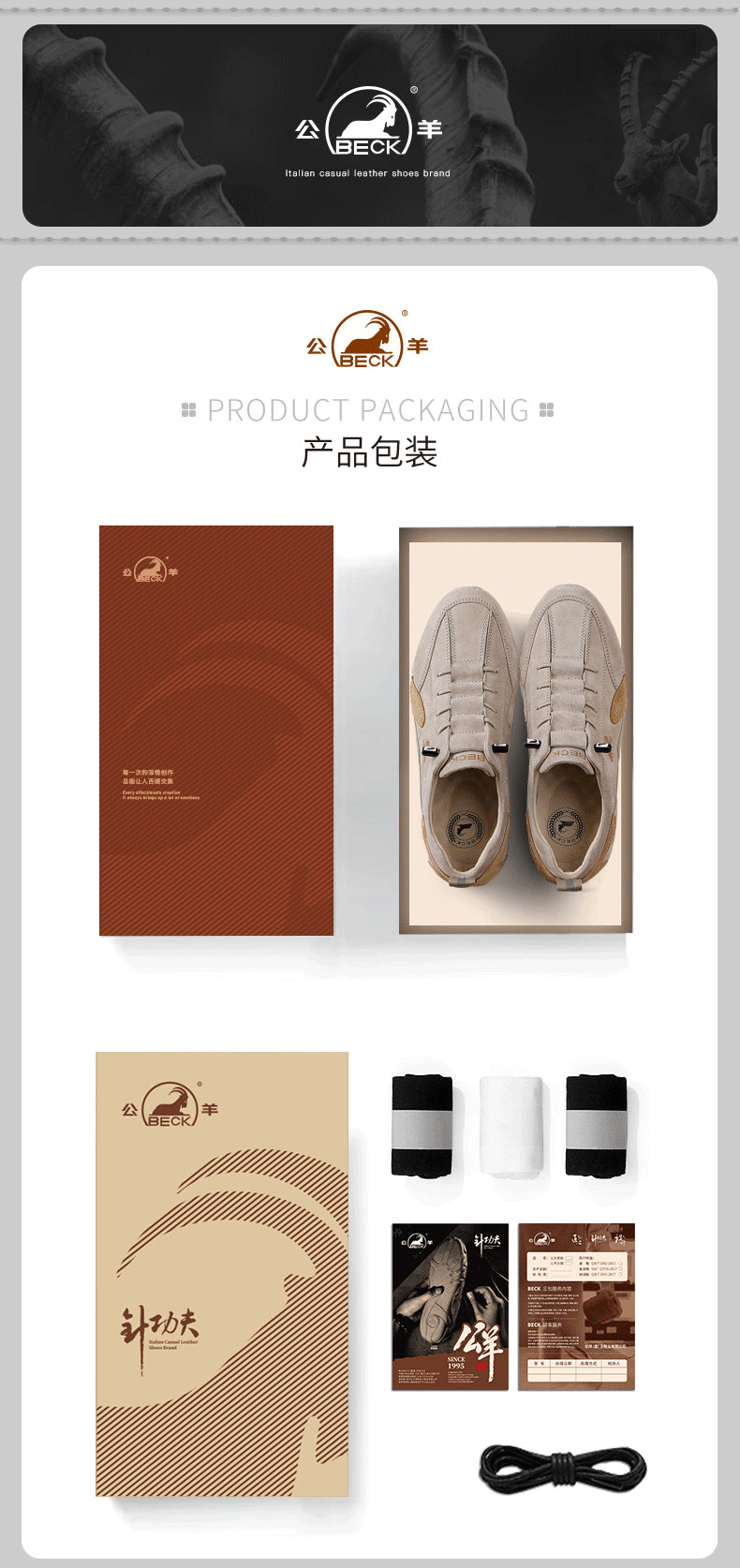 公羊世家男鞋2026春夏季新款百搭复古真皮透气板鞋男一脚蹬休闲鞋子男款 灰色 43