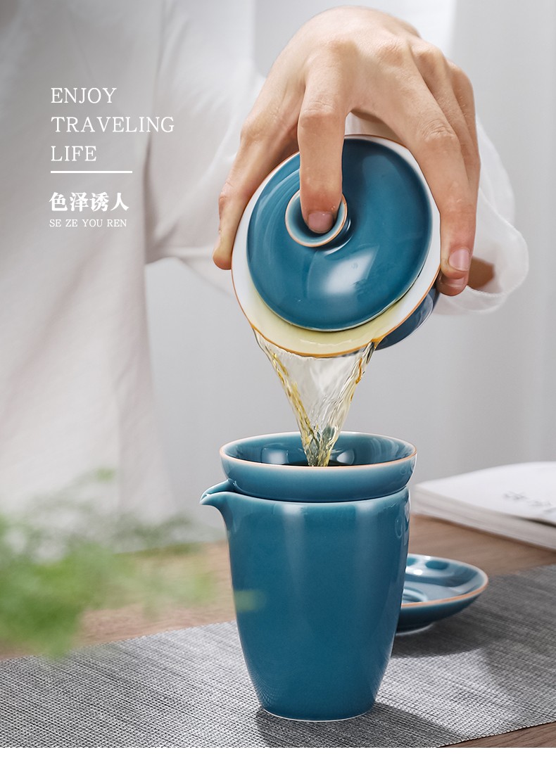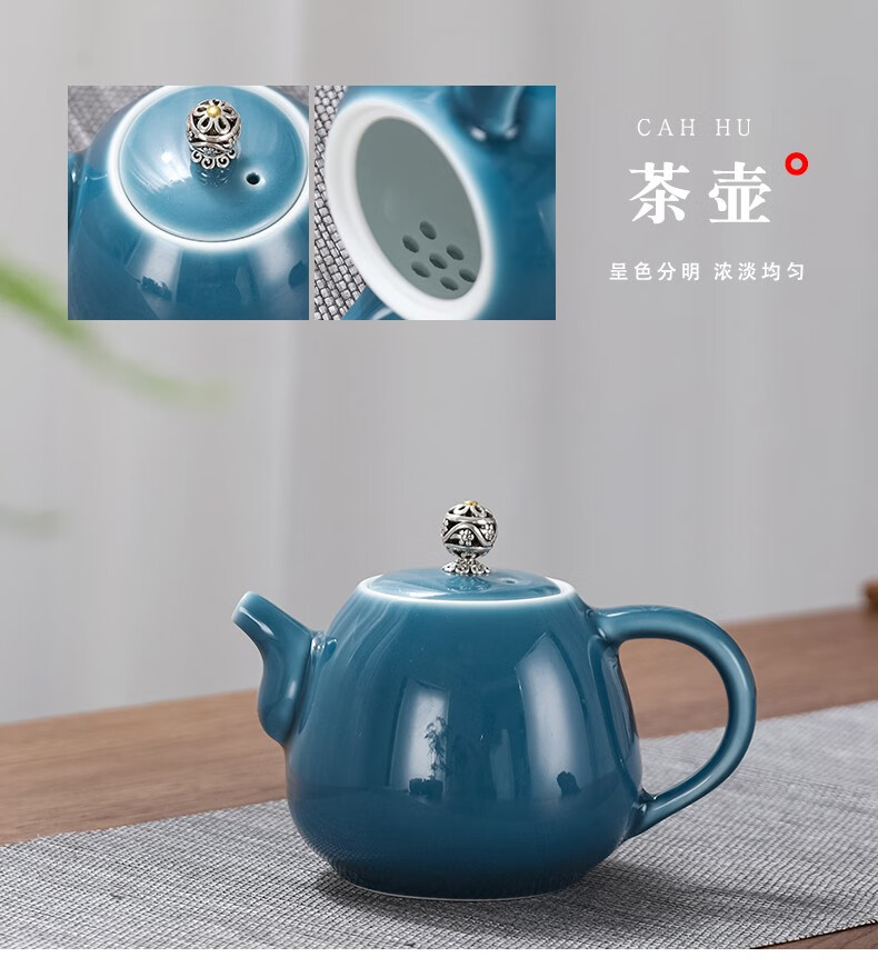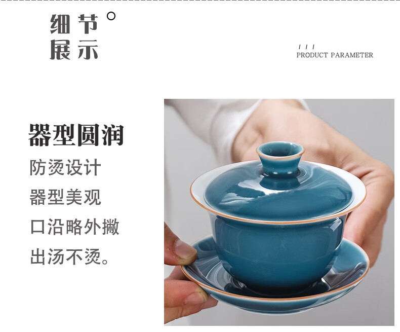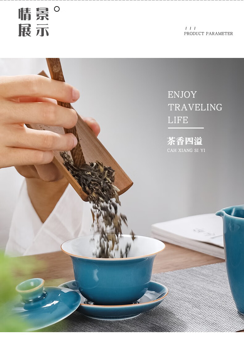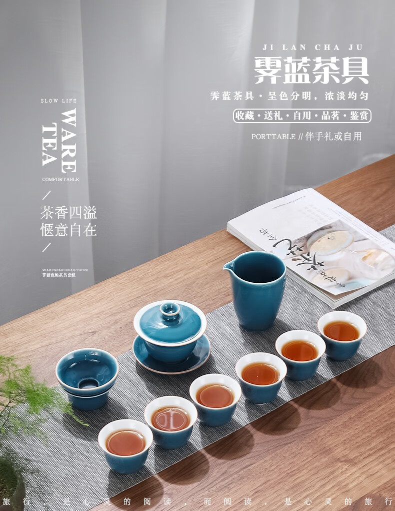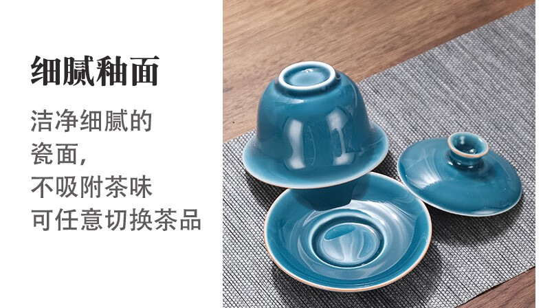 苏客 茶具套装陶瓷家用简约办公室茶壶茶杯盖碗茶碗泡茶功夫茶具礼盒装 盖碗套装(霁蓝)