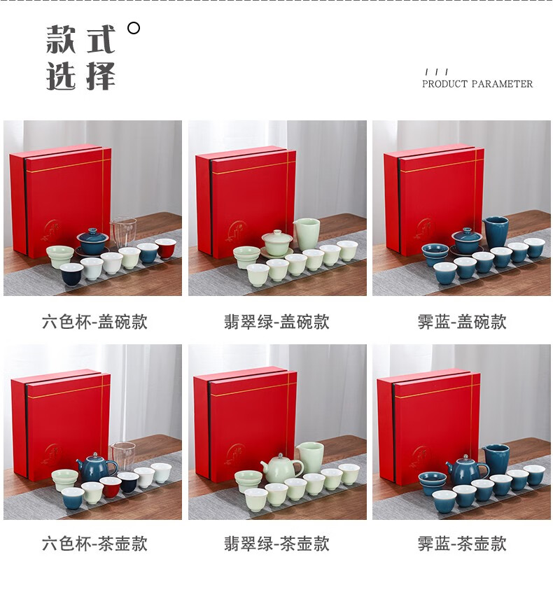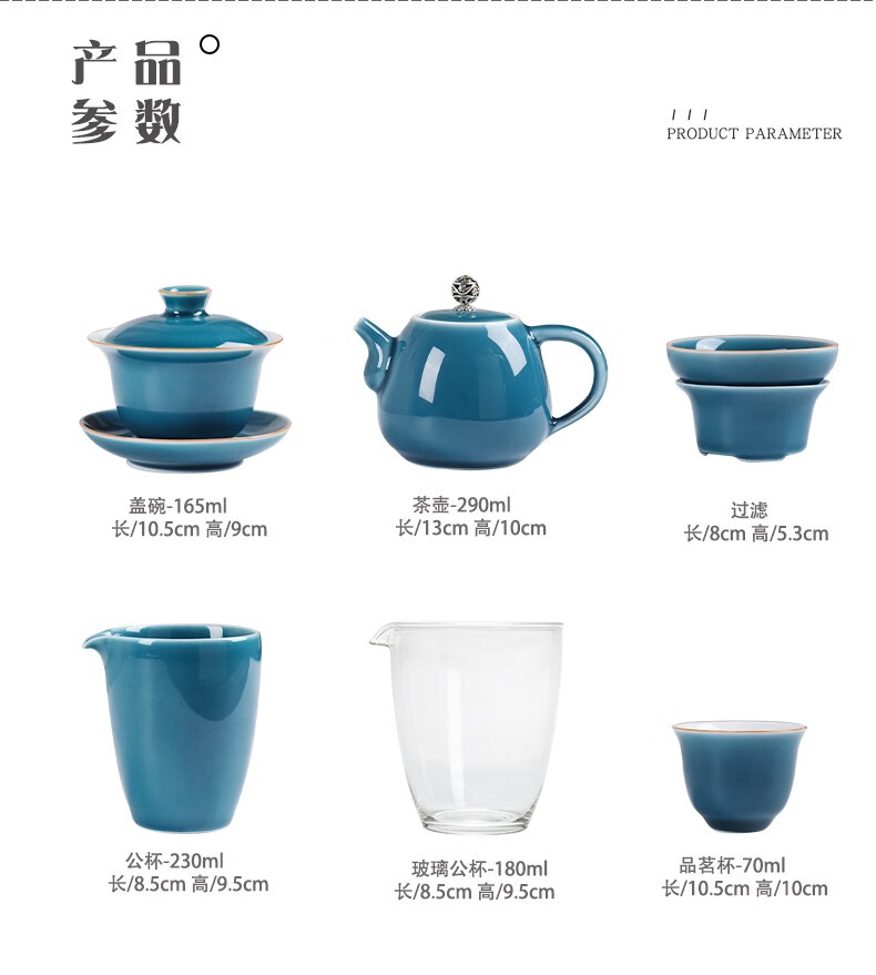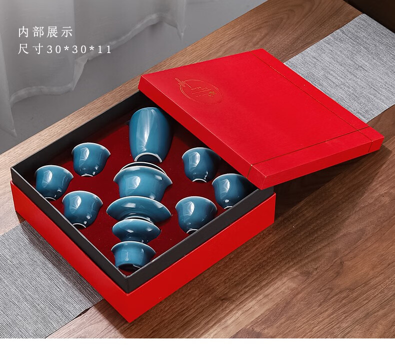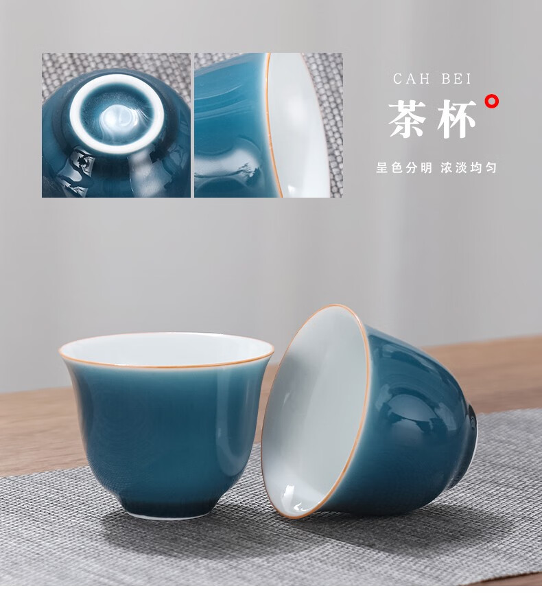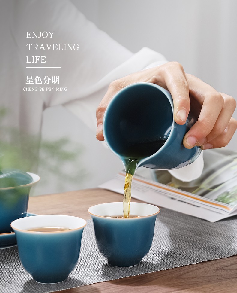 苏客 茶具套装陶瓷家用简约办公室茶壶茶杯盖碗茶碗泡茶功夫茶具礼盒装 盖碗套装(霁蓝)