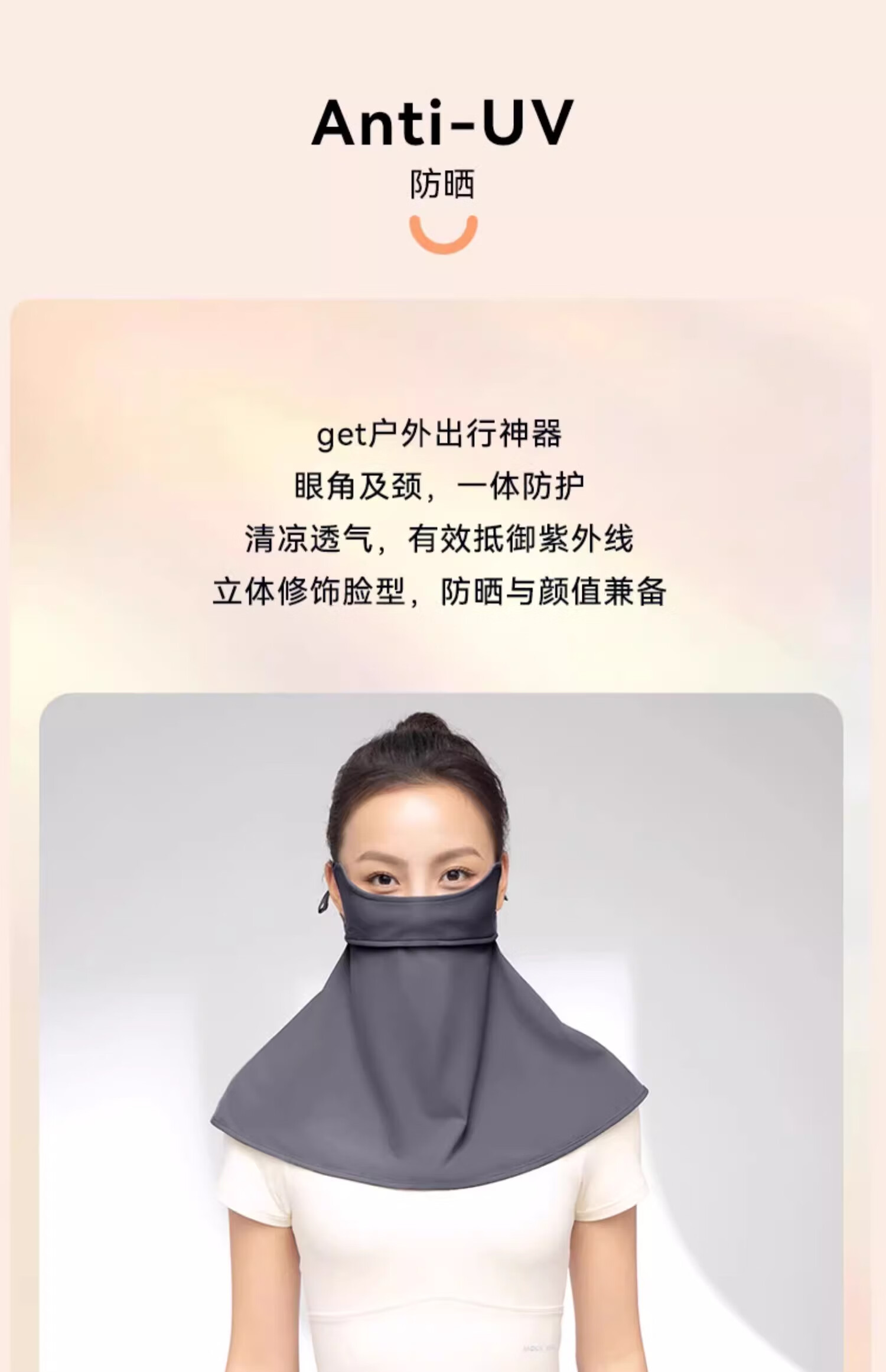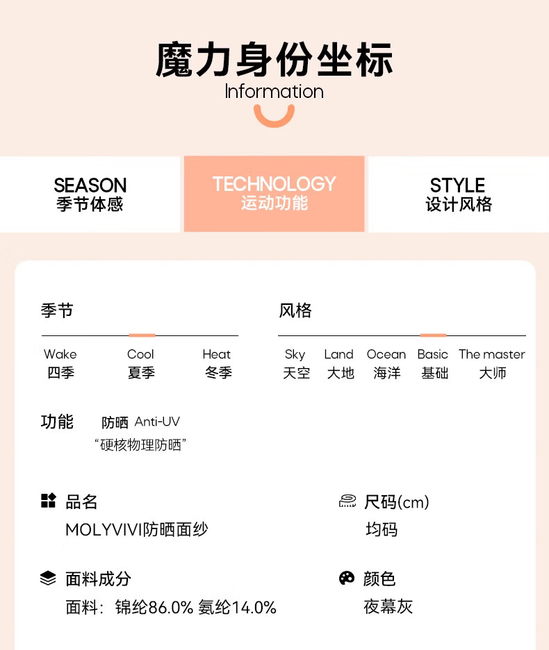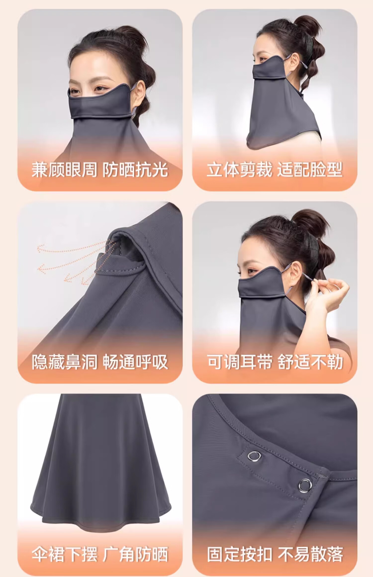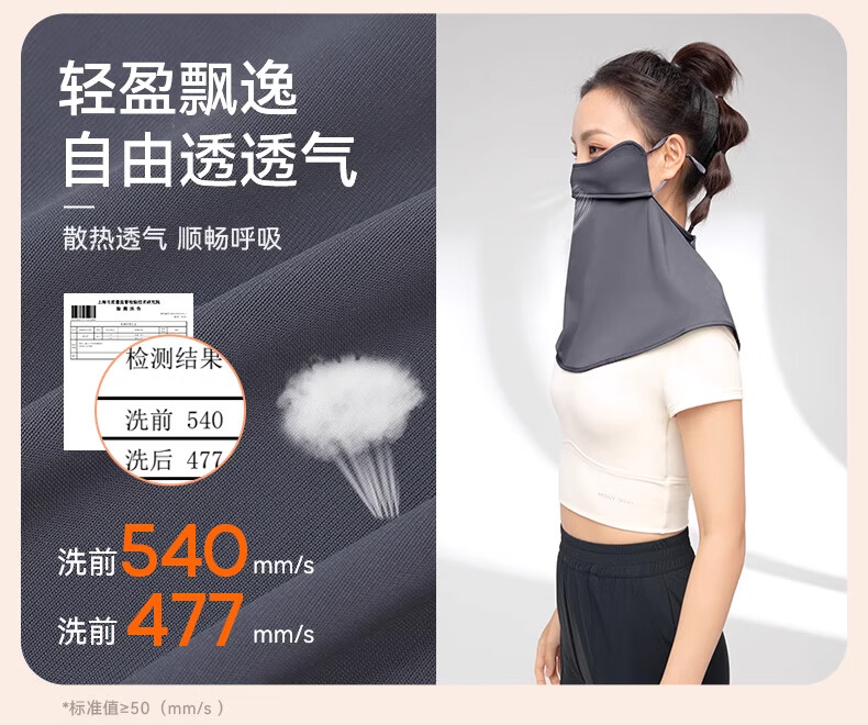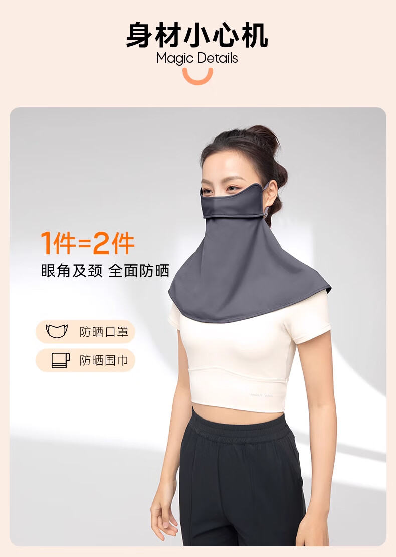 MOLY VIVI防晒面纱夏季新款透气遮全脸护脖颈防紫外线户外骑车开车遮阳 夜幕灰
