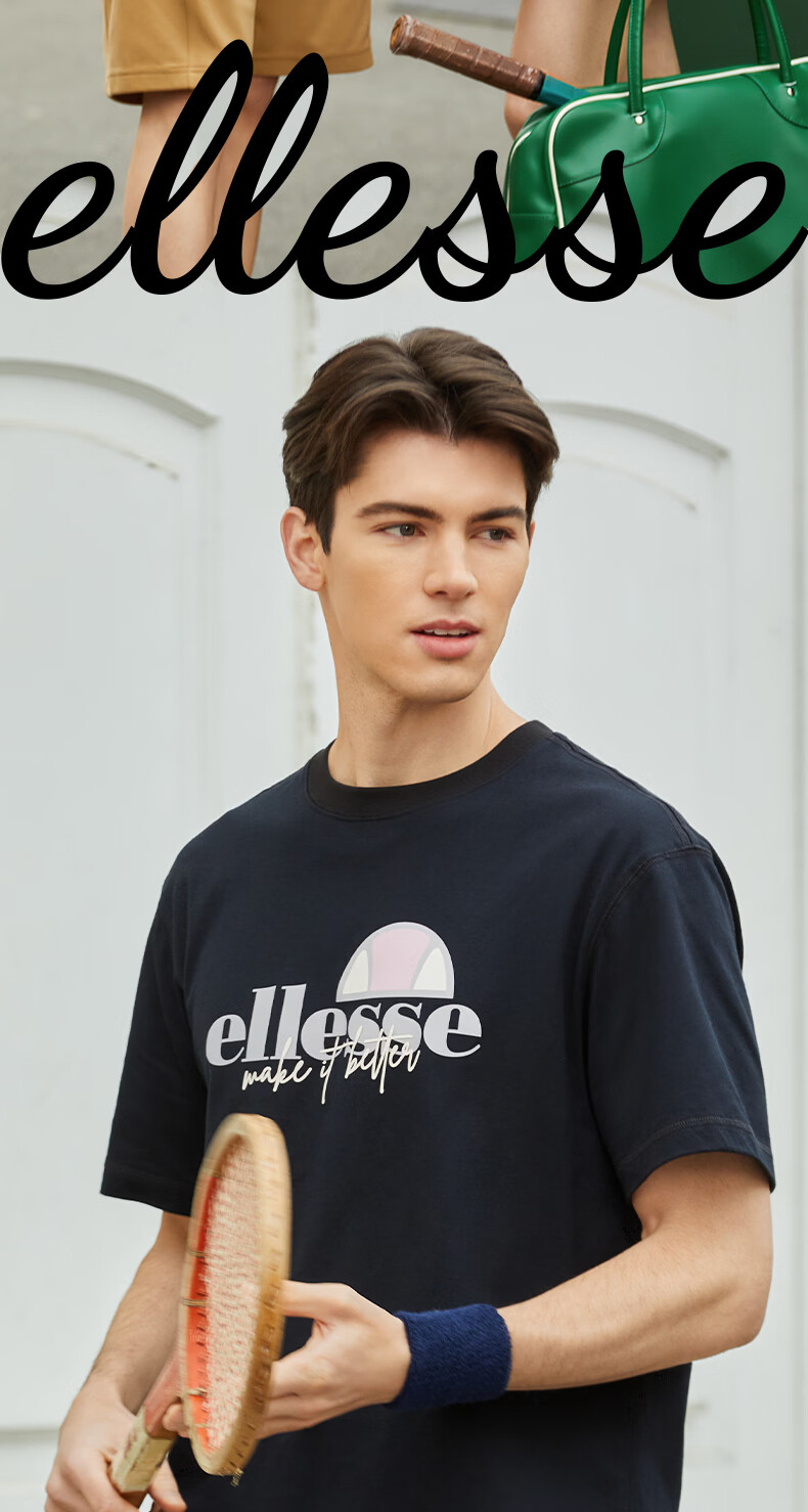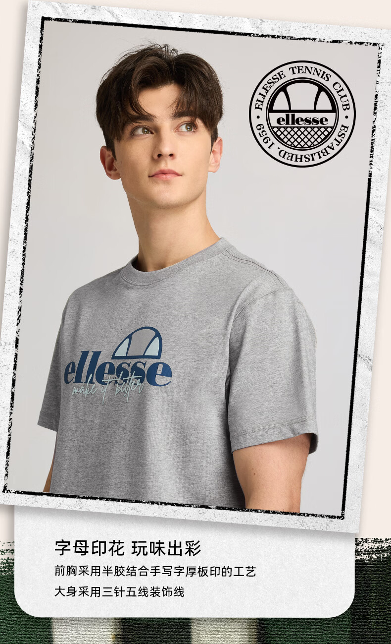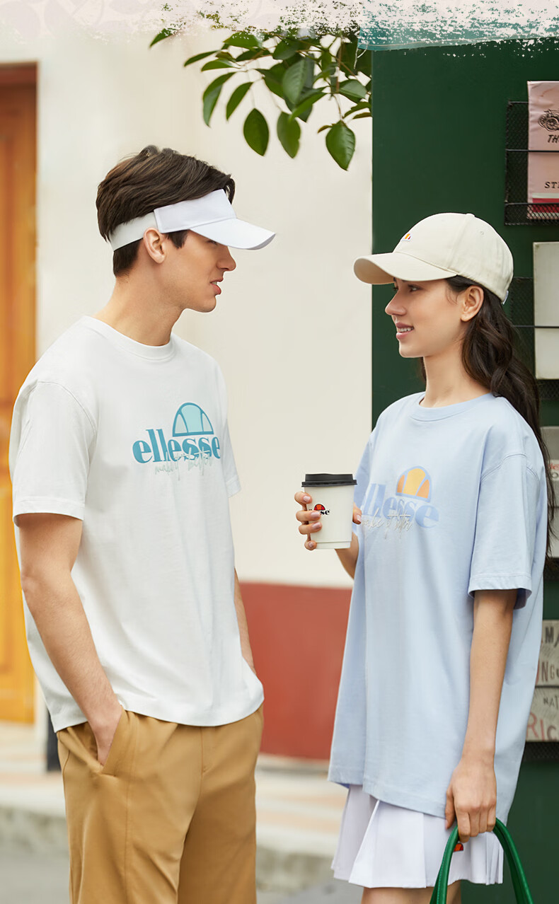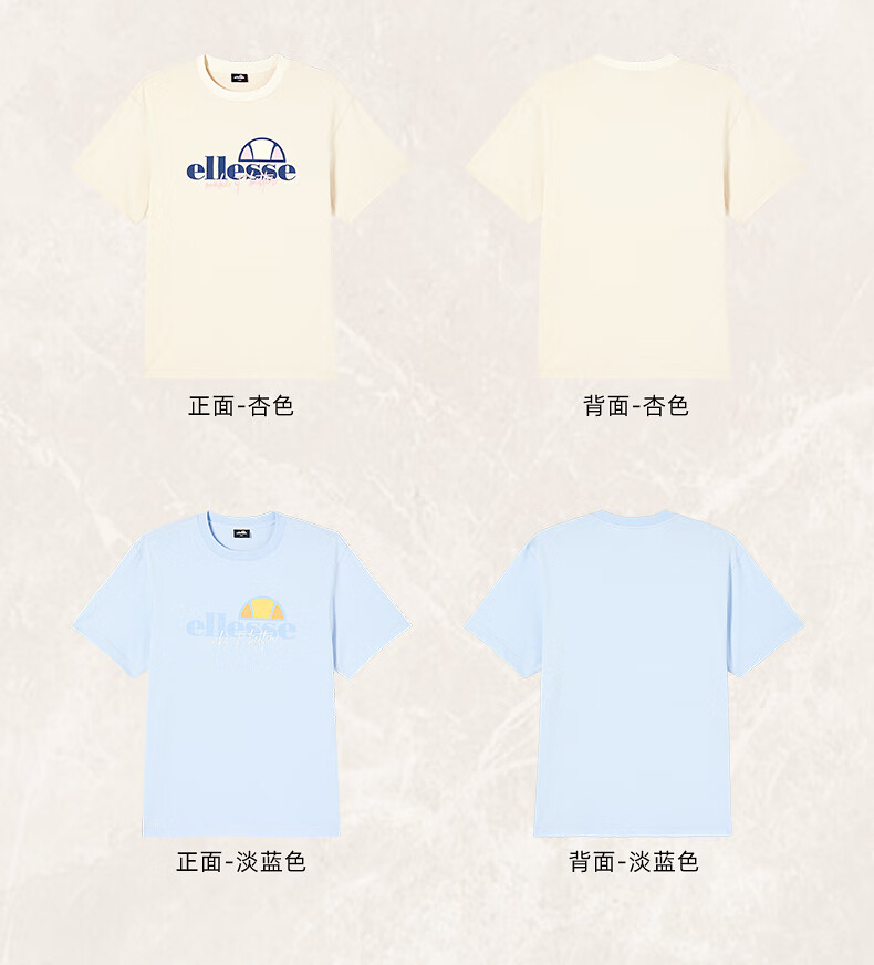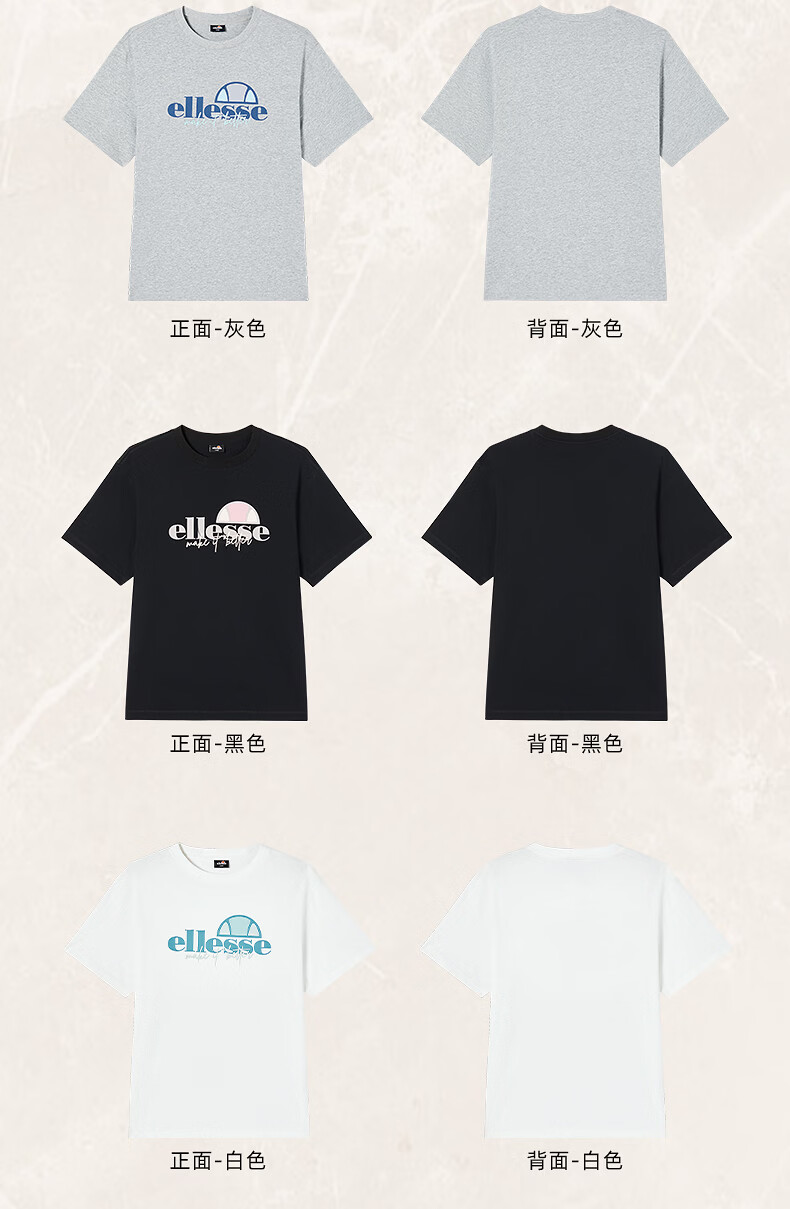 ellesse小贝壳情侣款logo字母多巴胺男女款宽松圆领短袖T恤 黑色 L