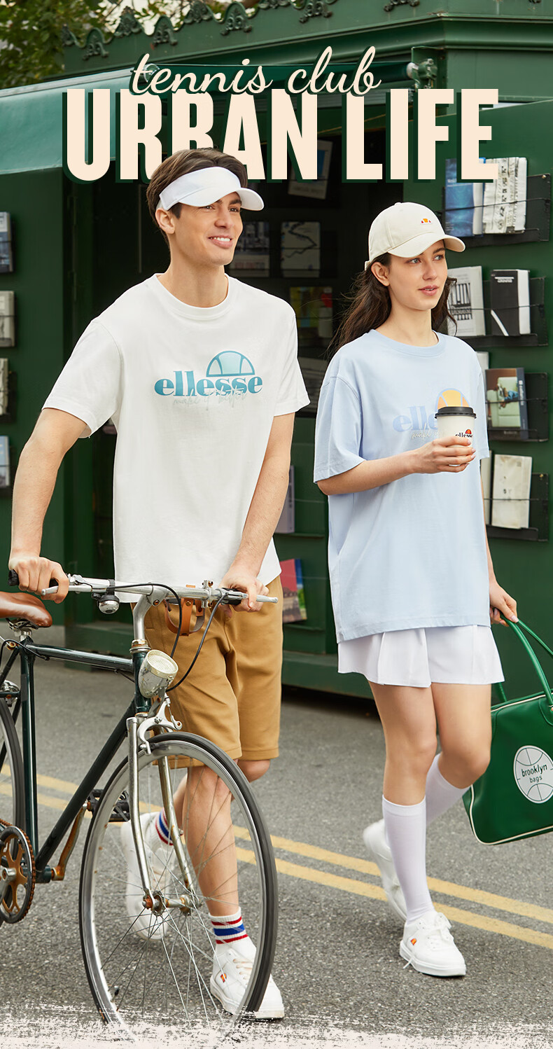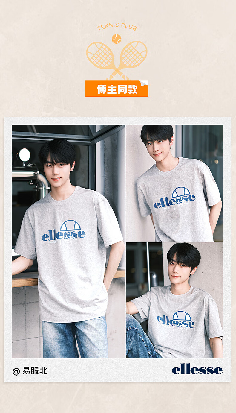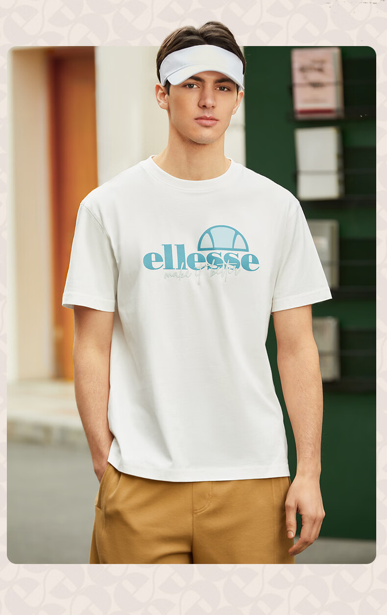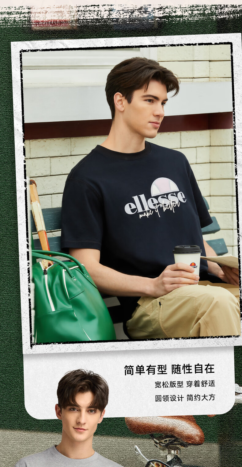 ellesse小贝壳情侣款logo字母多巴胺男女款宽松圆领短袖T恤 黑色 L